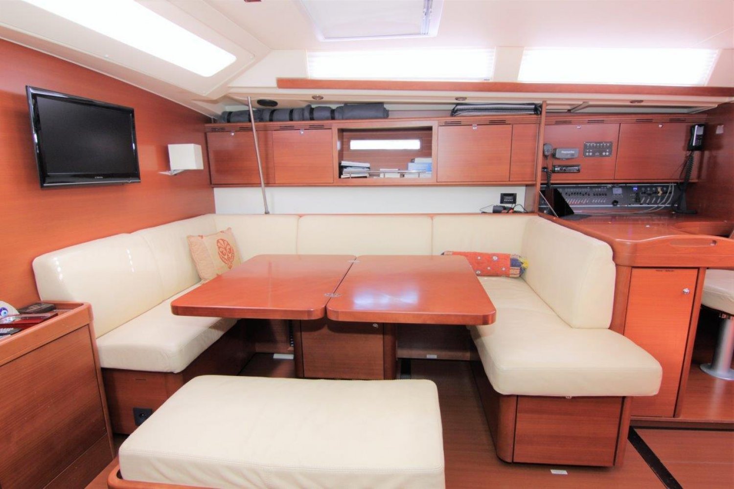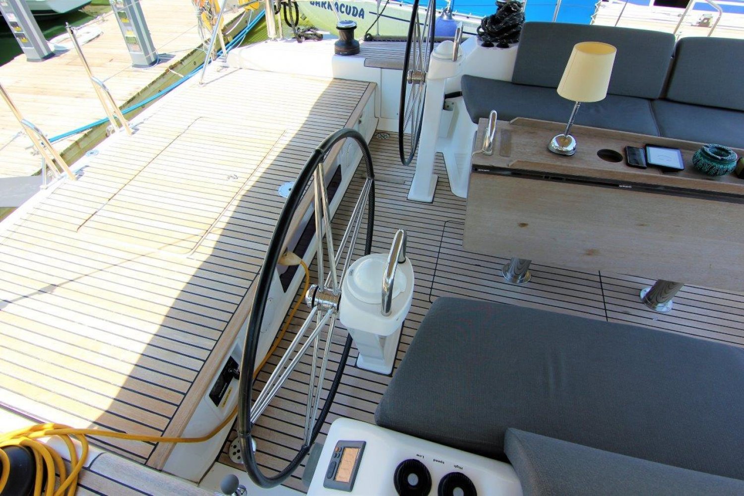 Beautiful maintained and superb equipped Dufour 525 Grand Large from private owner. She comes with the 3 double cabins layout + 1 crew cabin/storage in the bow. The boat is not only maintained to highest standards, but also equipped with many interesting options. To mention a few: 3x Airco, Fisher Panda generator, full teak (also on roof), satellite telephone, Gennaker on bowsprit, recent bimini with extra shades on the side, Carbon gangway, etc.. The mooring in front of an exclusive hotel can possibly be taken over if desired.