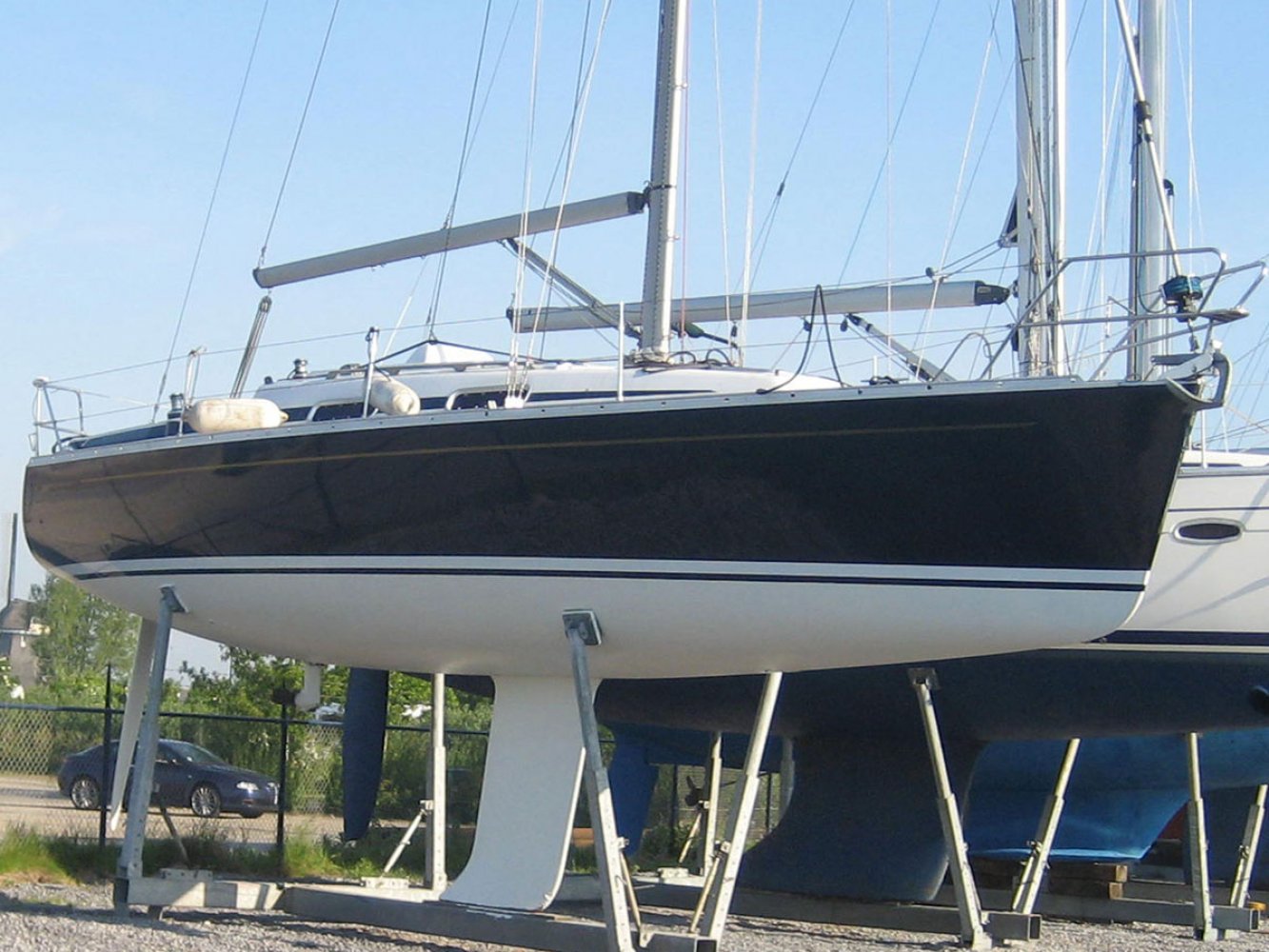 De Italiaanse werf Cantiere del Pardo bouwt al bijna 40 jaar goed zeilende kwaliteitsjachten en vooral in het middellandse zeegebied is het merk een begrip. Ook deze door J&J ontworpen Grand Soleil 34.1 mag gezien worden als een snelle cruiser racer. Met haar donkerblauwe romp en teakdek straalt ze een en al kwaliteit en stijl uit. Ook het interieur is chique en functioneel zonder overdadige opsmuk. De Grand Soleil 34.1 die wij nu aanbieden is voorzien van een Performance Pack. Daartoe behoren een aantal extra opties zodat ze zich onderscheid van de meeste andere 34.1 zusterschepen. Zo heeft ze o.a. een loden kiel, hogere mast. Behalve deze aanpassingen aan het tuig is er ook een zwaardere motor geplaatst van 29pk. De kuip en dekken zijn ruim en goed toegankelijk. Het interieur is afgetimmerd met donker mahonie hout en de banken voorzien van witte stoffering. Aan bakboord is de uitgebreide kombuis en de navigatiehoek is aan stuurboord geplaatst. In het vooronder en in het achterschip zijn hutten met dubbel bed. In de hele boot is veel kast en bergruimte. Voor wie een uitstekend varend, perfect onderhouden en luxueus uitgerust kwaliteitsjacht zoekt is deze Grand Soleil 34.1 een absolute aanrader. Wij nodigen u van harte uit voor een bezichtiging in Volendam. Uw jachtmakelaar is Robert de Vries, +31 (0)6 5020 1336.