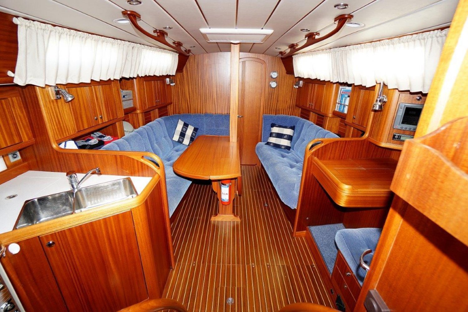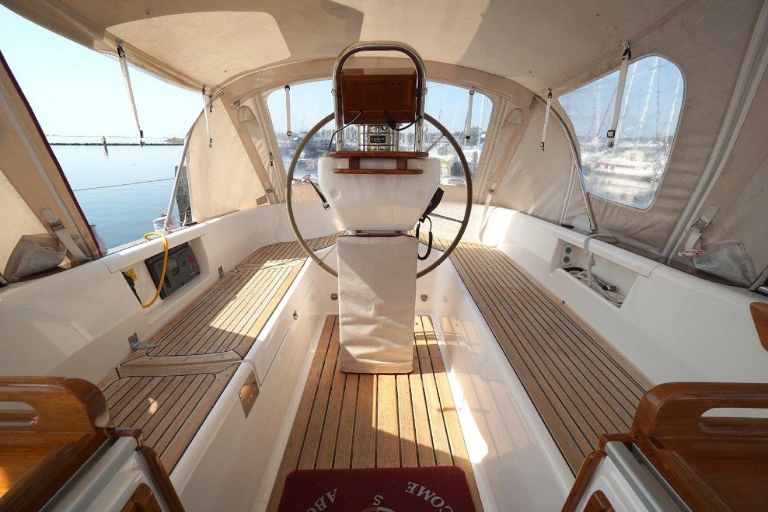 De kuip is ruim en lekker diep voor een veilig gevoel op groot water en de gedeeltelijk vaste buiskap (in dit geval uitgevoerd in gepolijst RVS) geeft goede beschutting als het wat minder fraai weer is. Bovendien dient gemak de mens en is het schip voorzien van een boegschroef, elektrische genua lieren en een elektrisch oprolbaar grootzeil. De instrumenten zijn gesitueerd boven de kajuit ingang met een extra kaartplotter op de stuurstand.