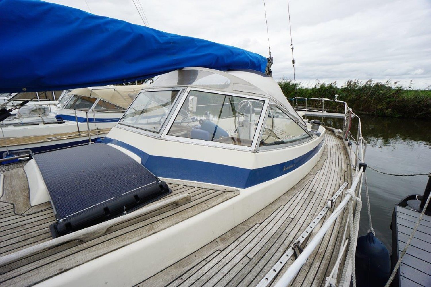 Mooi onderhouden Hallberg Rassy 352 Scandinavia uit 1987. Een compleet schip voorzien van een stuurautomaat, complete set navigatie apparatuur, buiskap, kuiptent en ga zo maar door. Dit schip is voorzien van een prachtig afwerkt interieur (fraaie conditie). Dit schip heeft de afgelopen 15 jaar iedere winter op de wal gestaan, heeft jaarlijks motoronderhoud gehad en is dan ook volledig vaarklaar. Let wel; het teakdek is origineel en is toe aan vervanging.