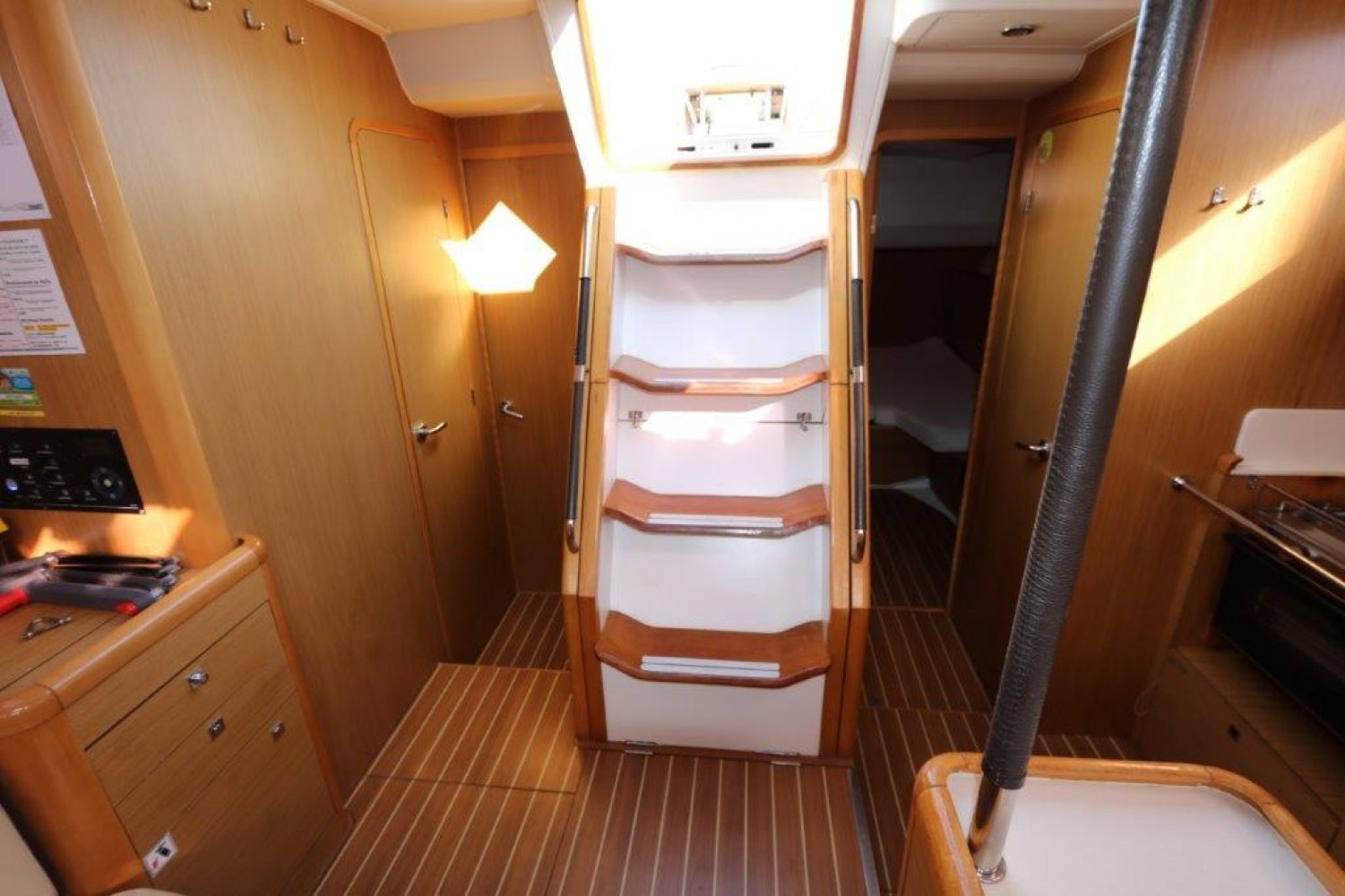 5 gastenhutten + bemanningshut in de boeg, 3 hoofdcompartimenten. Charterboot, BTW niet betaald. Elektronica Dieptemeter Radio GPS Kompas Stuurautomaat cd-speler Log-speaker dvd-speler VHF Plotter