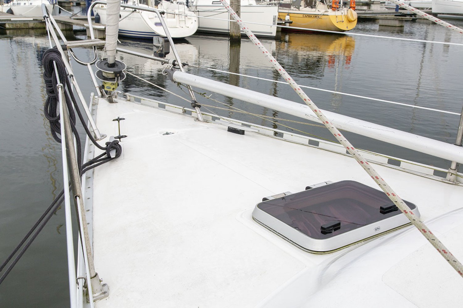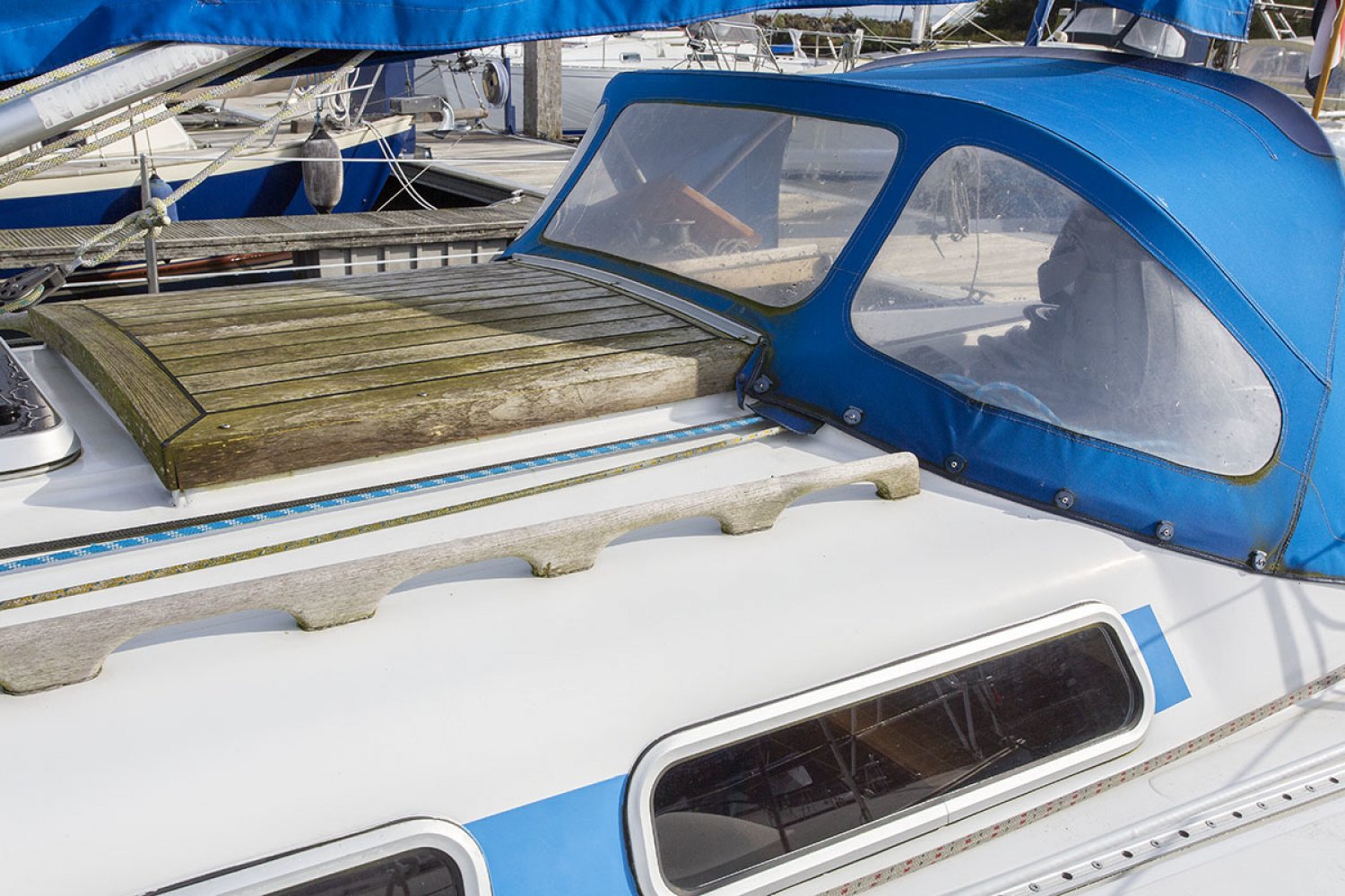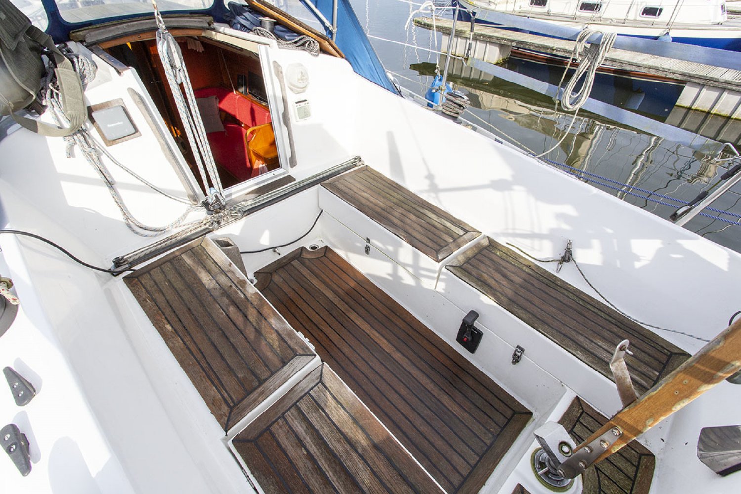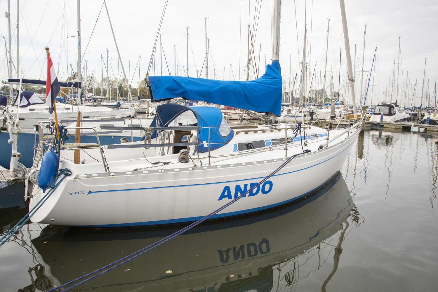 De Spirit 32 die wij u aanbieden is een snelle cruiser, ook geschikt voor de kustwateren, het ontwerp is van Koos de Ridder en de boot isgebouwd bij Van Heygen in Boom in België. Het dek is ruim en overal goed begaanbaar. Een degelijk en praktisch tuigage maakt haar hanteerbaar voor kleine bemanningen. Er is een zeilgardarobe bestaande uit 5 zeilen, allen nog in goede staat, recent nagezien door een zeilmaker. De kuip heeft teak op de banken en op de vloer.