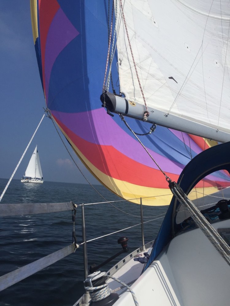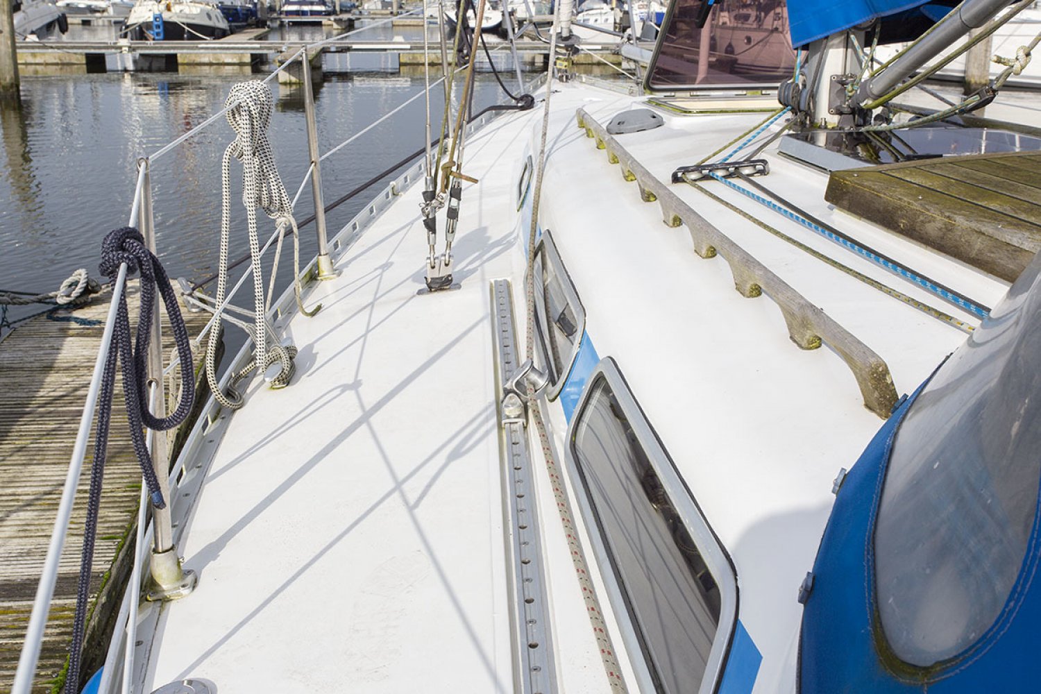 zeilen kunnen zeker nog een aantal jaren mee, recent door zeilmaker nagekeken; bovenste 2 delen van de fokroller moeten worden vastgemaakt