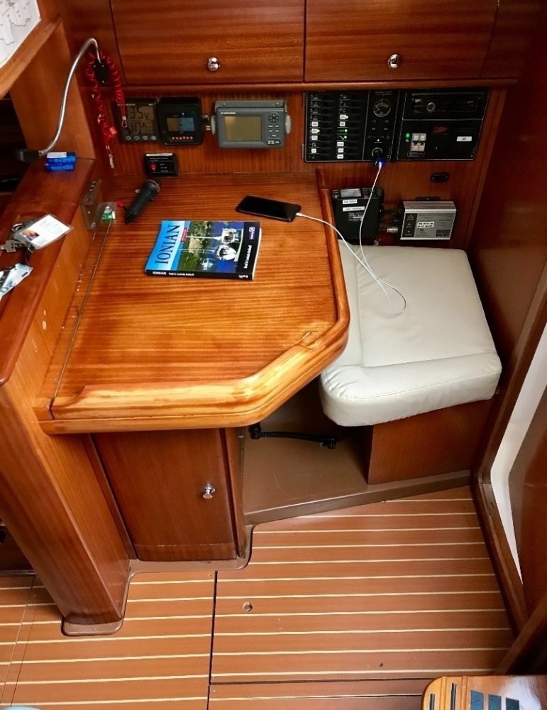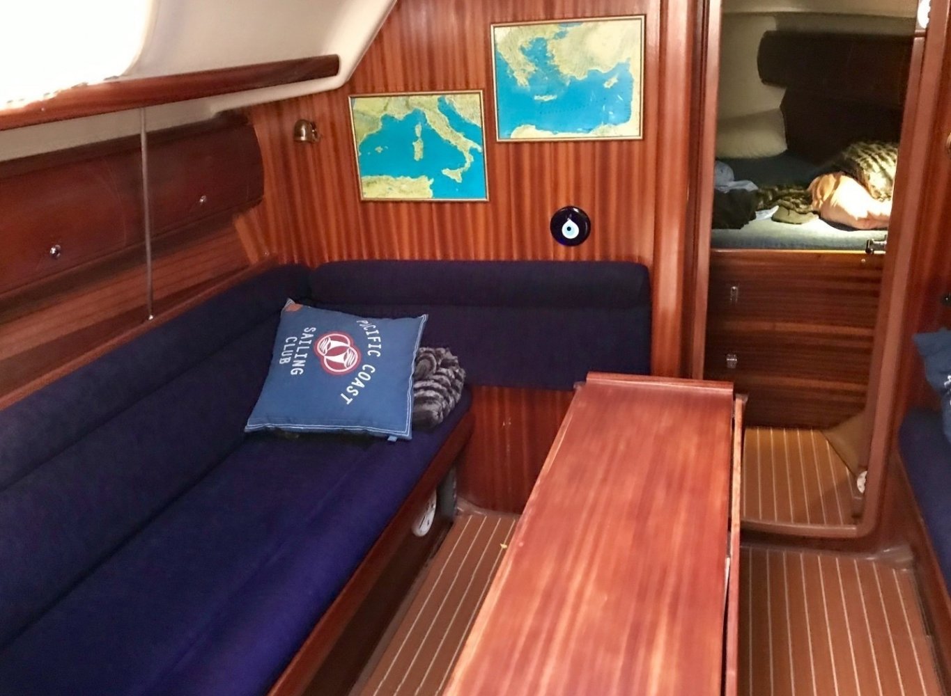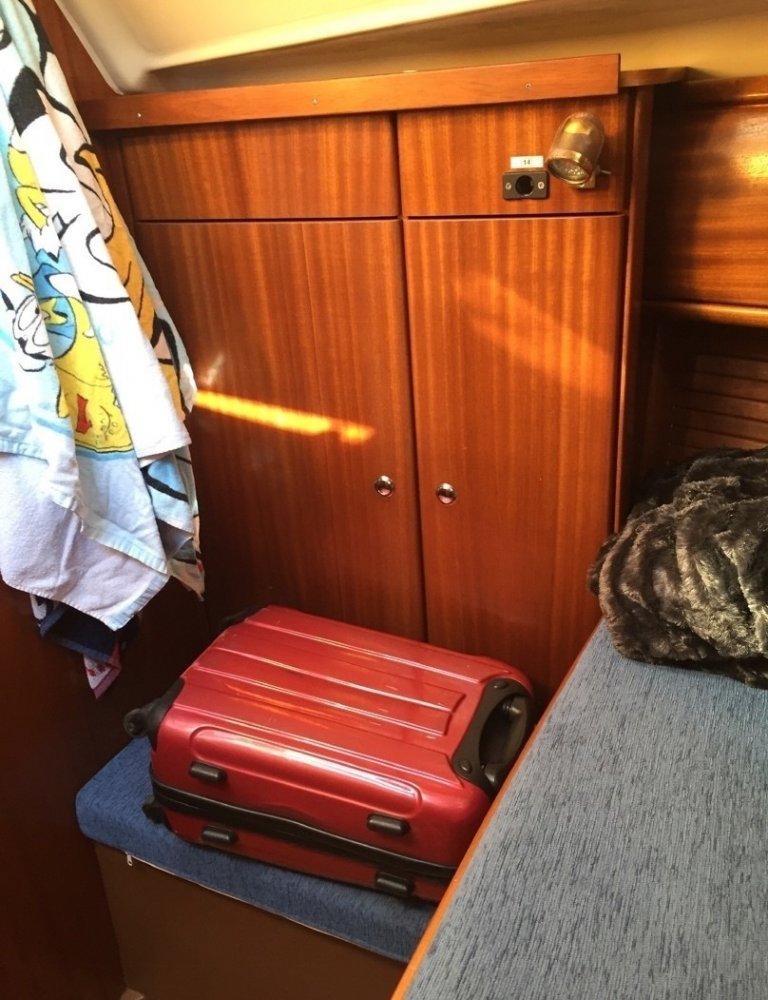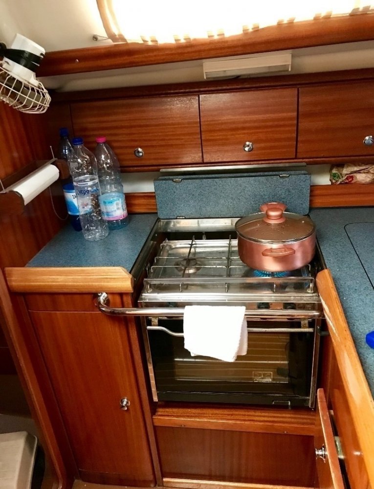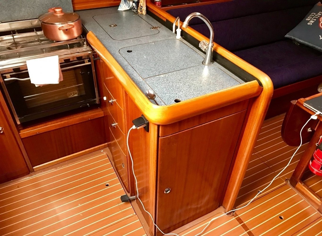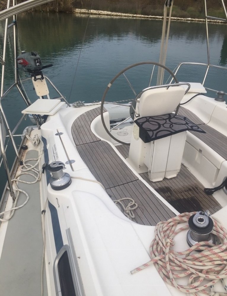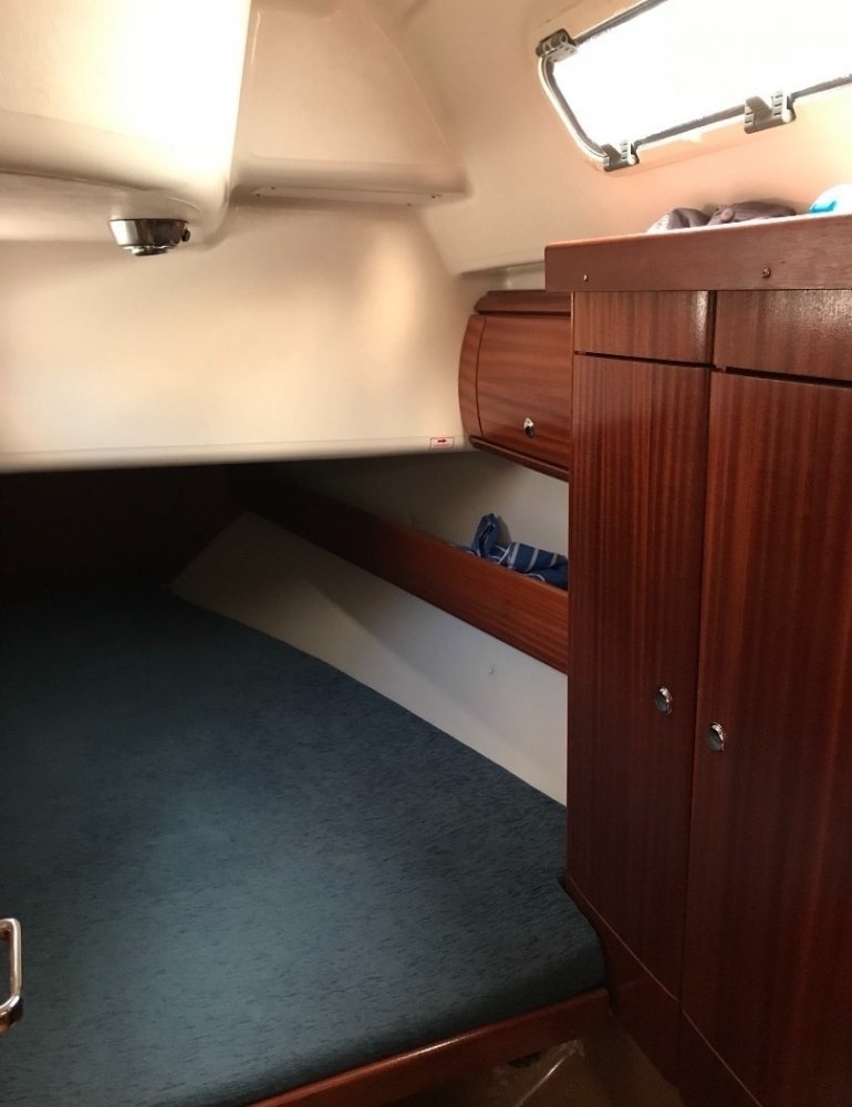 Furling main sail Furling genoa Gennaker Deeper 1,9m keel Bow thruster Plotter Autopilot Log Speed Depth VHF Electric anchor windlass + 70m chain + additional anchor Bimini Sprayhood Solar panel Inverter Dinghy Cockpit table + cushions Heating Webasto (2019) Cooker Oven Fridge New 260 Ah house batteries 2019 New 80 Ah start battery 2019 New 100 Ah bow thruster battery 2019 Bottom done spring 2018