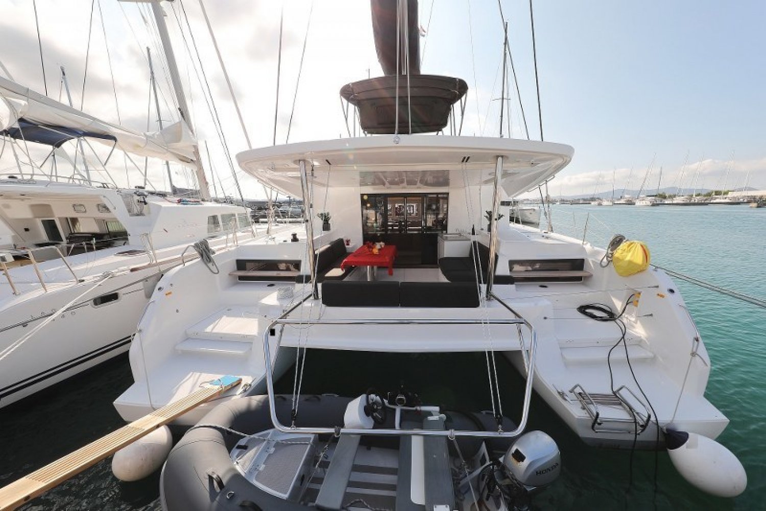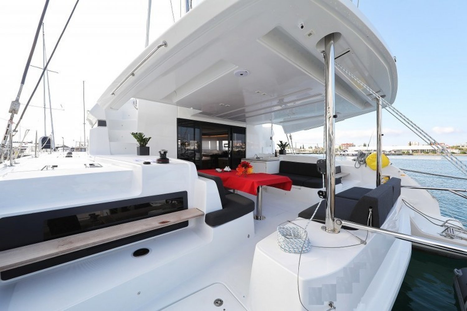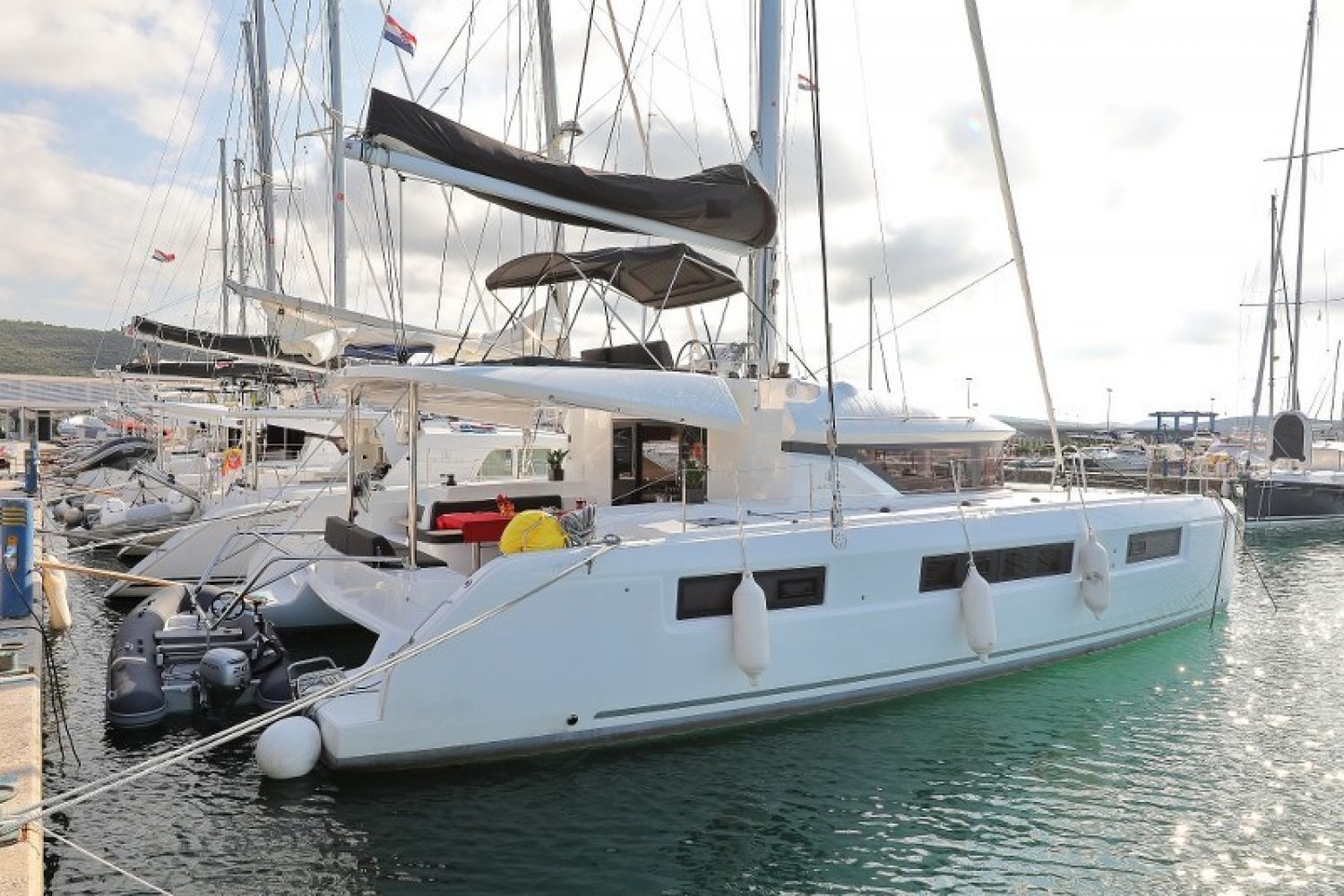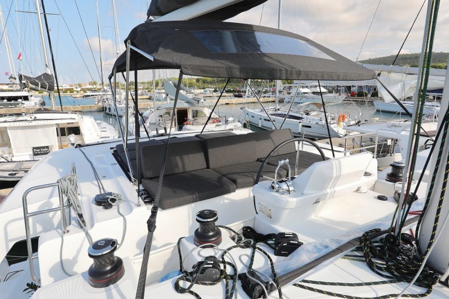 Deze Lagoon 50 is een bijna gloednieuwe boot, uit 2018. Het biedt een aantrekkelijke optie voor navigators met haar nieuwe visuele identiteit, tuigage en rompontwerp. Ze biedt royale volumes, een panoramisch uitzicht, ongeëvenaarde accommodatiemogelijkheden. Dit is een model dat 5 hutten met 4 WC/douches biedt. Onder de uitgebreide luxe uitrusting kunnen we noemen : badkamer- en douchevloer met teakhouten latten, grote bekleding van marmer, luie tas voor standaard alluminium giek, stuurstanddoek met raam en windscherm, zonnebankkussens voor flybridge, alle elektrische flybridge lieren, grote opvouwbare teakhouten tafel, windasafstandsbediening bij stuurstand, vaatwasser, stuurautomaatafstandsbediening, enz.