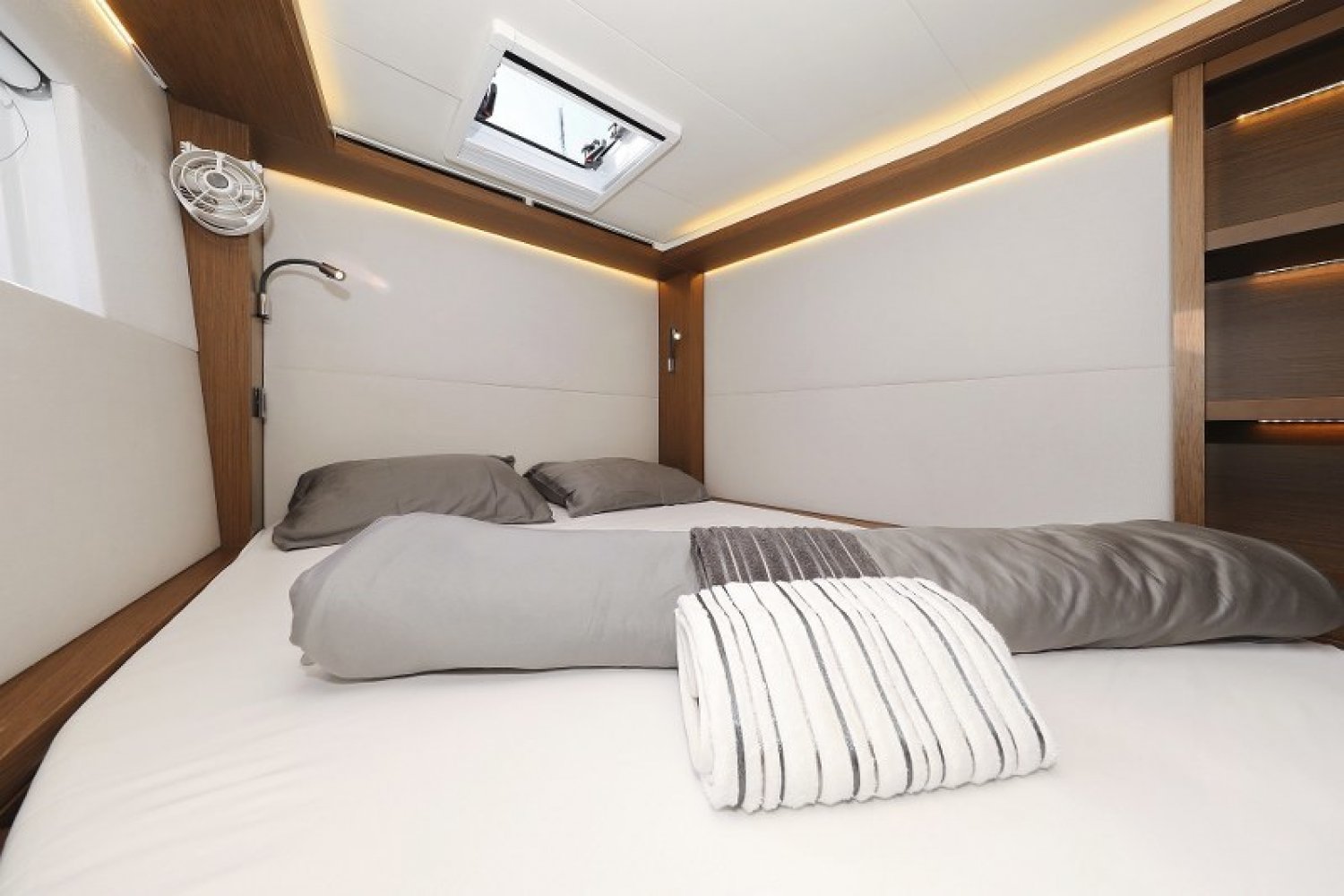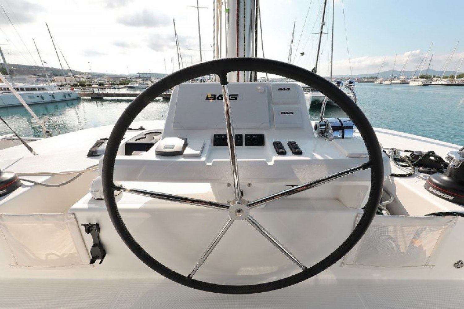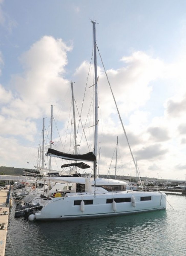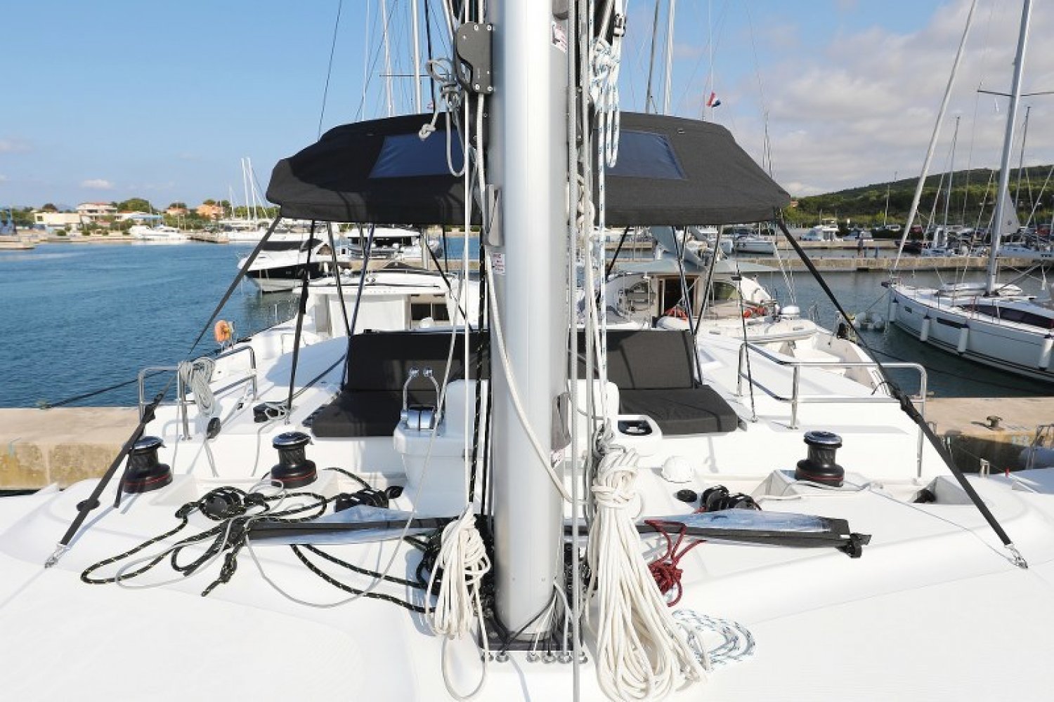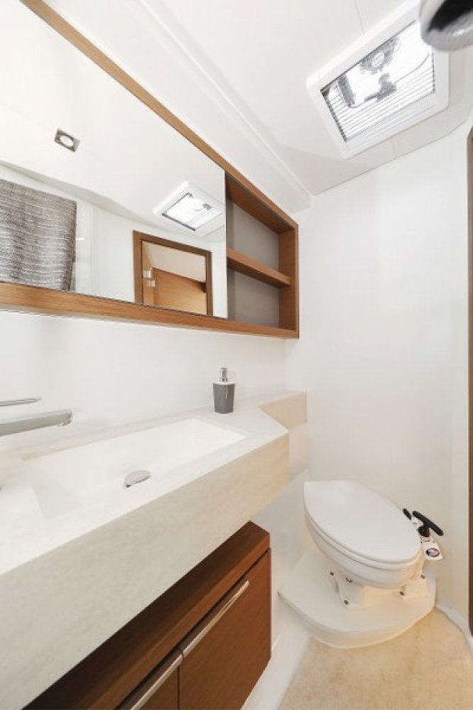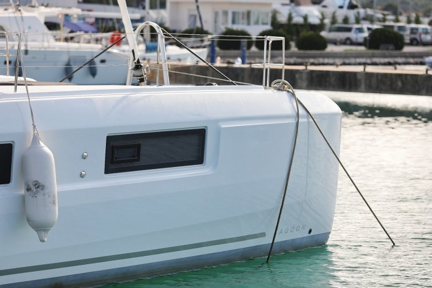 Deze Lagoon 50 is een bijna gloednieuwe boot, uit 2018. Het biedt een aantrekkelijke optie voor navigators met haar nieuwe visuele identiteit, tuigage en rompontwerp. Ze biedt royale volumes, een panoramisch uitzicht, ongeëvenaarde accommodatiemogelijkheden. Dit is een model dat 5 hutten met 4 WC/douches biedt. Onder de uitgebreide luxe uitrusting kunnen we noemen : badkamer- en douchevloer met teakhouten latten, grote bekleding van marmer, luie tas voor standaard alluminium giek, stuurstanddoek met raam en windscherm, zonnebankkussens voor flybridge, alle elektrische flybridge lieren, grote opvouwbare teakhouten tafel, windasafstandsbediening bij stuurstand, vaatwasser, stuurautomaatafstandsbediening, enz.