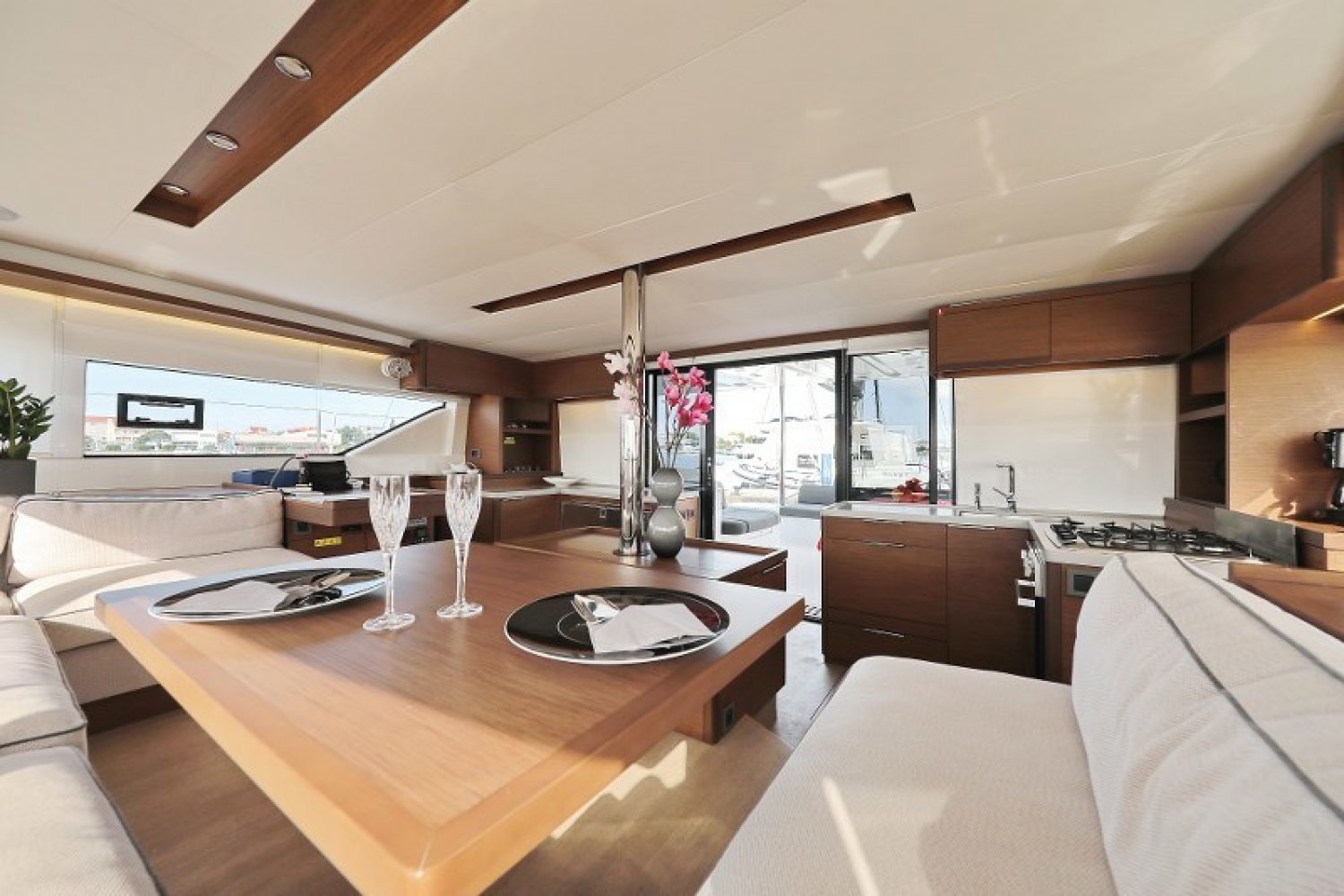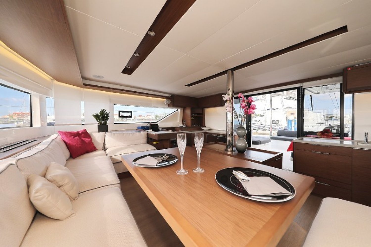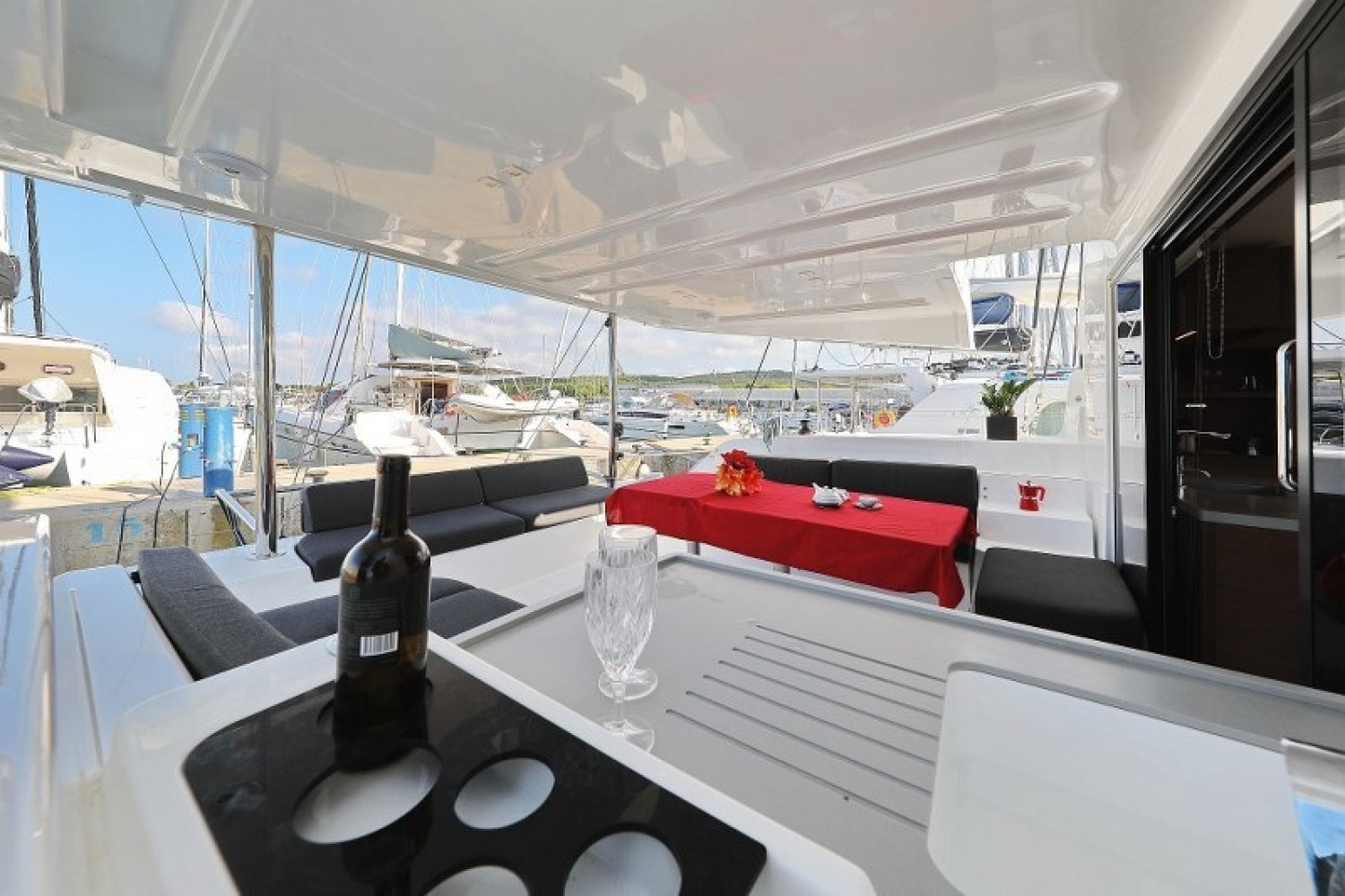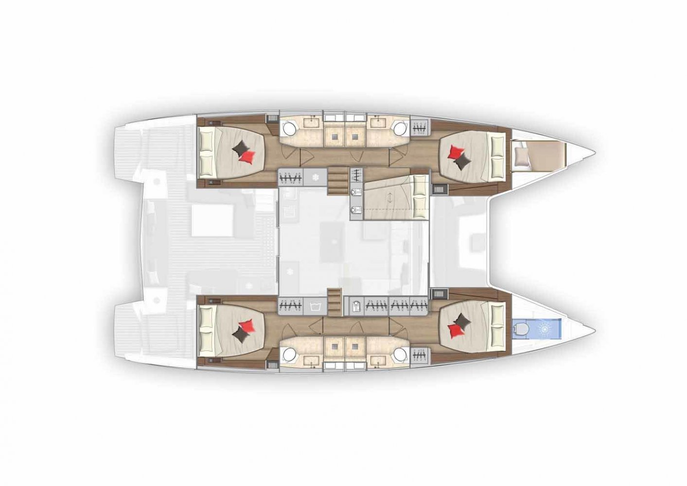 Deze Lagoon 50 is een bijna gloednieuwe boot, uit 2018. Het biedt een aantrekkelijke optie voor navigators met haar nieuwe visuele identiteit, tuigage en rompontwerp. Ze biedt royale volumes, een panoramisch uitzicht, ongeëvenaarde accommodatiemogelijkheden. Dit is een model dat 5 hutten met 4 WC/douches biedt. Onder de uitgebreide luxe uitrusting kunnen we noemen : badkamer- en douchevloer met teakhouten latten, grote bekleding van marmer, luie tas voor standaard alluminium giek, stuurstanddoek met raam en windscherm, zonnebankkussens voor flybridge, alle elektrische flybridge lieren, grote opvouwbare teakhouten tafel, windasafstandsbediening bij stuurstand, vaatwasser, stuurautomaatafstandsbediening, enz.
