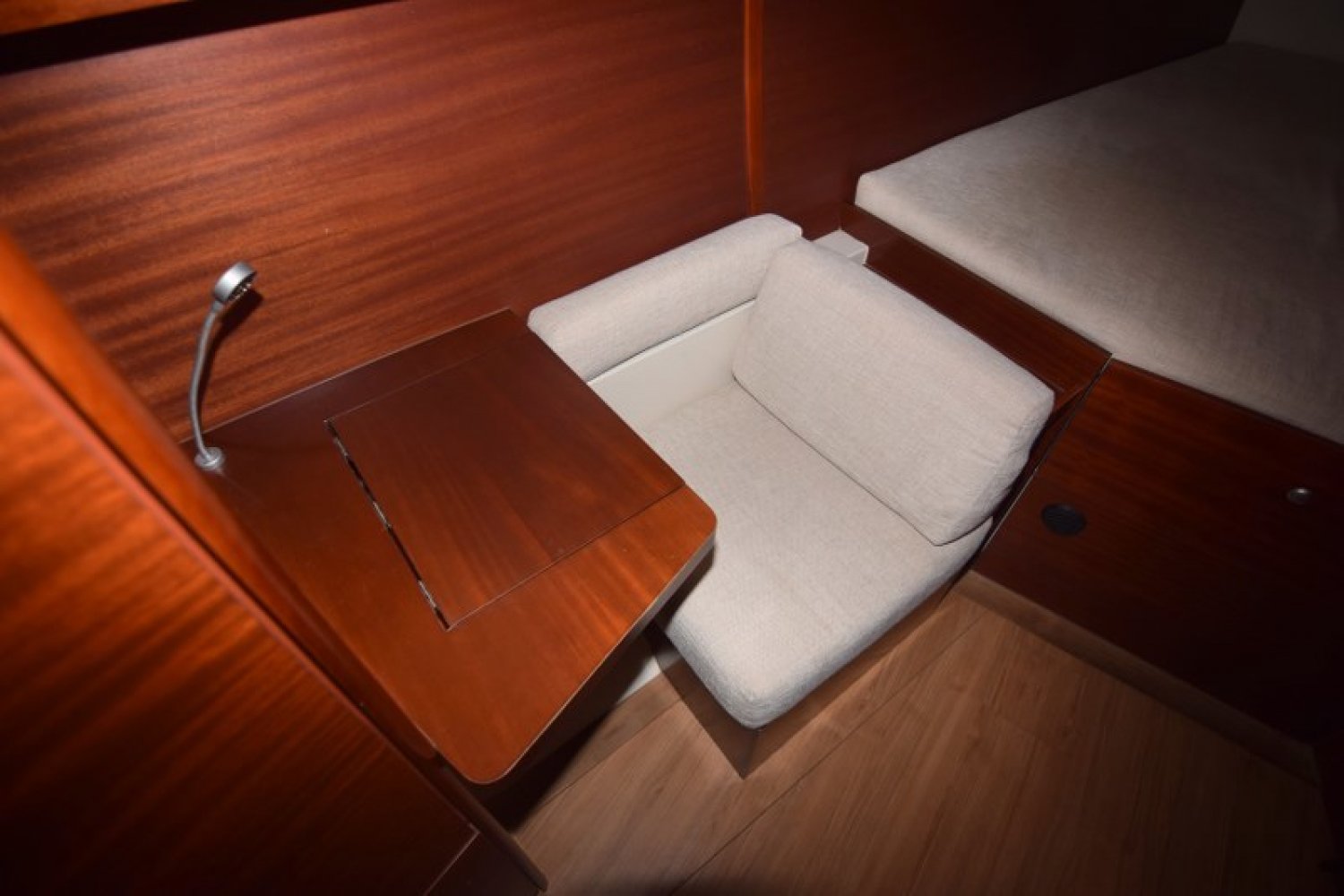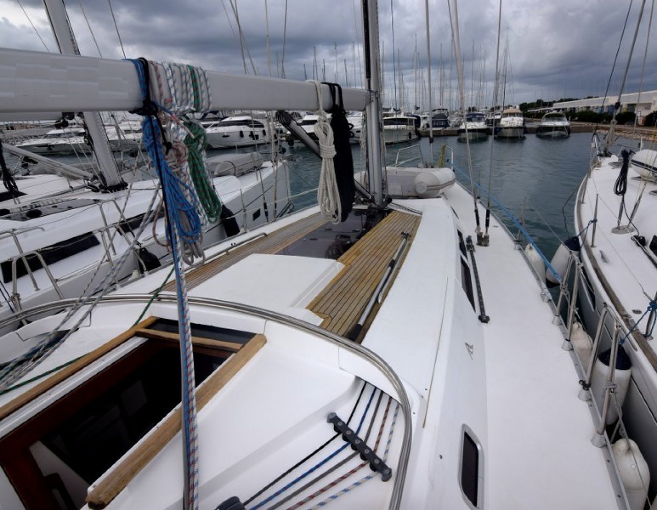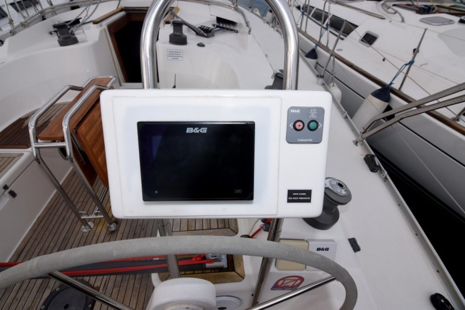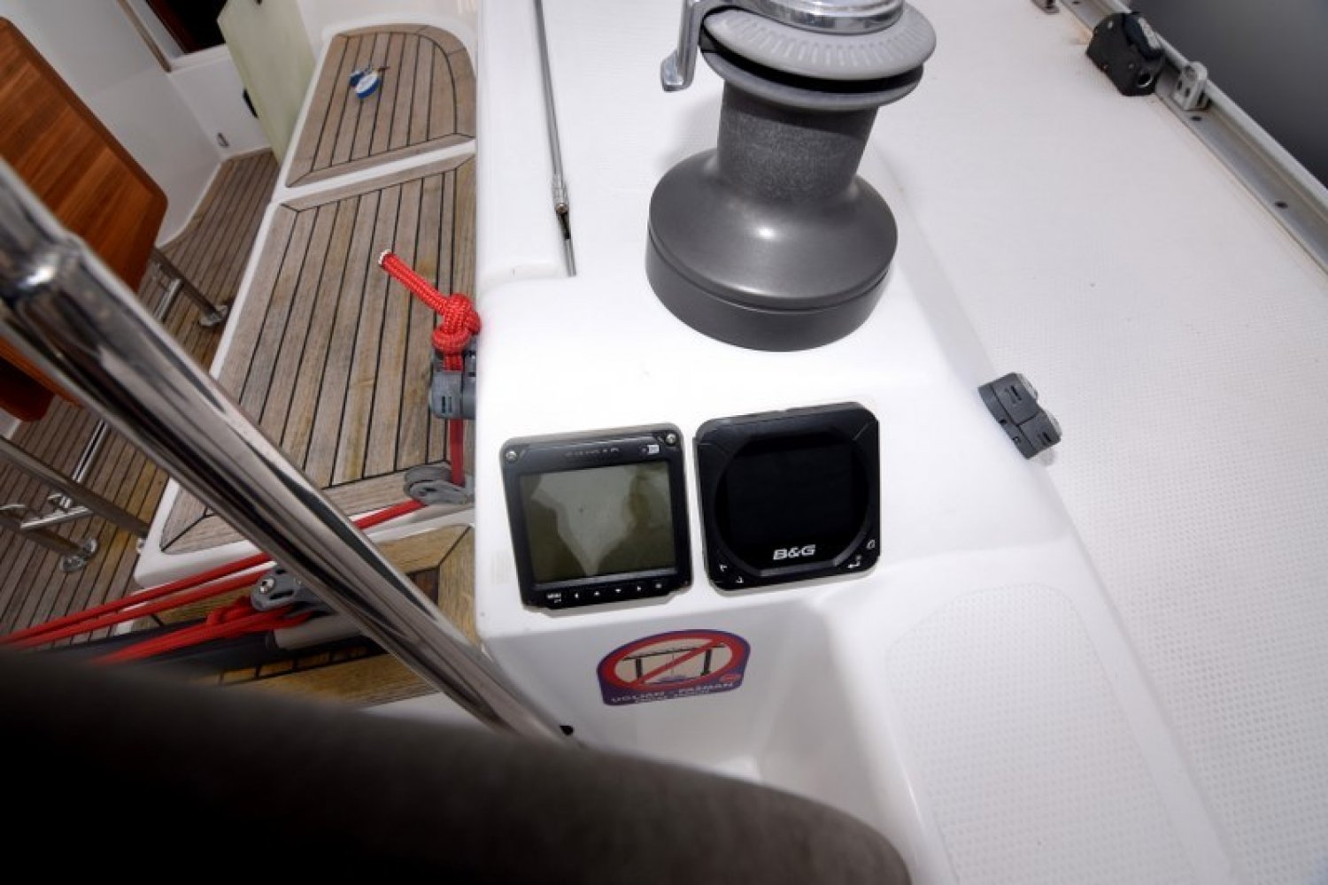 Onder de uitrusting kunnen we benadrukken dat er in 2019 een grote refit van de boot was waarbij webasto verwarming, biminitop en buiskap nieuw werden gemaakt. De zeilen op de boot