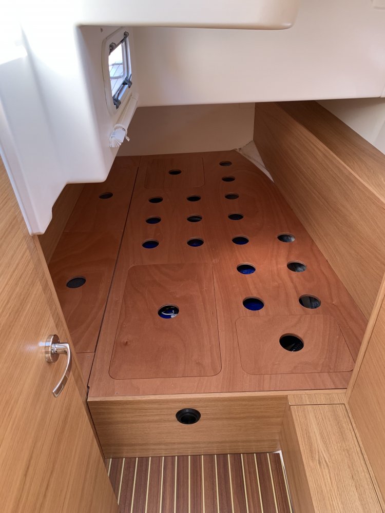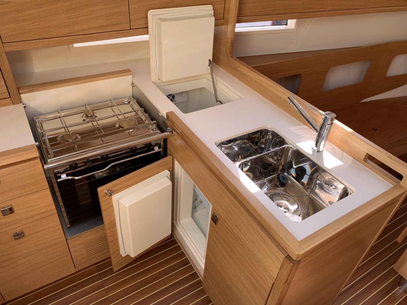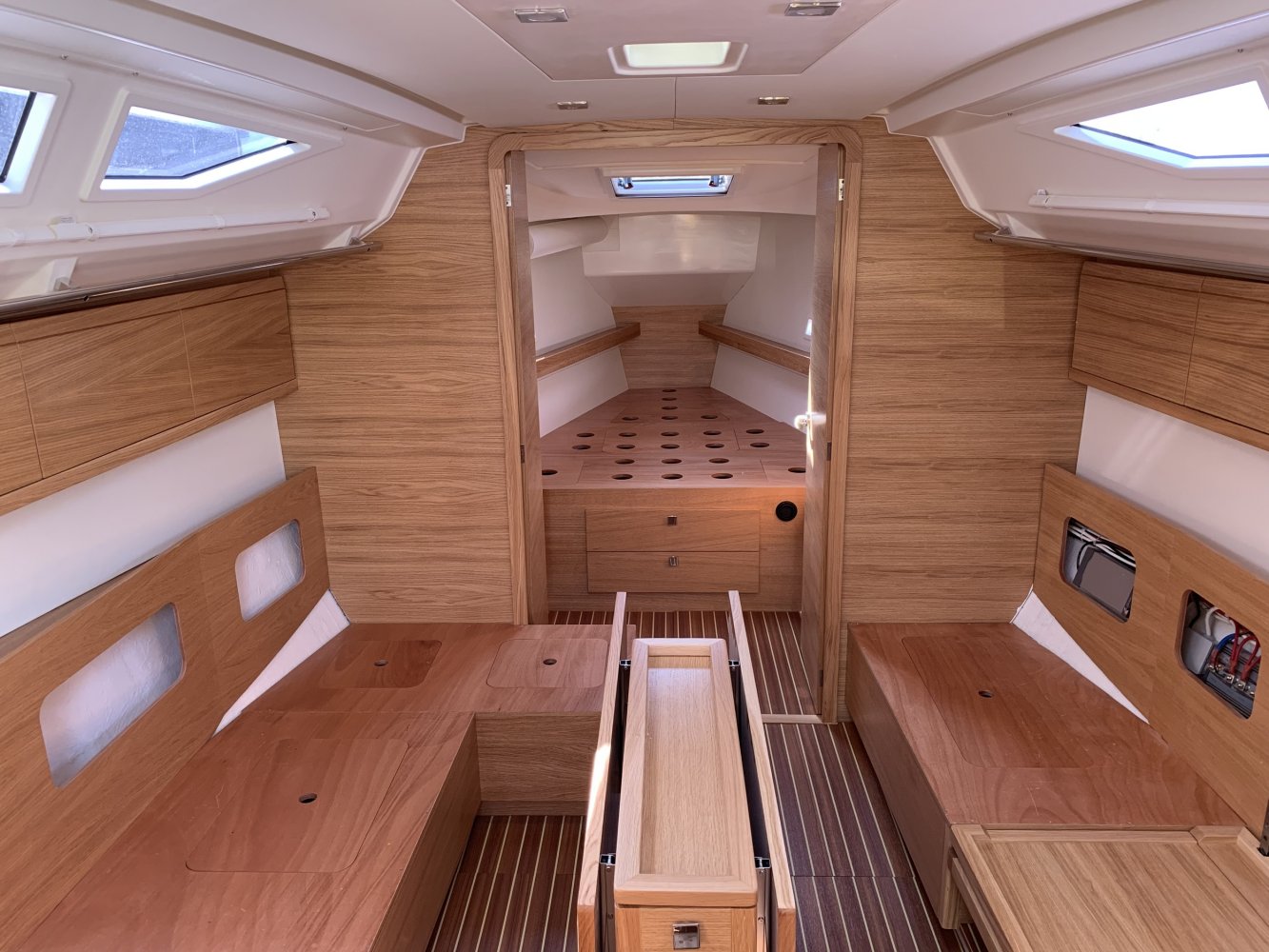 PACKAGES Ready to sail Mainsail cruising plus, Dacron 3-Radial cut, One Sails                                                    Genoa cruising plus, Dacron 3-Radial cut, 105%, UV protection, One Sails MDS Sliders for mainsail                                                                                                   Lazy bag and lazy jack                                                                                                       Genoa thru deck furler with deck equipment                                                                                                                                        Anchor windlass 1000W-12V   (incl.: stainless steel bow fitting, anchor 10 kg "Delta" type, anchor chain 50m x 8mm)                                                                                                                                                              230V AC electric power & distribution system with battery charger, water heater     Comfort Teak massive in cockpit                                                                                                   Sprayhood with stainless steel tubes                                                                               Removable teak cockpit table with central inox hand rail                                             Shower in cockpit                                                                                                                Stern platform                                                                                                                    Carbon retractable bowsprit 1,05m                                                                           Cover for steering wheels & navigation instruments panels                                 Electronic, navigation & communication B&G Salona pack (2 pcs Triton T41 SP/DPT/WND B&G, N2K Starter Kit)                     B&G Autopilot system (Triton pilot control, rate compass, L&S 40 ST 16 newwave 12 v linear)   B&G VULCAN 7"                                                                                                     Pedestal for instruments on consoles x 2 pcs VHF RS 12 DSC radio sea kit                                                                                      VHF Antenna Glomex                                                                                                      Audio package: IP 700 Fusion + 2 speakers in saloon                                                    2 Waterproof speakers in cockpit