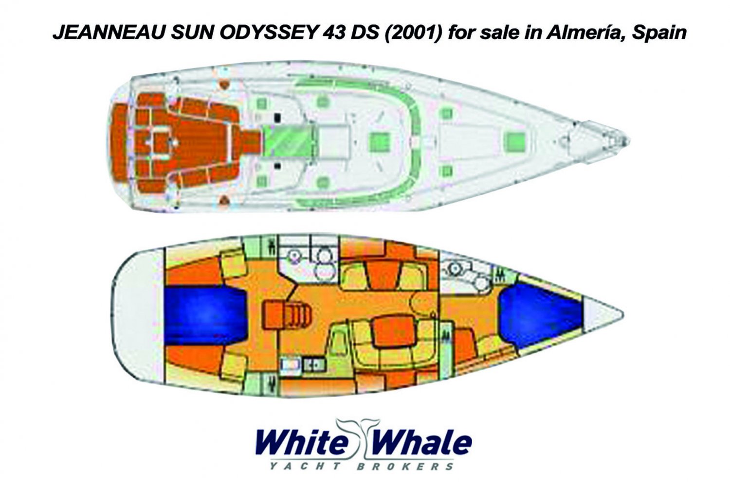 Spacious ocean cruiser JEANNEAU SUN ODYSSEY 43 DS located in Almería, Spain. Extensive equipment and lots of extras to make living on board comfortable: airco, watermaker, modern Raymarine electronics, big fridge, etc. 3 Cabin version. Current owner is professional certified yacht surveyor, everything in top condition.