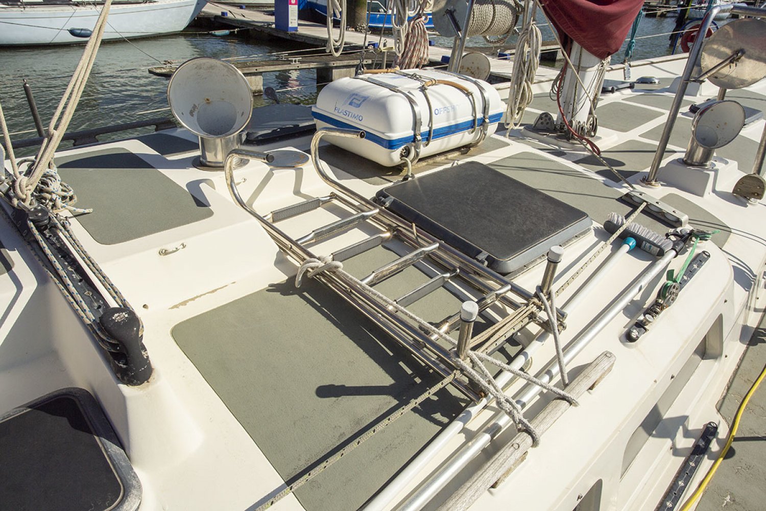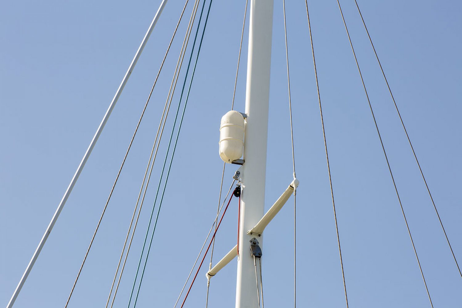 Aluminium mast geschilderd 2019; voorstag dyform, andere 1x19 RVS, dyneema bakstagen
