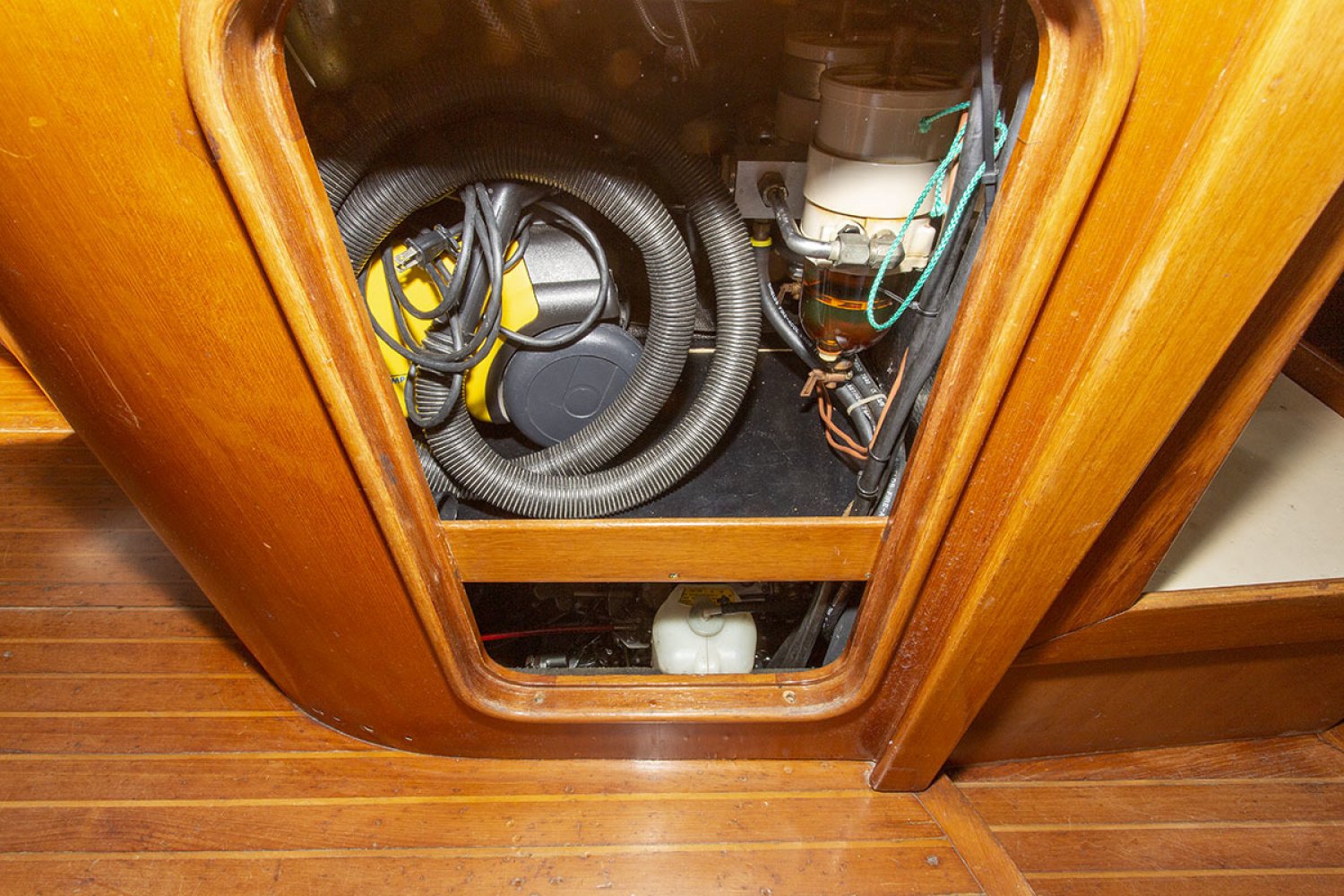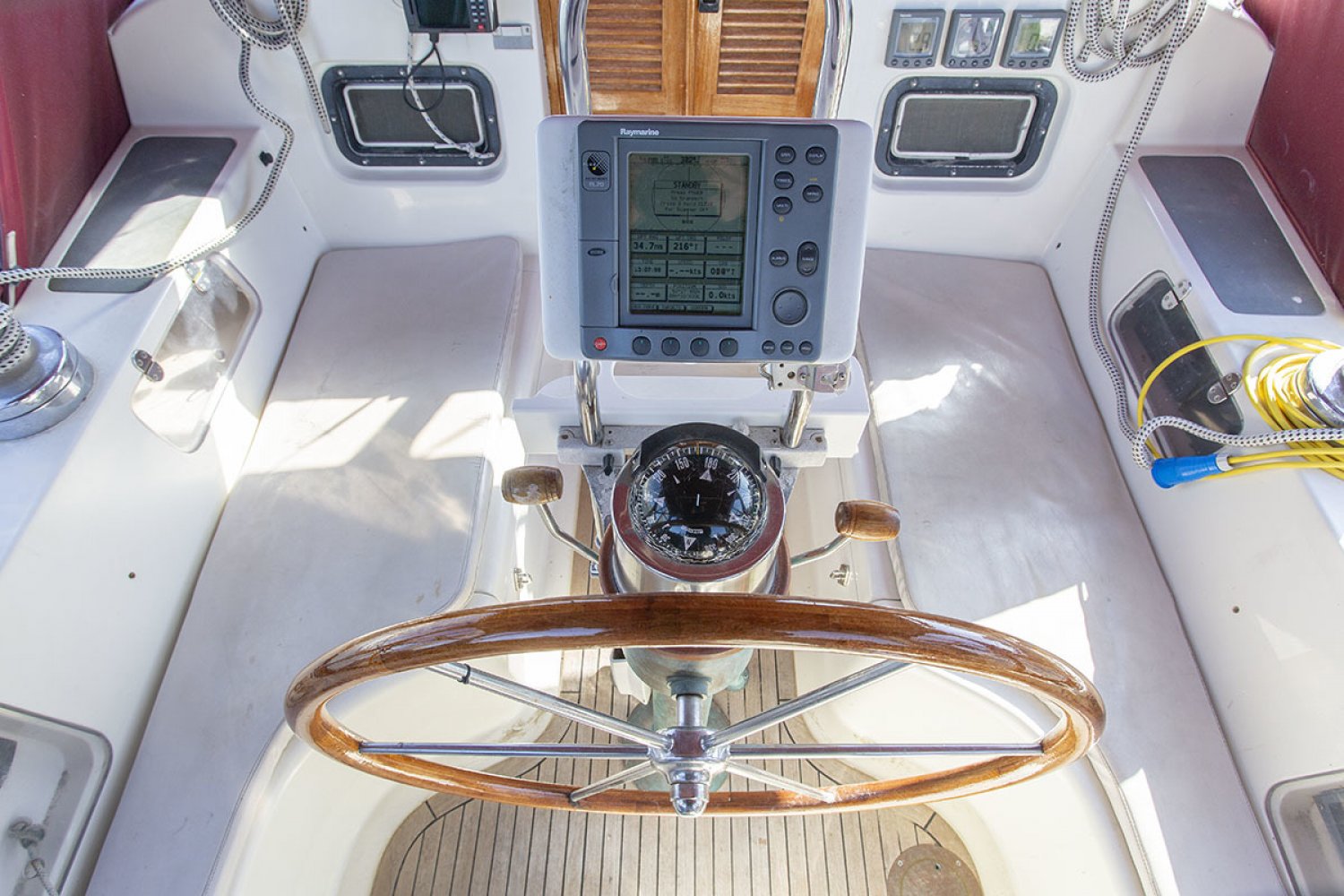 Het interieur is een unieke combinatie van de "Tropic" "Corinthian" layout met een licht teak interieur. Het voorste gedeelte is de "Tropic" -indeling met de V-bed in de boeg en aan bakboord natte cel met aparte douchecabine. De salon en achterkajuiten hebben een "Corinthian" indeling met een U-vormige kombuis aan bakboord en een grote navigatiehoek SB tegenover de kombuis. Onder de kuip is een generator geplaatst en de hoofdmotor is onder het keukenblok gemonteerd.