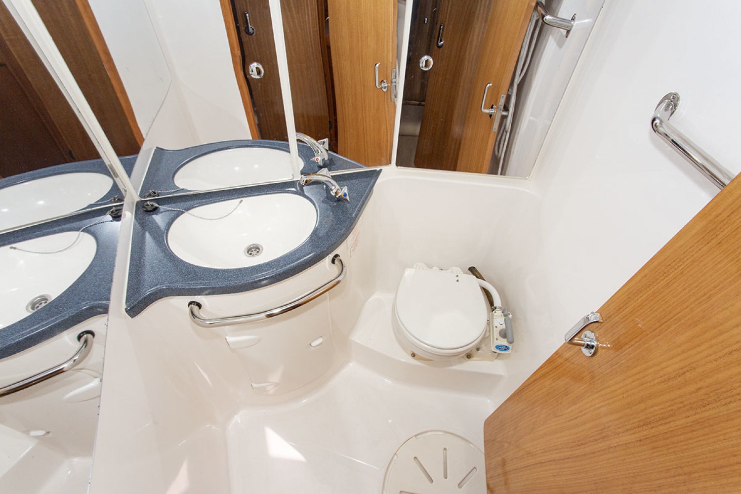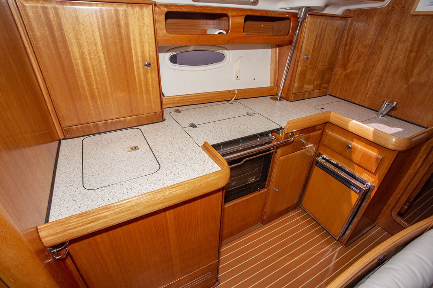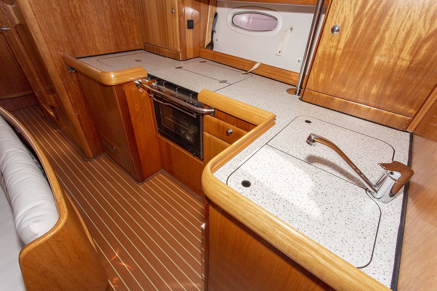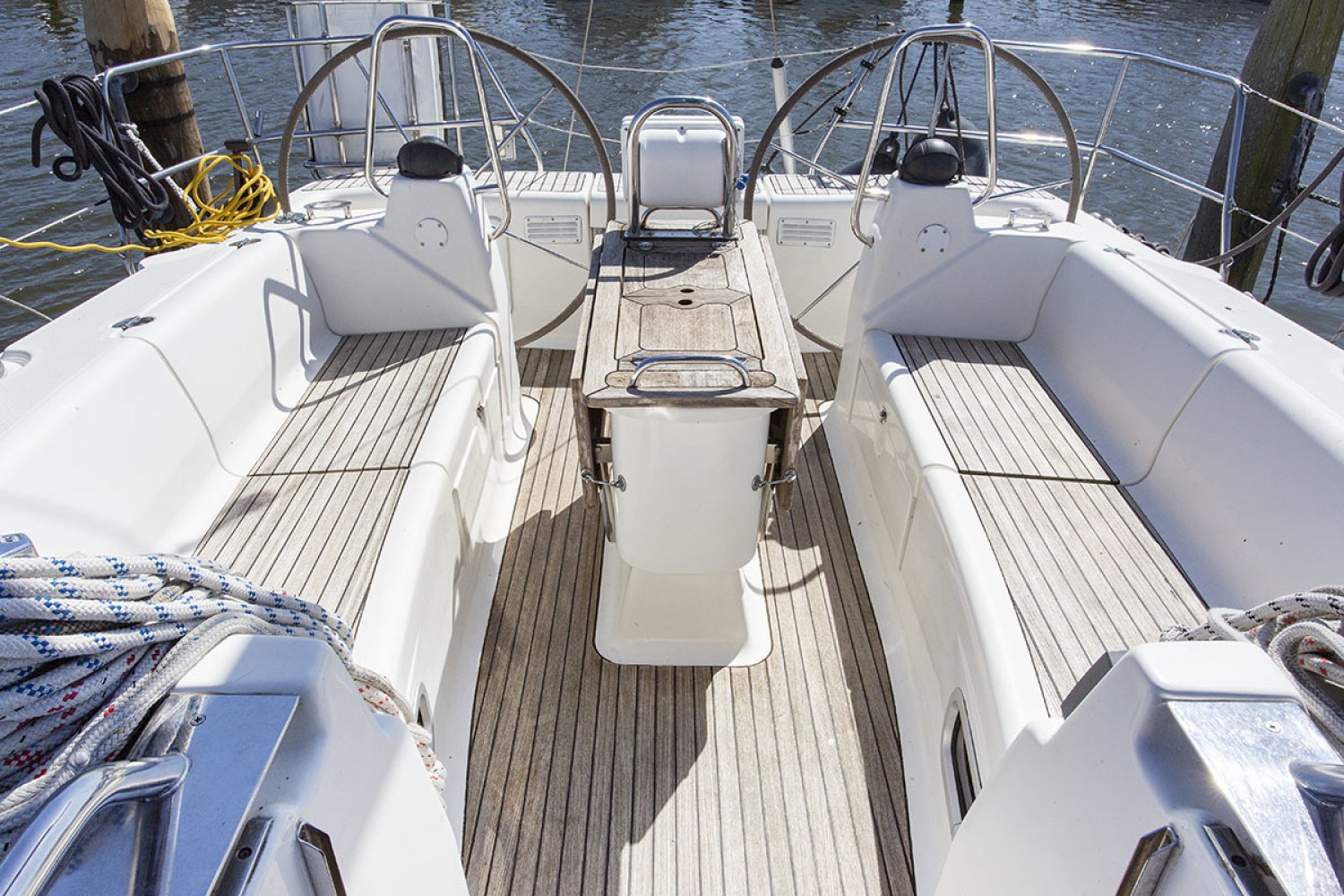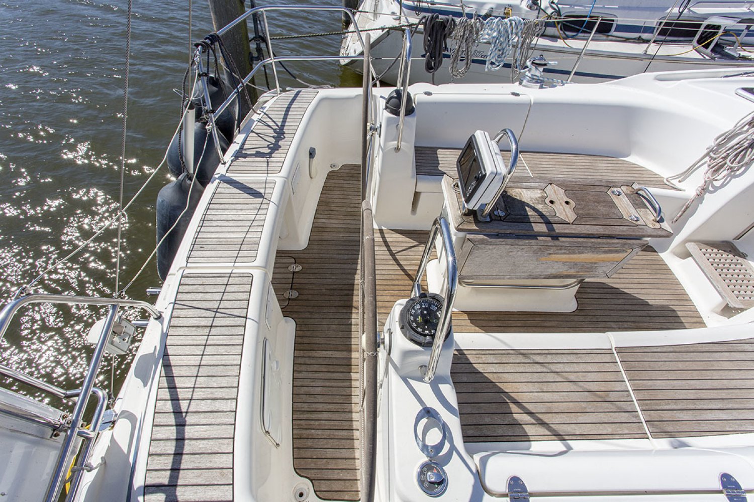 De Bavaria 42-3 die wij aanbieden is van de eerste particuliere eigenaar. De boot heeft een volledige uitrusting waaronder Genua reefsysteem en een elektrische ankerlier. De "Novo Mundo" is een goed onderhouden schip De kuip is ruim met centraal een teak houten tafel waarin ook de Raymarine navigatie apparatuur is ingebouwd. Door de dubbele stuurstand is er goede doorloop vanaf de spiegel naar binnen. Alle lijnen zijn naar de cockpit geleid wat het zeilen zeer comfortabel maakt. Zoals alle Bavaria's is ook in deze boot het interieur zeer ruim en praktisch. Midden in de salon is de tafel met banken rondom. Links is de toiletruimte en rechts de navigatiehoek met schakelpaneel. Aan bakboord is de keuken geplaatst met veel koel en bergruimte. In het achterschip zijn twee dubbele kooien en in het voorschip is de eigenaarshut met en suite badkamer. De Volvo D2-55 is goed bereikbaar door de open scharnierende trap en wegneembare panelen aan de zijkant. Deze boot wordt bemiddeld via kantoor White Whale Yachtbrokers Enkhuizen. Heeft u belangstelling neem dan contact op via [email protected] of +31(0)228 855 380 voor meer informatie of het maken van een afspraak voor bezichtiging aan boord. Bezichtigingen zijn mogelijk van maandag t/m zaterdag.