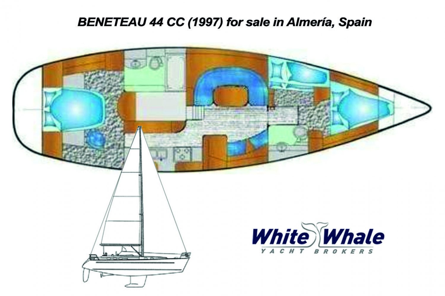 (ES) Fantástico velero Beneteau 44 CC. Bruce Farr diseñó este bañera central fácil de manejar y con mucho espacio en el interior. Versión 3 camarotes. El actual propietario navegó todo el mediterráneo. Buen mantenimiento. Equipamiento al día. A visitar en el varadero del Puerto Almerimar, Almería, España (desde diciembre 2018).
