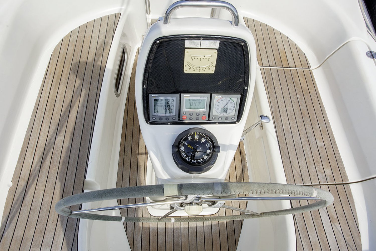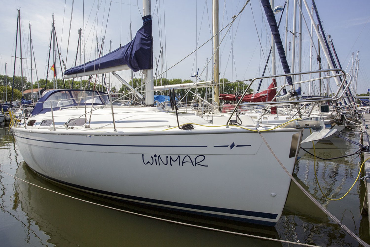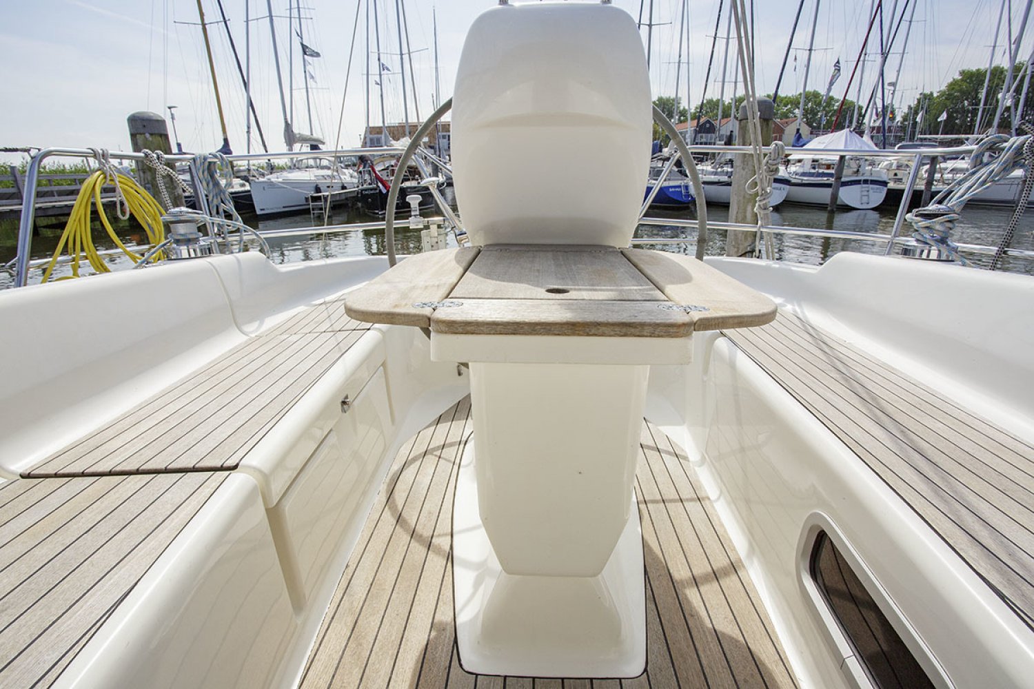 Deze Bavaria 30 cruiser is de Benjamin in de vloot van de populaire Duitse Bavaria werf. Toch is ook deze boot zeer volledig uitgerust met alle apparatuur die een verblijf aan boord zo aangenaam maakt. De boot is met haar lengte van 30 voet ongelofelijk ruim en heeft zeer goede vaareigenschappen zowel op de motor als onder zeil. De kuip is praktisch en ruim, in het midden van de kuip is de stuurstand met navigatie apparatuur. Aan stuurboord treft u een diepe bakskist met daarin voldoende ruimte voor het opbergen van grote zaken. Vanaf de stuurstand hebt u goed overzicht over het jacht en controle over het kompas en de navigatie instrumenten. Het zwemplatform is gemakkelijk bereikbaar via de demontabele achterbank.