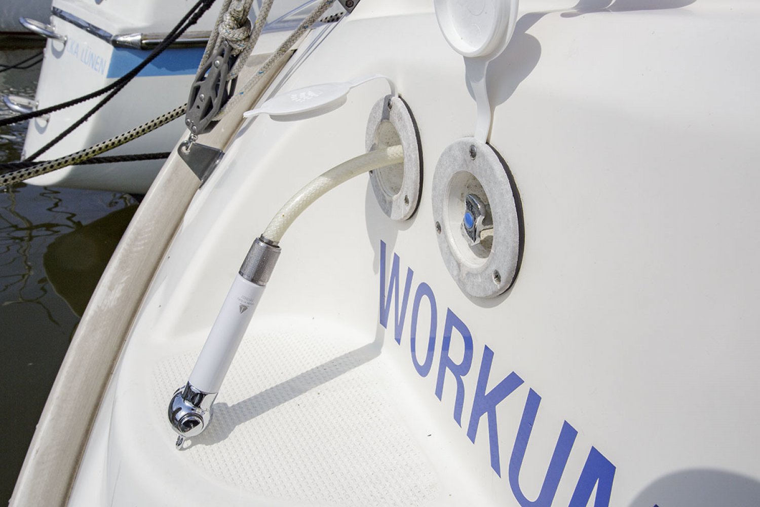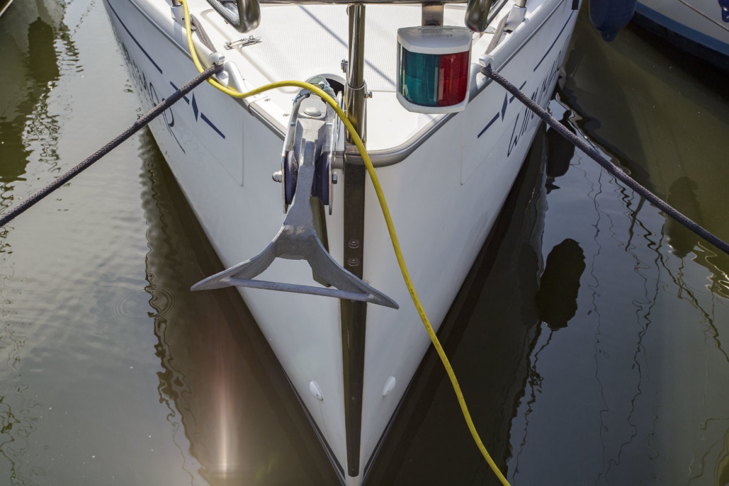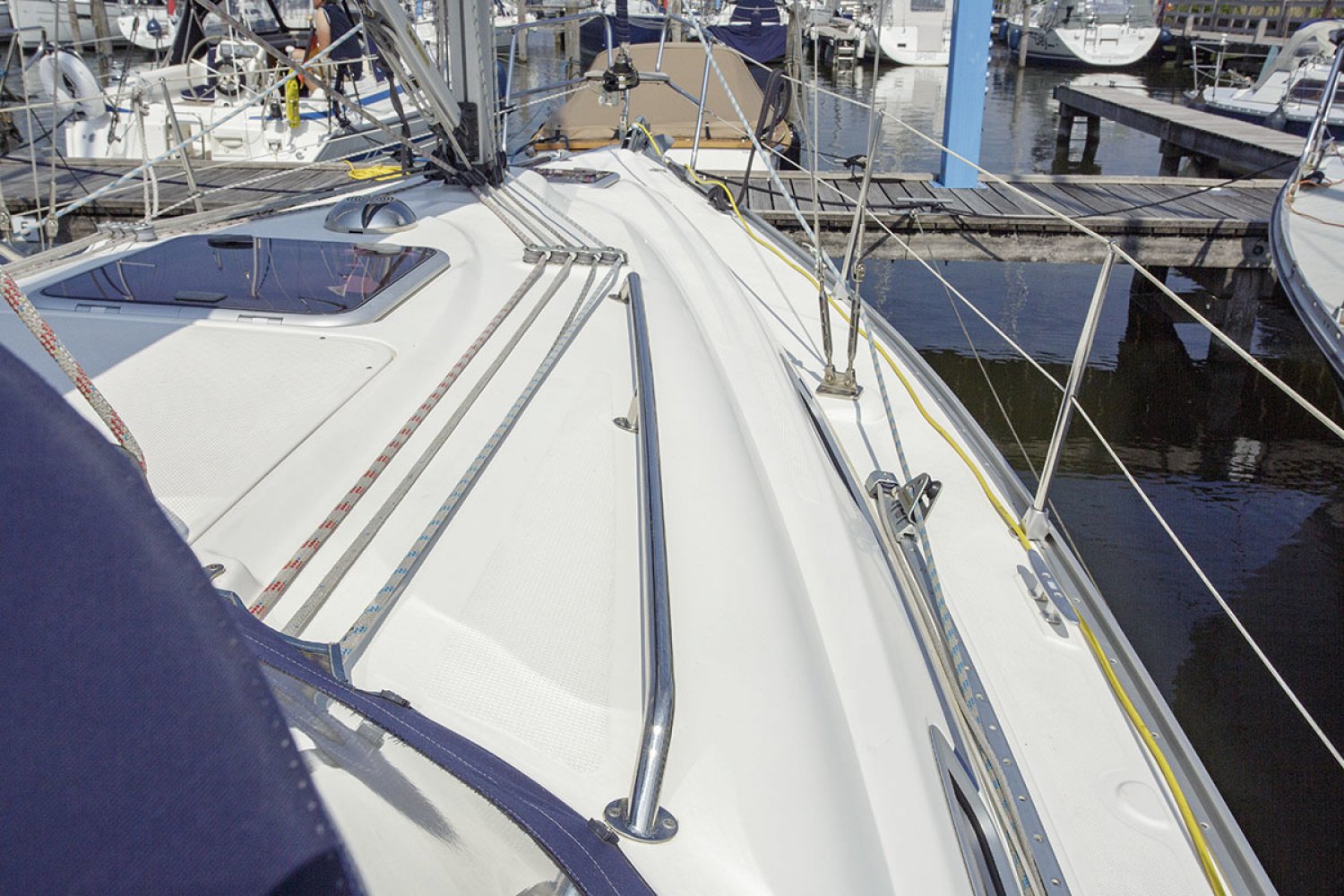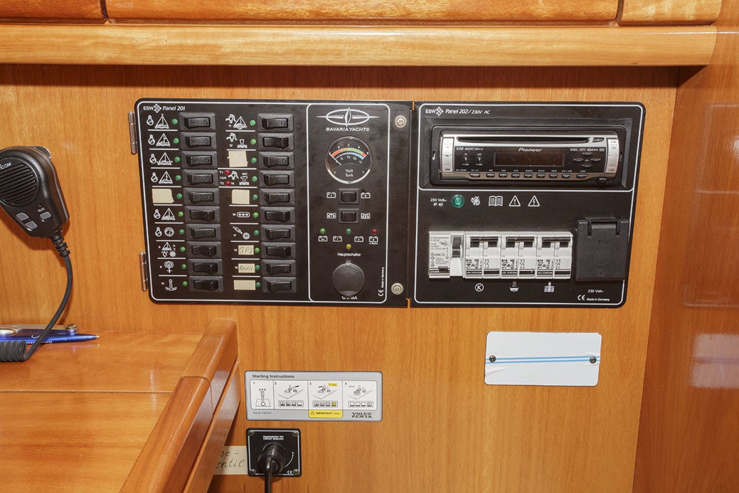 Deze Bavaria 30 cruiser is de Benjamin in de vloot van de populaire Duitse Bavaria werf. Toch is ook deze boot zeer volledig uitgerust met alle apparatuur die een verblijf aan boord zo aangenaam maakt. De boot is met haar lengte van 30 voet ongelofelijk ruim en heeft zeer goede vaareigenschappen zowel op de motor als onder zeil. De kuip is praktisch en ruim, in het midden van de kuip is de stuurstand met navigatie apparatuur. Aan stuurboord treft u een diepe bakskist met daarin voldoende ruimte voor het opbergen van grote zaken. Vanaf de stuurstand hebt u goed overzicht over het jacht en controle over het kompas en de navigatie instrumenten. Het zwemplatform is gemakkelijk bereikbaar via de demontabele achterbank.