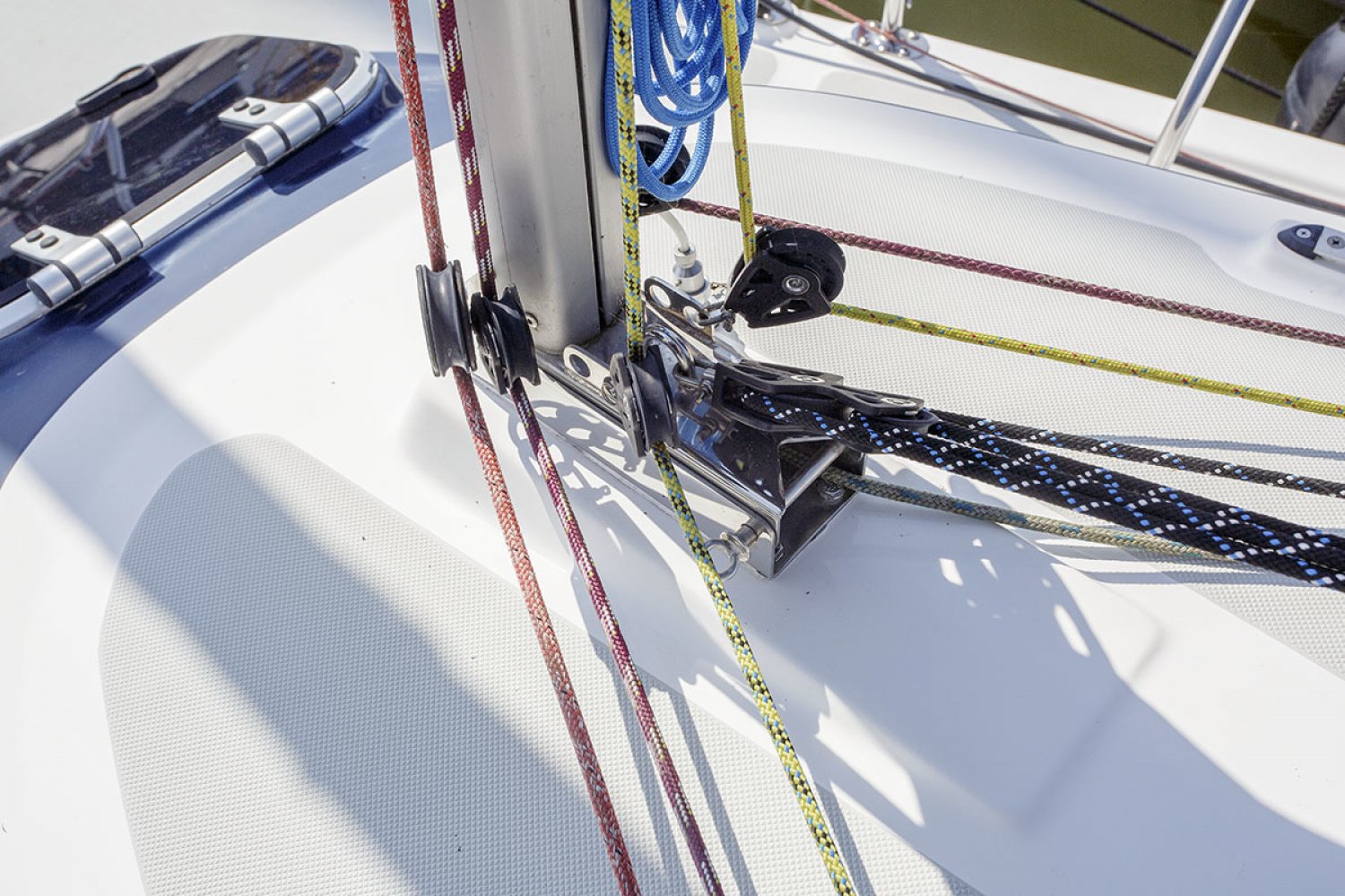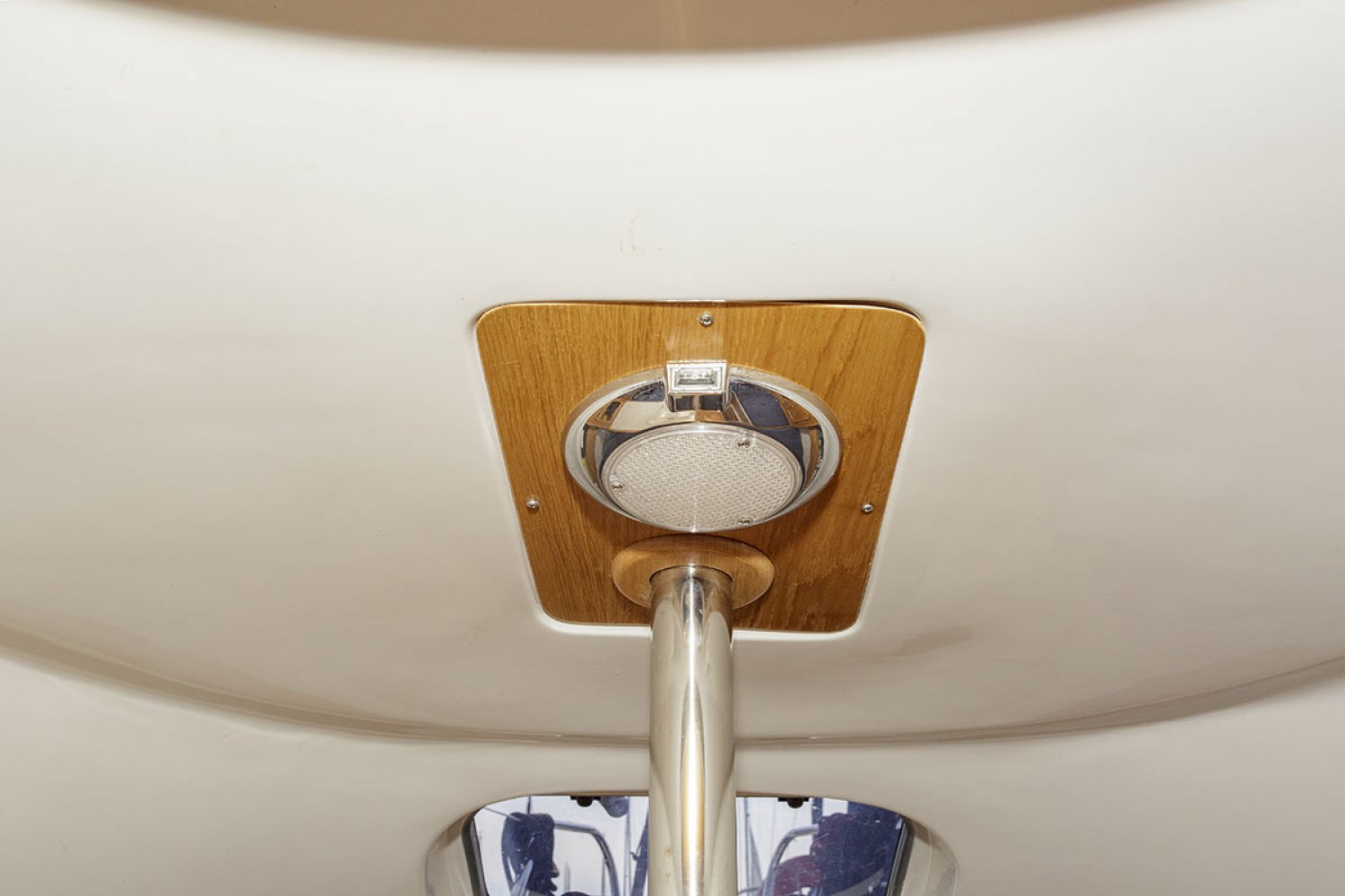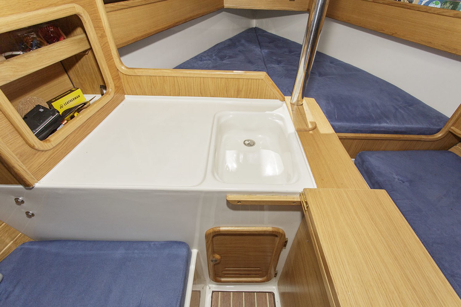 Binnen is de boot praktisch ingedeeld met 4 slaapplaatsen, deze Fan 20 heeft een combinatie van blauwe bekleding en hout. De mast is inklapbaar, wat maakt dat de boot makkelijk op een trailer vervoert kan worden naar een ander vaargebied.