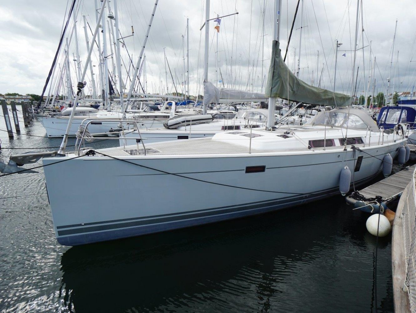 Uitstekend onderhouden Hanse 445 uit 2011 aangeboden door de eerste eigenaar. Het schip gaat ieder jaar de kant op voor nieuwe antifouling en krijgt uiteraard netjes zijn beurten en overig onderhoud en is zo ongeveer van elke optie voorzien die er toen te krijgen was. Dat varieert van de grotere motor en ge-upgrade zeilen tot aan een magnetron in het kombuis en de mooie licht grijze gelcoat van de romp en alles wat daar tussen zit.