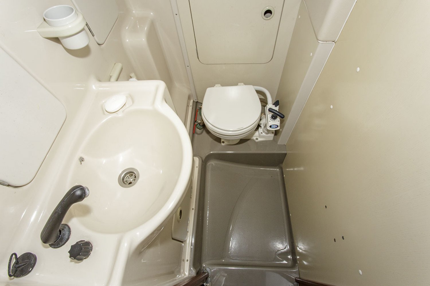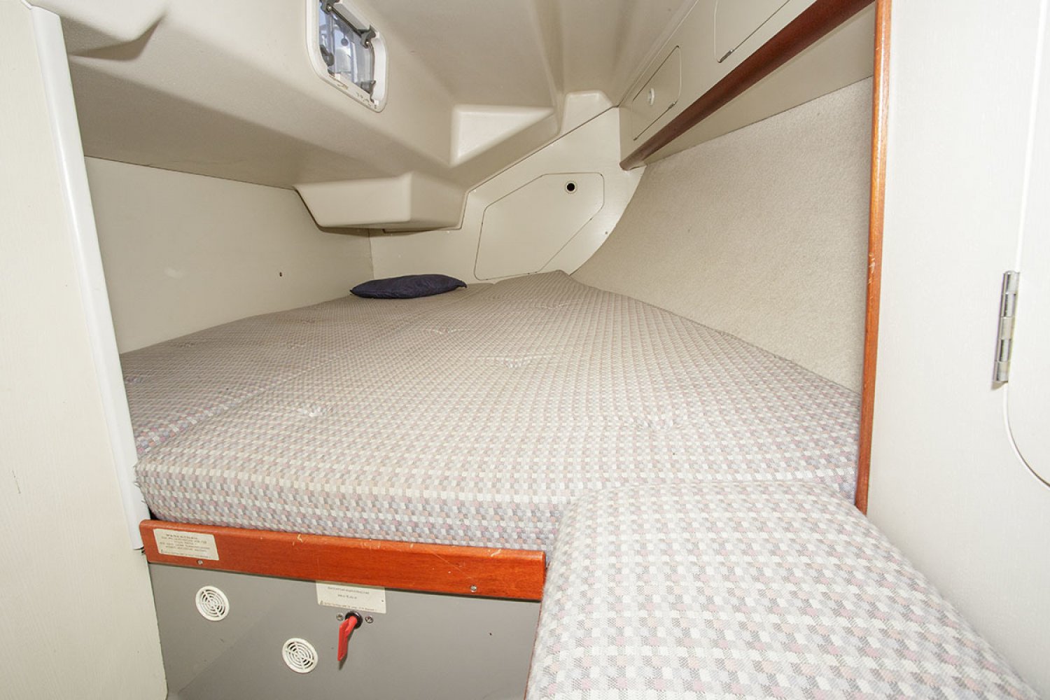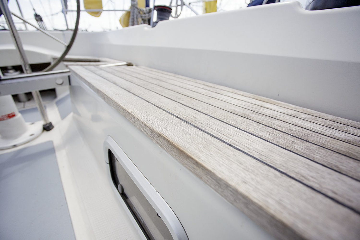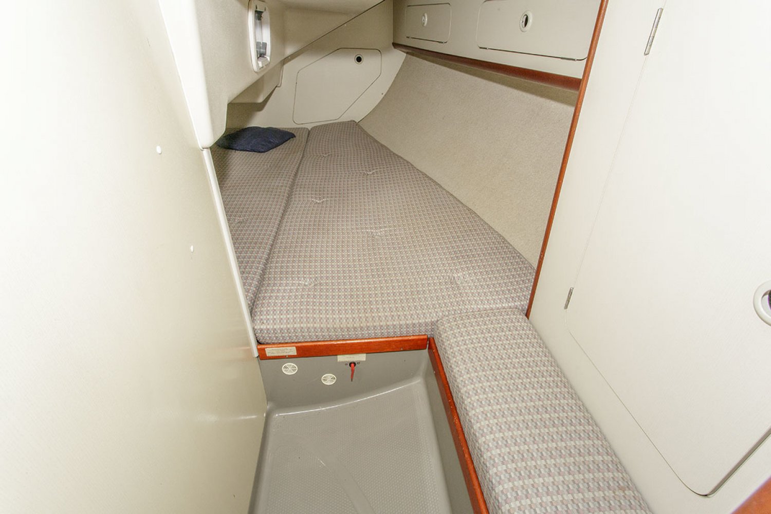 De salon is ruim, door gebruik van Mahonie hout oogt de salon knus en scheeps. Aan bakboord bevindt zich de keuken met kookstel, oven, koelkast en veel opbergruimte. Aan stuurboord is de kaartentafel, met in het achterschip de mooie en praktische natte cel. De salon heeft 2 langs banken die tevens dienst kunnen doen als extra kooien. Achter is een ruime tweepersoons hut. In het voorschip bevindt zich een tweede dubbele hut.