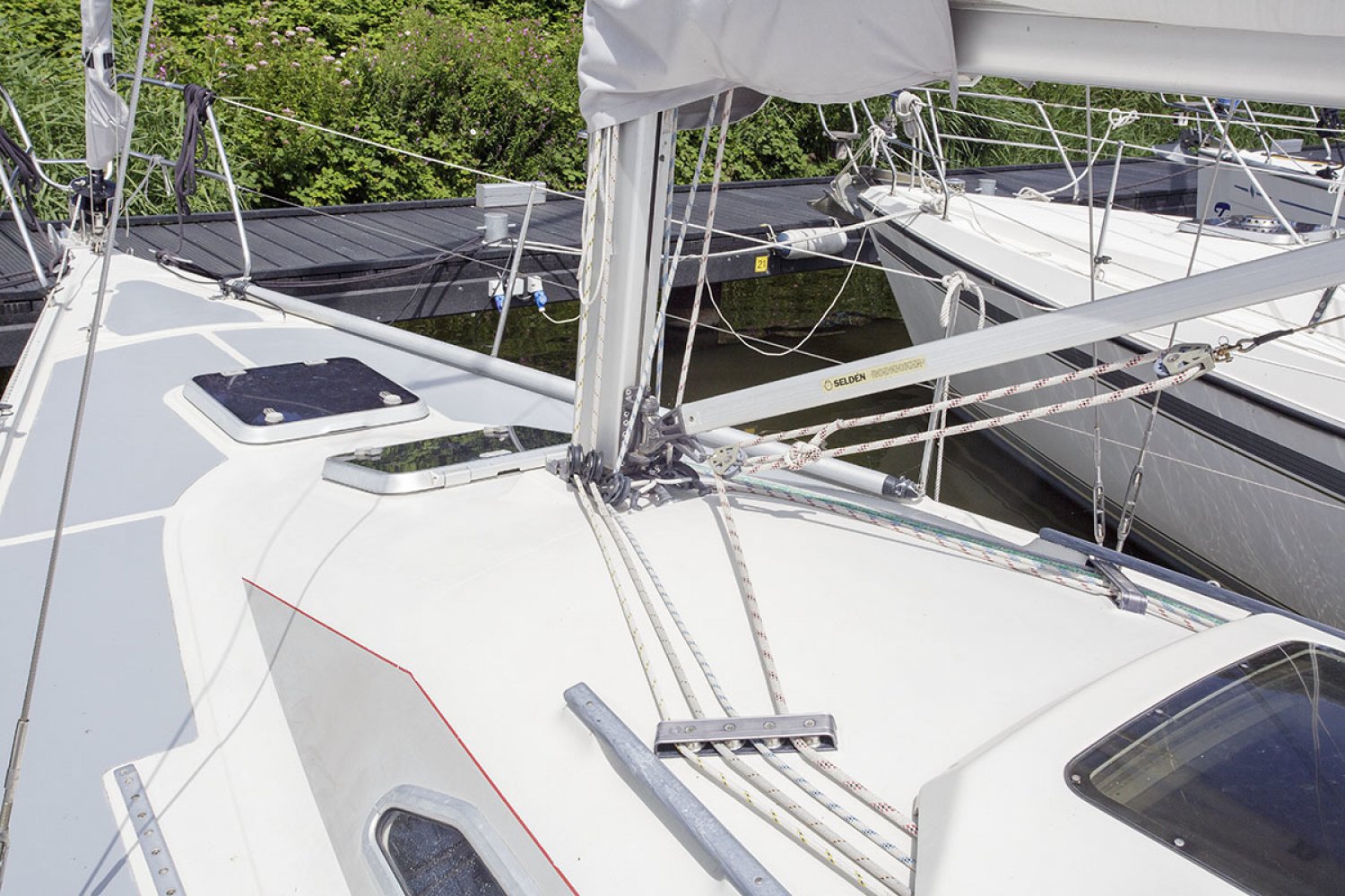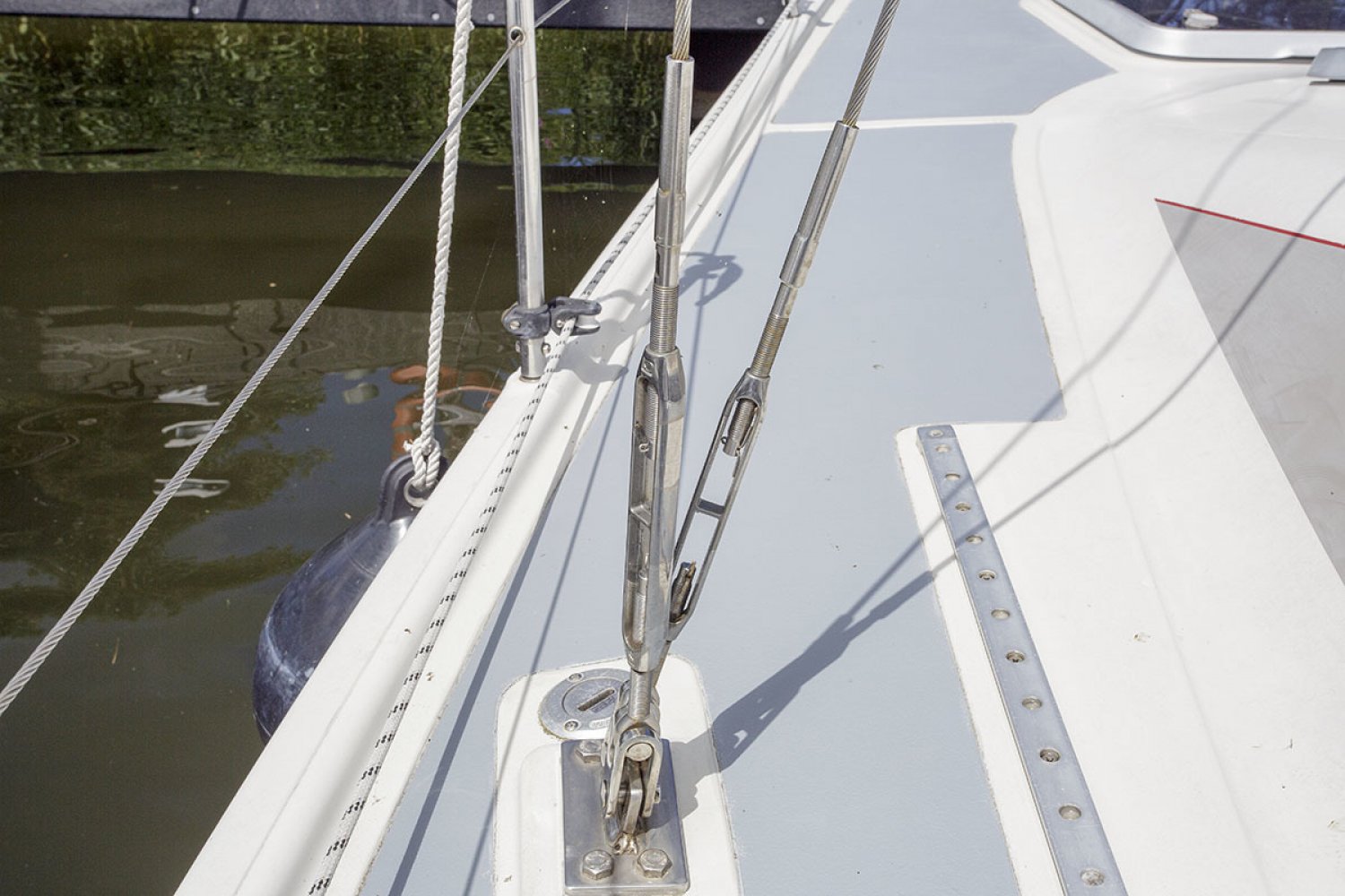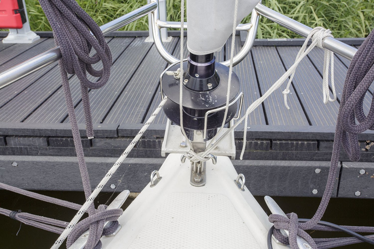 Verstaging: rvs 1x19 voorstag 7 mm, top/onderwant 7 mm, achter 5 mm (nieuw 2016); rolfokhoes + huik voor maindrop, lichtgrijs (beide uit 2017)