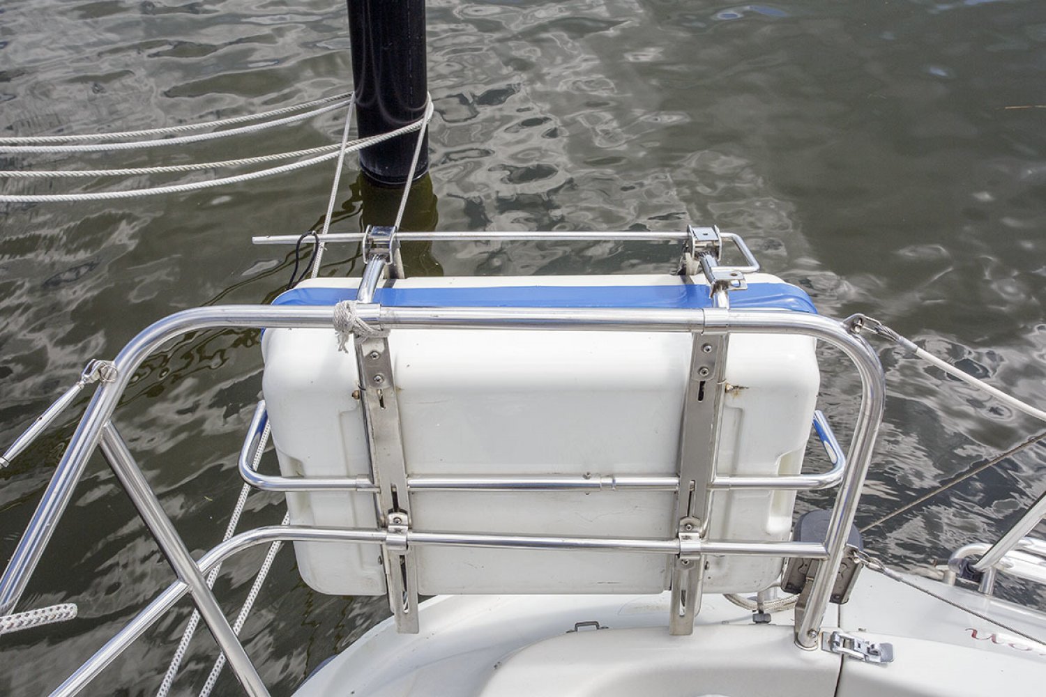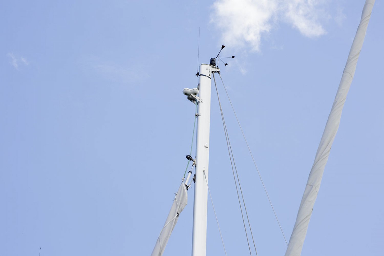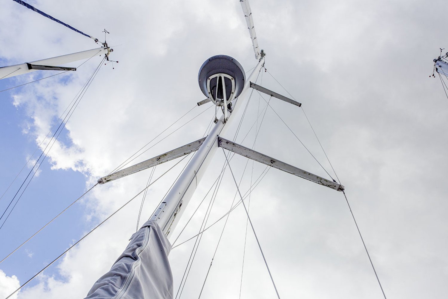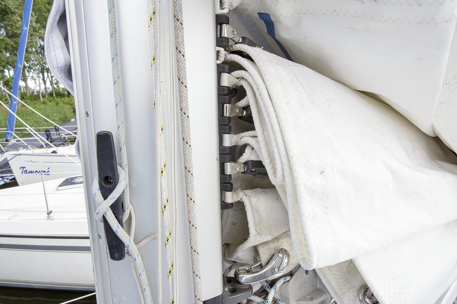 Verstaging: rvs 1x19 voorstag 7 mm, top/onderwant 7 mm, achter 5 mm (nieuw 2016); rolfokhoes + huik voor maindrop, lichtgrijs (beide uit 2017)