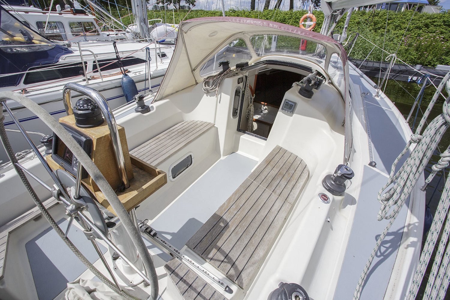 Deze Dehler 34 Top die wij u aanbieden namens de 3e eigenaar is een door Van de Stadt ontworpen degelijk gebouwd jacht. Ondanks haar leeftijd is de boot nog steeds een sportieve zeiler, er is tevens een behoorlijk complete uitrusting. Zij biedt ook veel comfort met een ruime salon en twee dubbele hutten. Dit jacht is in een goede staat van onderhoud. In de kuip komen alle lijnen samen; de zeilgarderobe bestaat uit 5 zeilen, deze zijn nog in goede staat.In 2016 werd de mast en de verstaging vervangen en werden 2 Pontoslieren geplaatst voor de Gennaker.