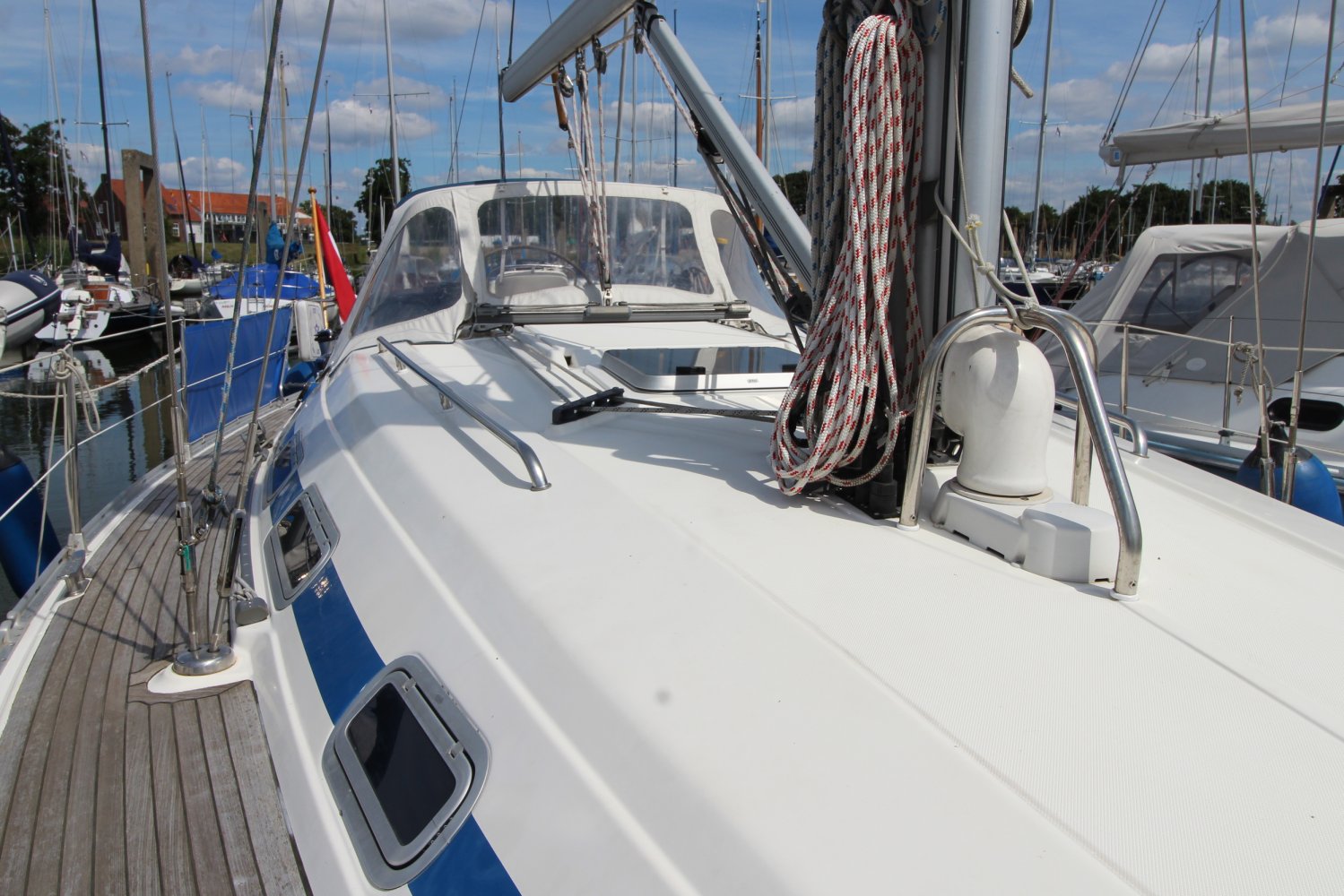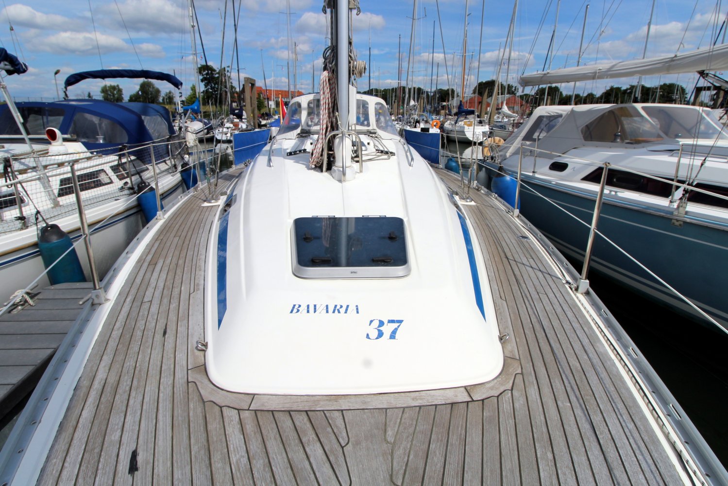 Dit Bavaria 37 Exclusive zeiljacht, afkomstig van de Duitse werf: Bavaria Yachtbau GmbH te Giebelstadt, is een wereldwijd populair zeiljacht onder zeilers die graag sportief bezig zijn, maar ook comfortabel willen genieten van hun verblijf op het water. Het exemplaar welke wij u aanbieden namens de 2de eigenaar, is de versie van 2 hutten met 4 vaste slaapplaatsen. Het dek, de kuip en het zwemplateau zijn voorzien van teak hout.