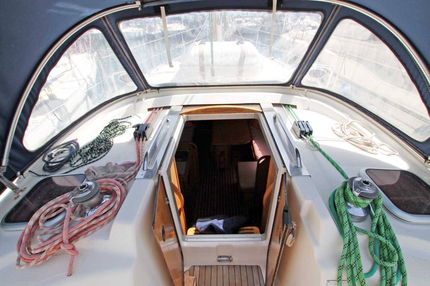 (ES) Bavaria Cruiser 38 del 2008 poco usado, versión 3 camarotes. Mantenimiento impecable y listo para navegar. Bavaria Yachts combinó 2 aspectos esenciales – prestaciones a vela y espacio – en este mundialmente conocido crucero. La bañera XXL es muy cómoda con rueda plegable. El motor Volvo Penta con solamente 560 horas de trabajo (aprox.), bien cuidado y con aspecto nuevo. Amarrado en Puerto Deportivo de Aguadulce (Almería), España. A visitar con cita previa. Bandera Reino Unido pero antes registrado en España, con todos los impuestos pagados.