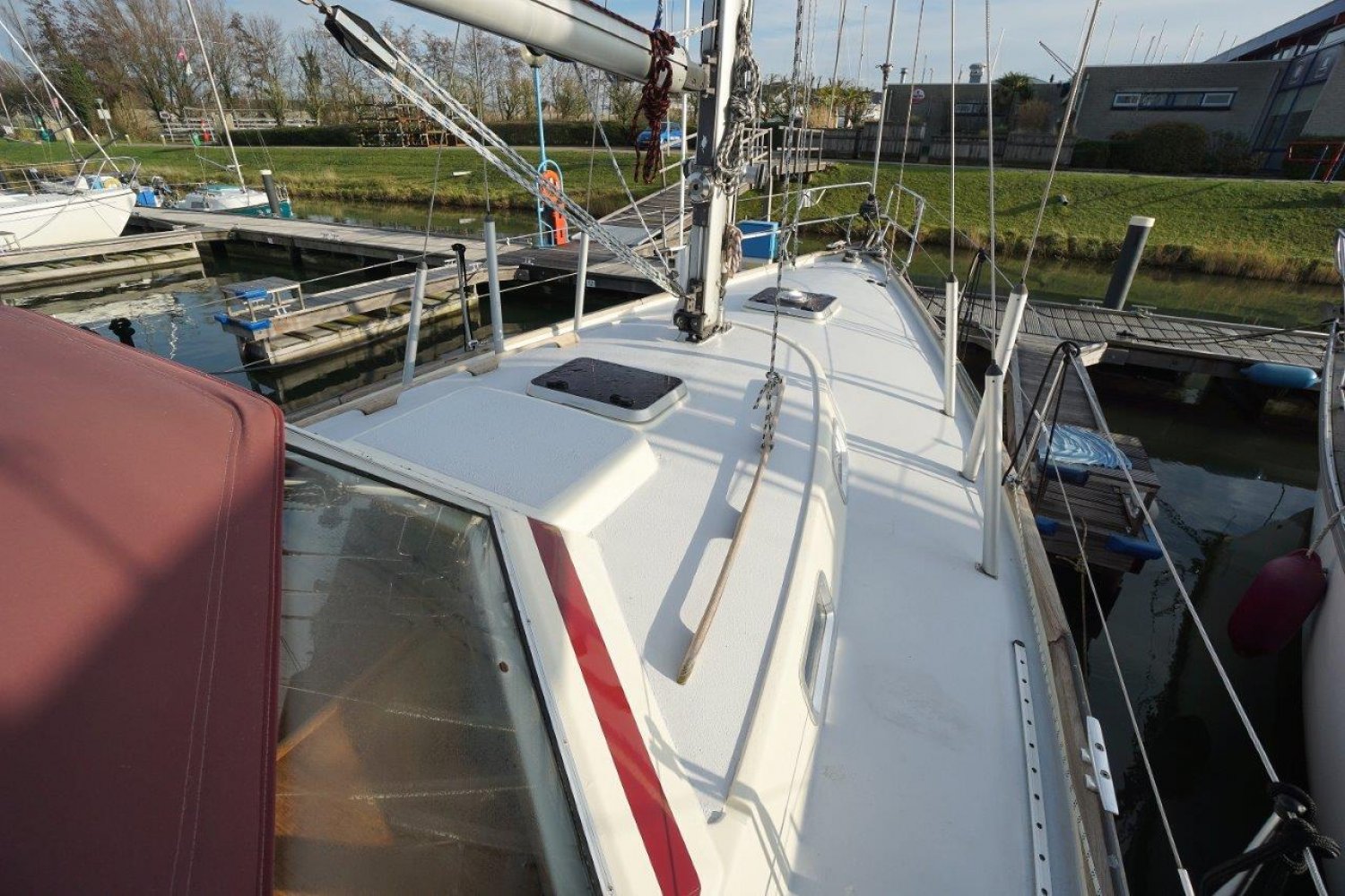Een zeer interessant details is dat het grootste pijnpunt van dergelijke schepen van deze leeftijd reeds is aangepakt; het teakdek is reeds verwijderd. Dat scheelt erg veel ergernis en potentiële kosten voor een volgende eigenaar. De rubbers van teak dekken gaan een keer wijken met kans op lekkage en de houten delen slijten uiteraard ook met de jaren. In dit geval is alles dus integraal verwijderd en is er een polyester antislip dek voor in te plaats gekomen. Hiermee heeft u voor de toekomst een zorgeloos dek. En mocht u om cosmetische redenen alsnog een teak of een andere type dek willen laten plaatsten, het kan gewoon op het huidige dek gelegd worden.