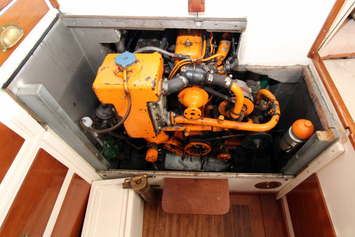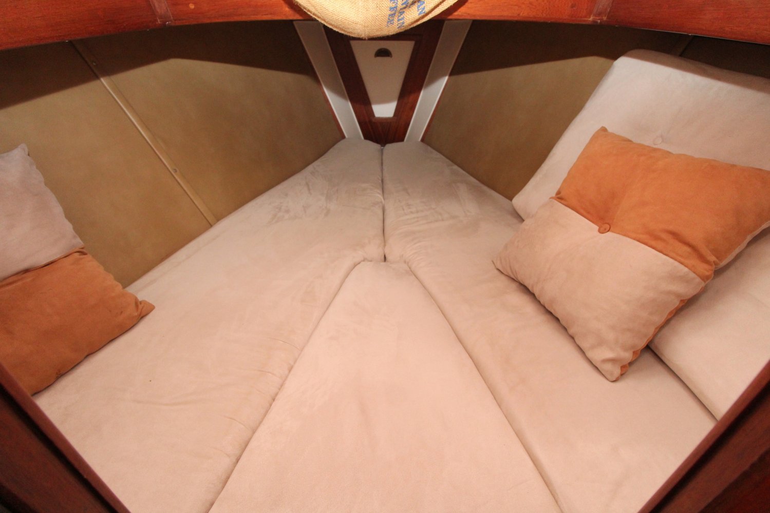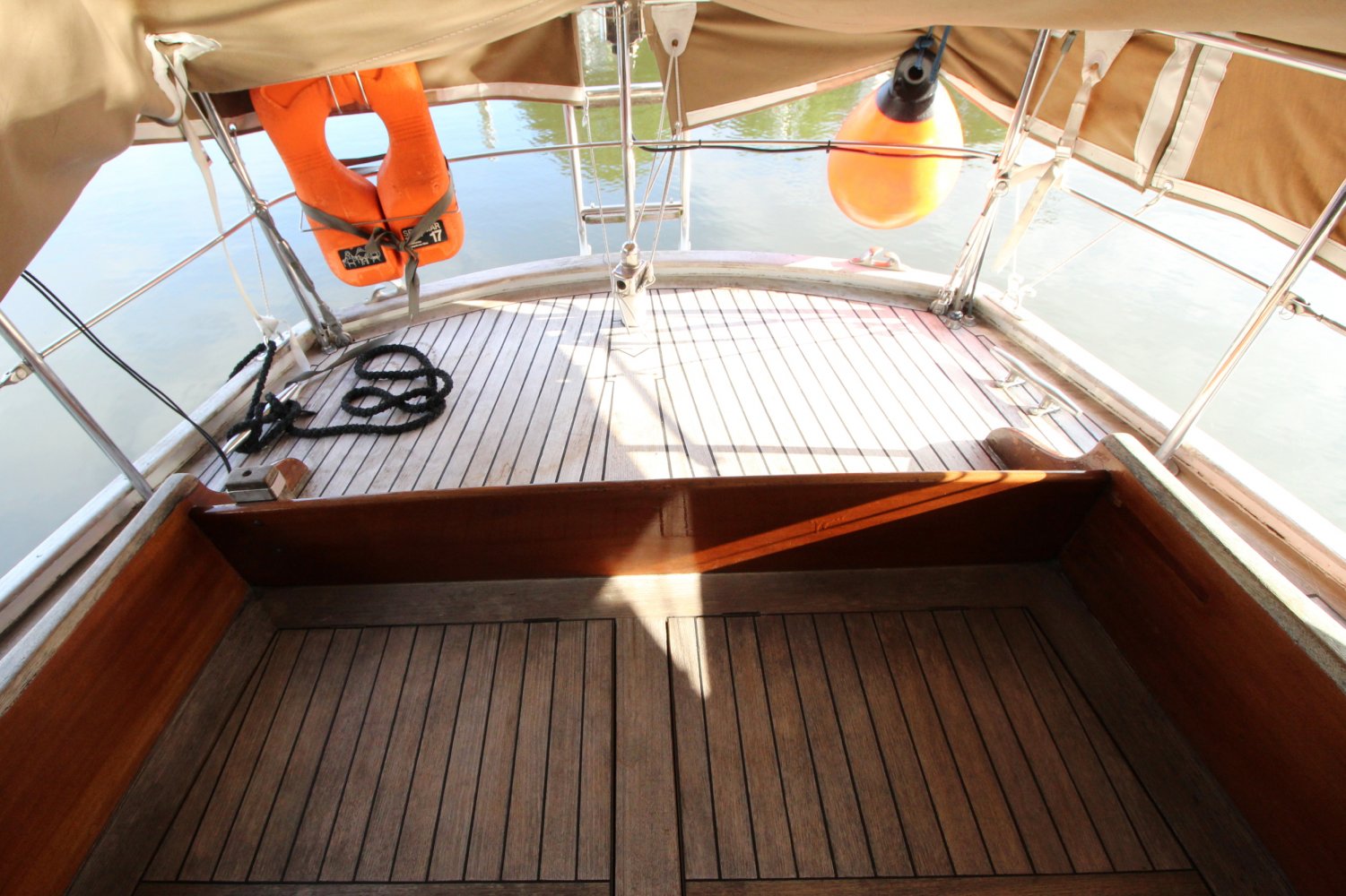Evenals de gangboorden en het voordek is de kuip aan boord van deze One-Off Zeilboot voorzien van teak hout. Beschutting wordt hier geboden aan u en mede opvarenden door de opbouw en een buiskap. Vanuit de kuip heeft u toegang tot de kajuit waar rondom geplaatste ramen voor een natuurlijk licht zorgen, hetgeen de benedendeks gelegen leefruimte een ruime uitstraling geeft. Een gezellige salon met een warm houten interieur, een comfortabele U-vormige zithoek en veel authentieke details dragen bij aan de plezierig nautische sfeer aan boord. Aan stuurboord, gelijk naast de kajuittrap, treft men de navigatiehoek aan welke beschikt over de nodige berg -en werkruimte. Een ruime kombuis en een toilet met wastafel ontbreken natuurlijk niet aan boord van deze One-Off Zeilboot. Verder heeft men de beschikking over 5 slaapplaatsen; eigenaarsverblijf in de boeg met een twee persoons bed, de zithoek welke veranderd kan worden in nog eens twee slaapplaatsen en een één persoons bed aan bakboord naast de kajuittrap, een slaapplaats die gedeeltelijk onder de kuip loopt.