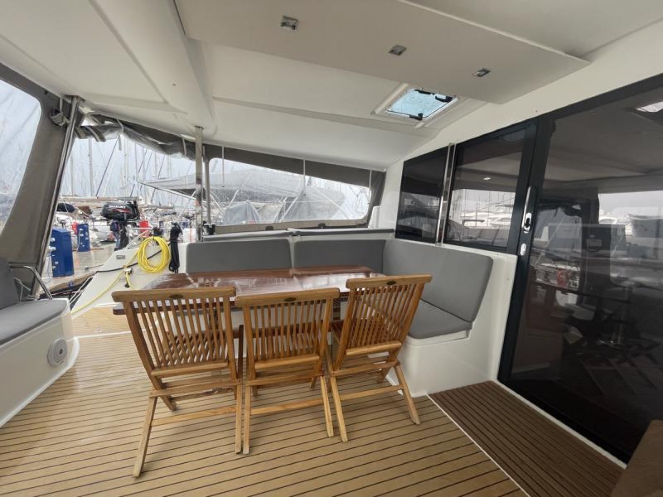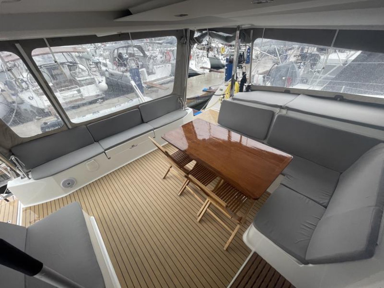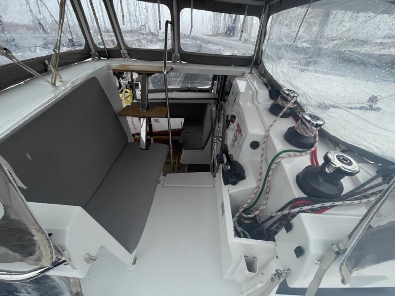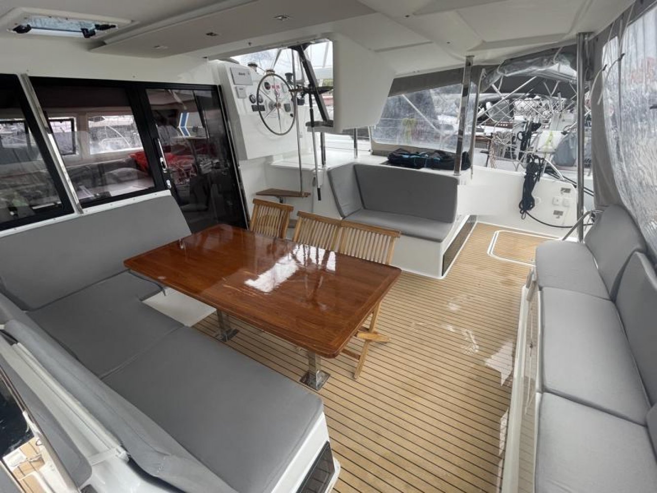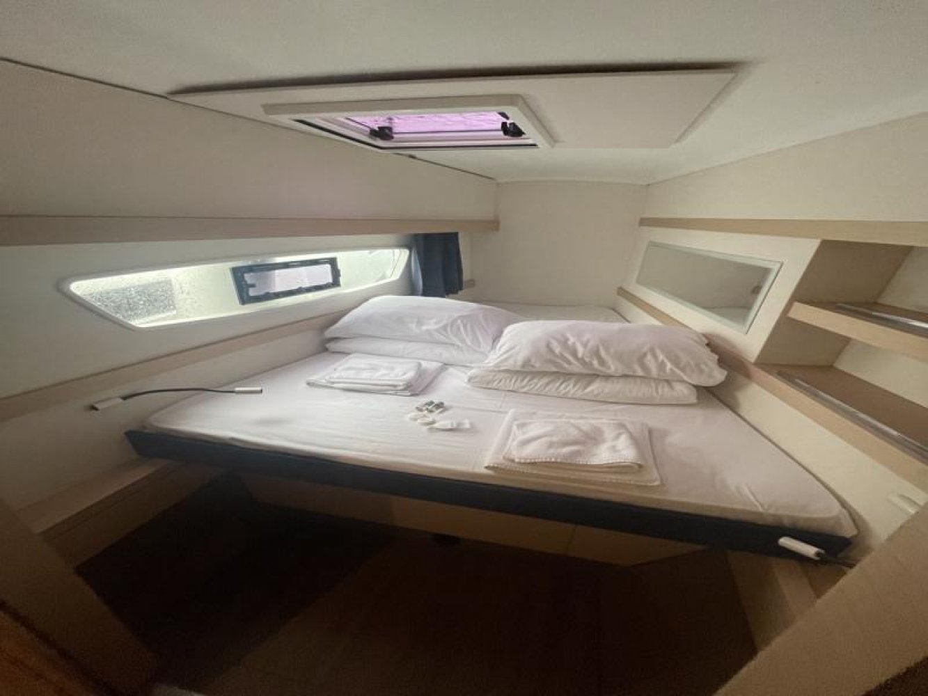 Deze Fountaine Pajot Lucia 40 uit 2017 is een zeer goed onderhouden ex-charter jacht.  Onder haar apparatuur kunnen we benadrukken : generator, airconditioning, webasto verwarming, zonnepanelen, watermaker (2021) en ijsmachine (2021). Ze vaart onder Kroatische vlag.