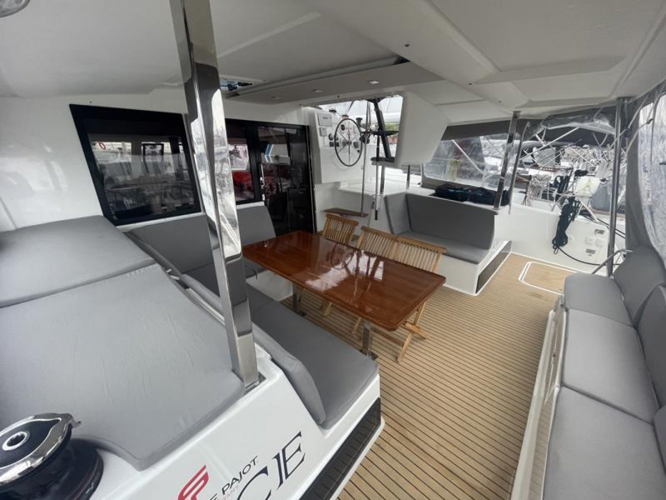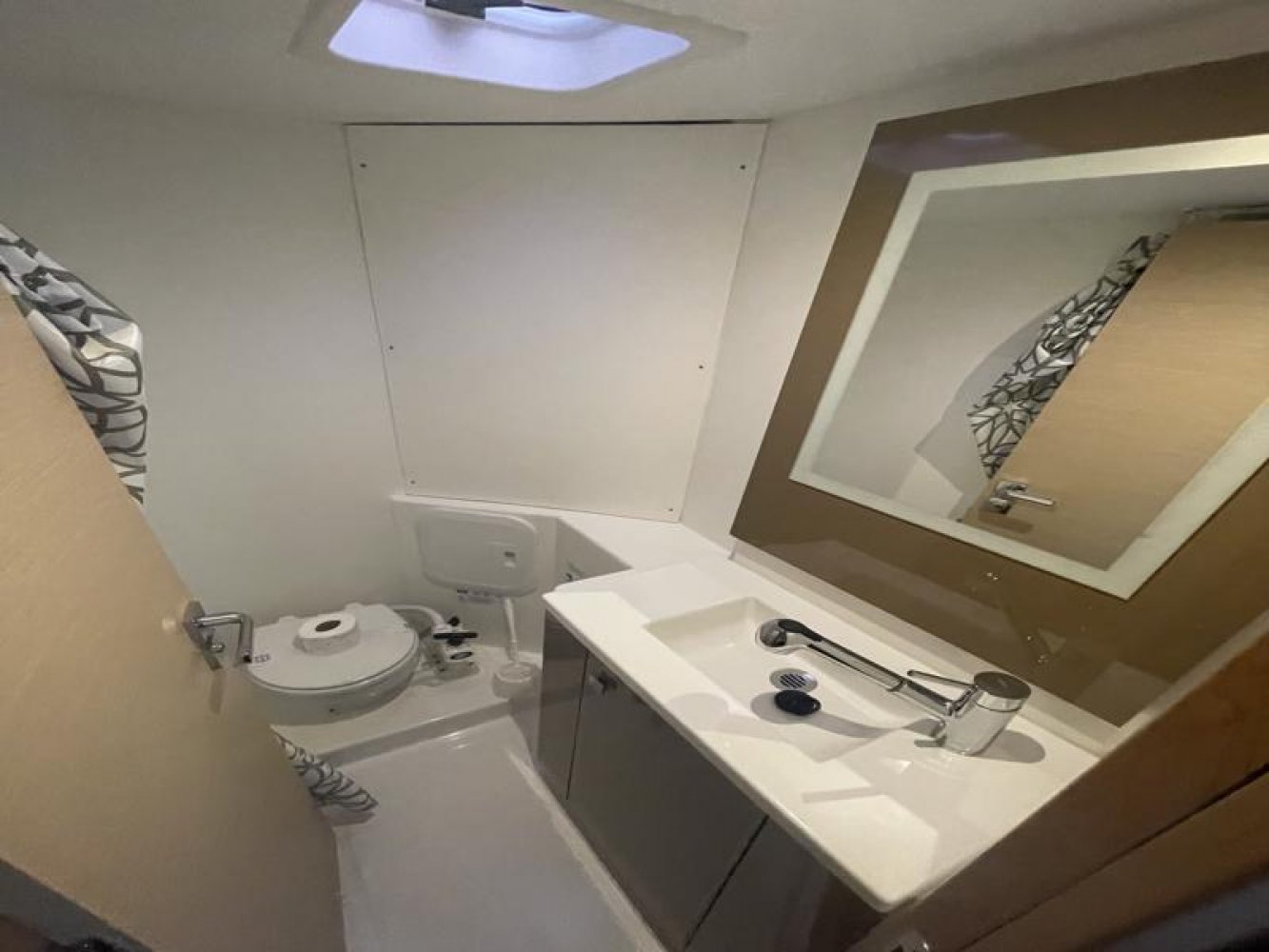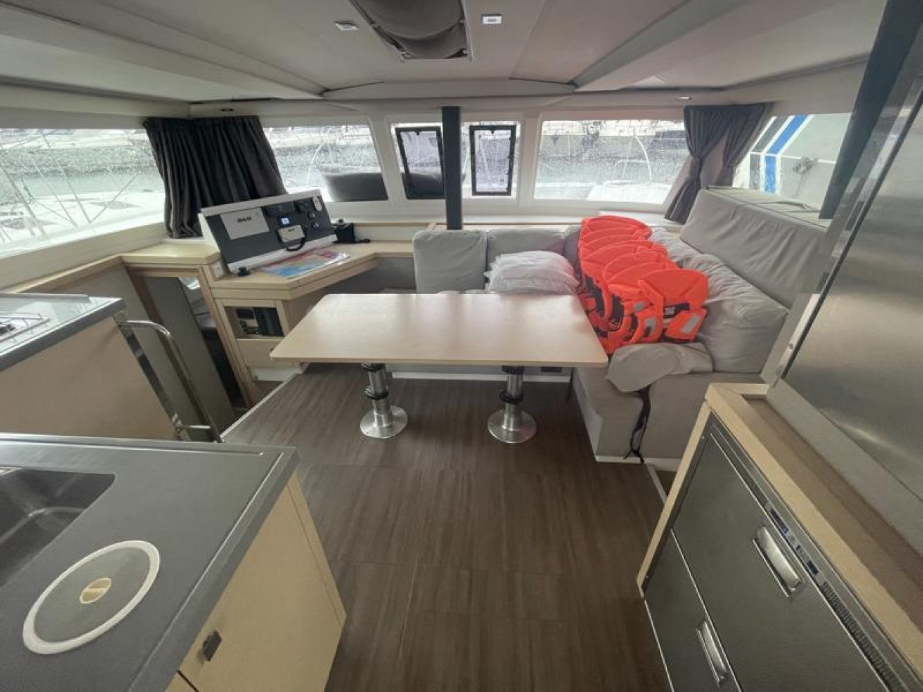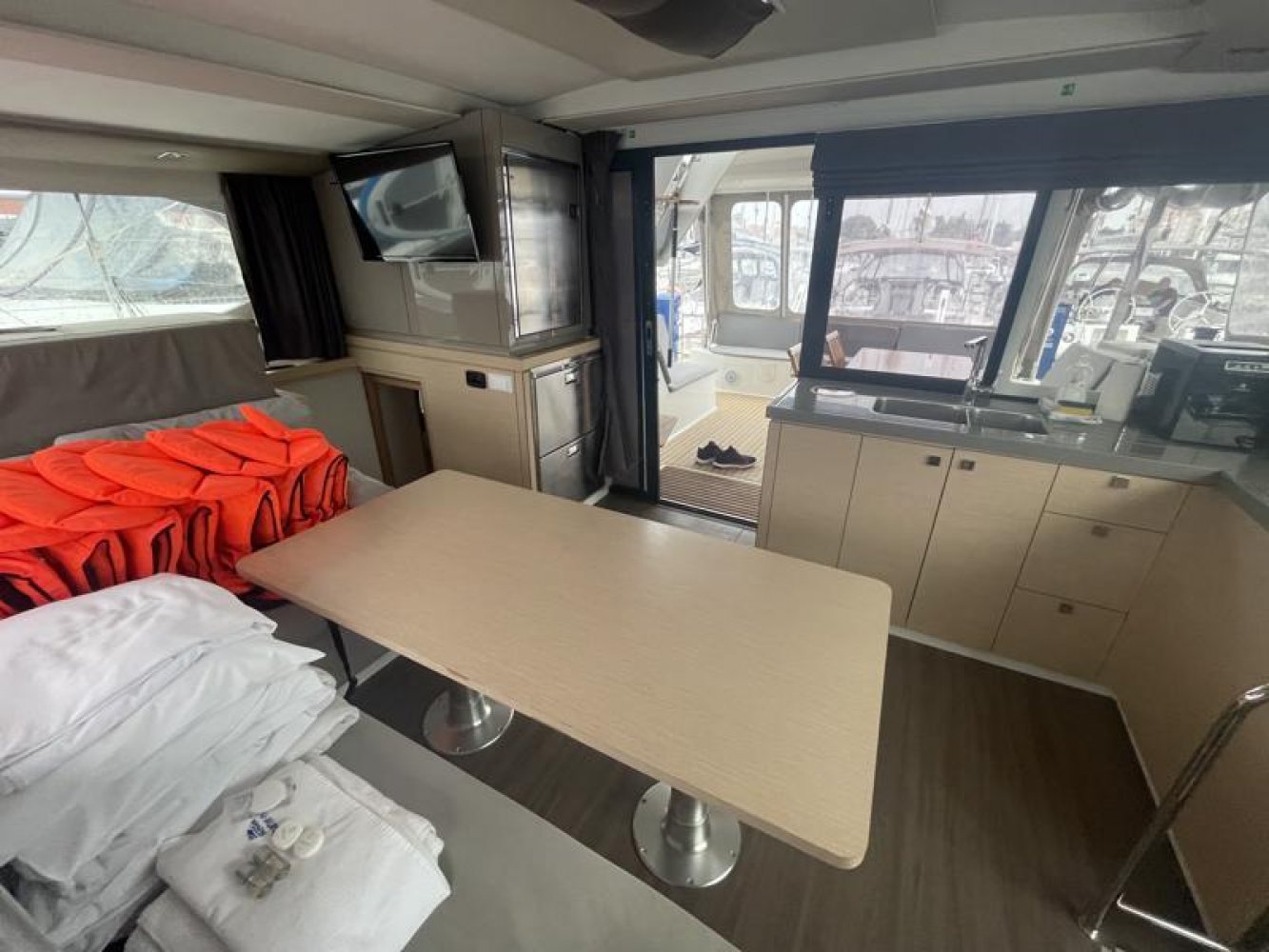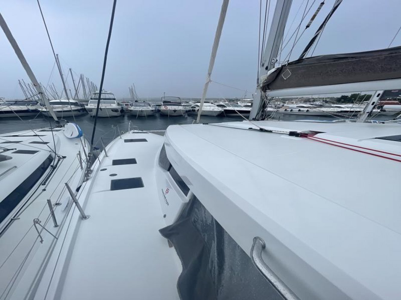 Deze Fountaine Pajot Lucia 40 uit 2017 is een zeer goed onderhouden ex-charter jacht.  Onder haar apparatuur kunnen we benadrukken : generator, airconditioning, webasto verwarming, zonnepanelen, watermaker (2021) en ijsmachine (2021). Ze vaart onder Kroatische vlag.
