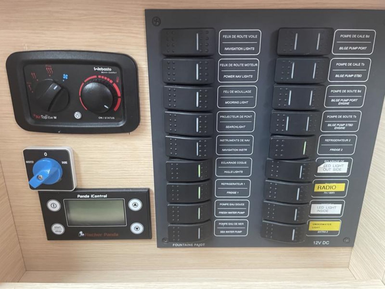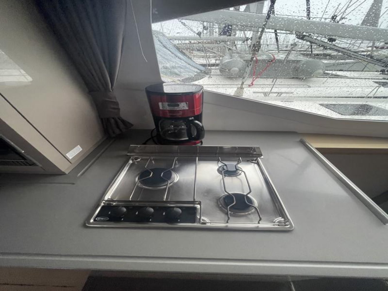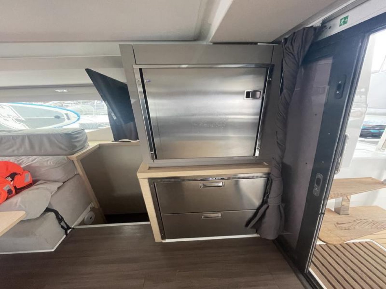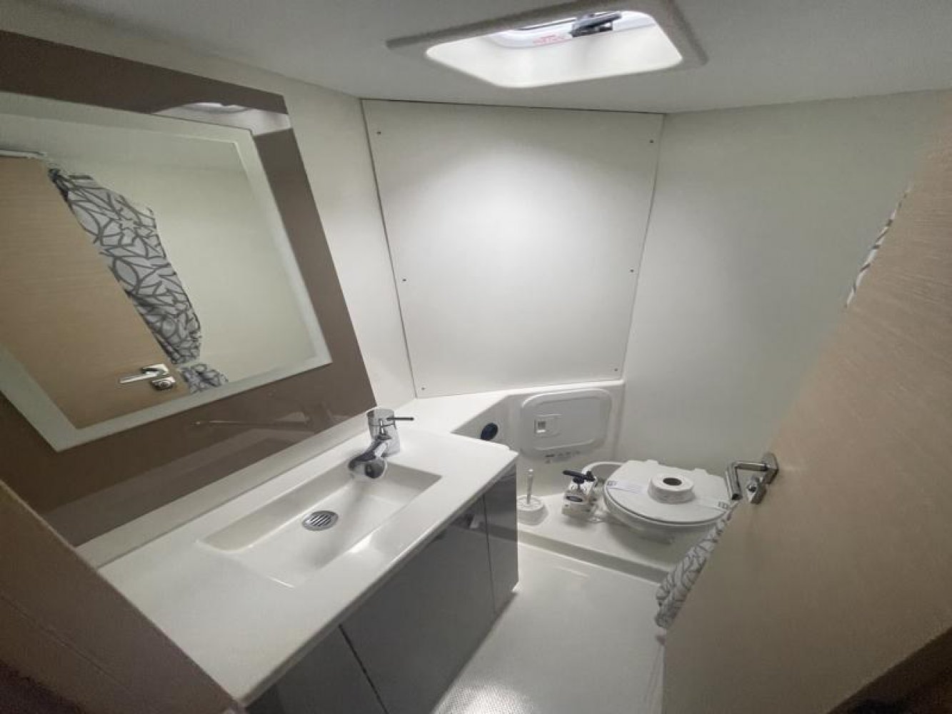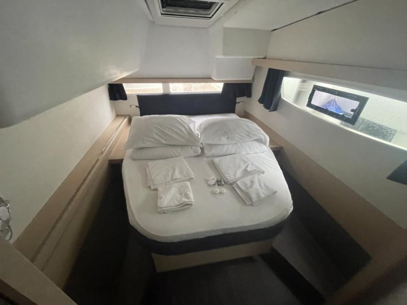 Deze Fountaine Pajot Lucia 40 uit 2017 is een zeer goed onderhouden ex-charter jacht.  Onder haar apparatuur kunnen we benadrukken : generator, airconditioning, webasto verwarming, zonnepanelen, watermaker (2021) en ijsmachine (2021). Ze vaart onder Kroatische vlag.