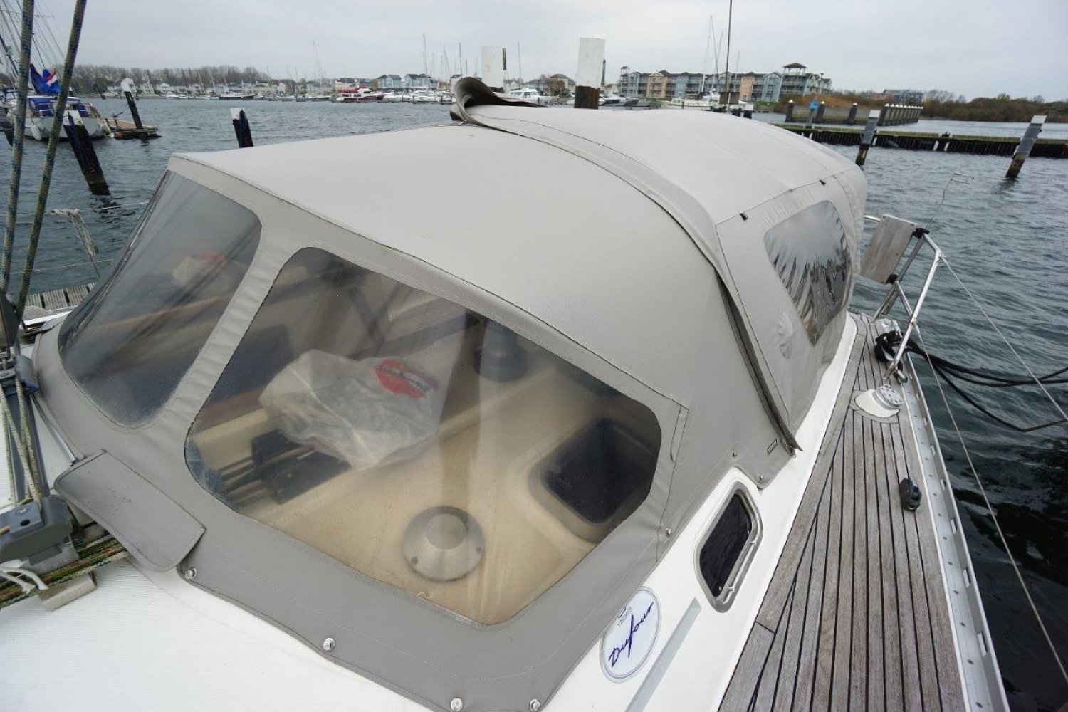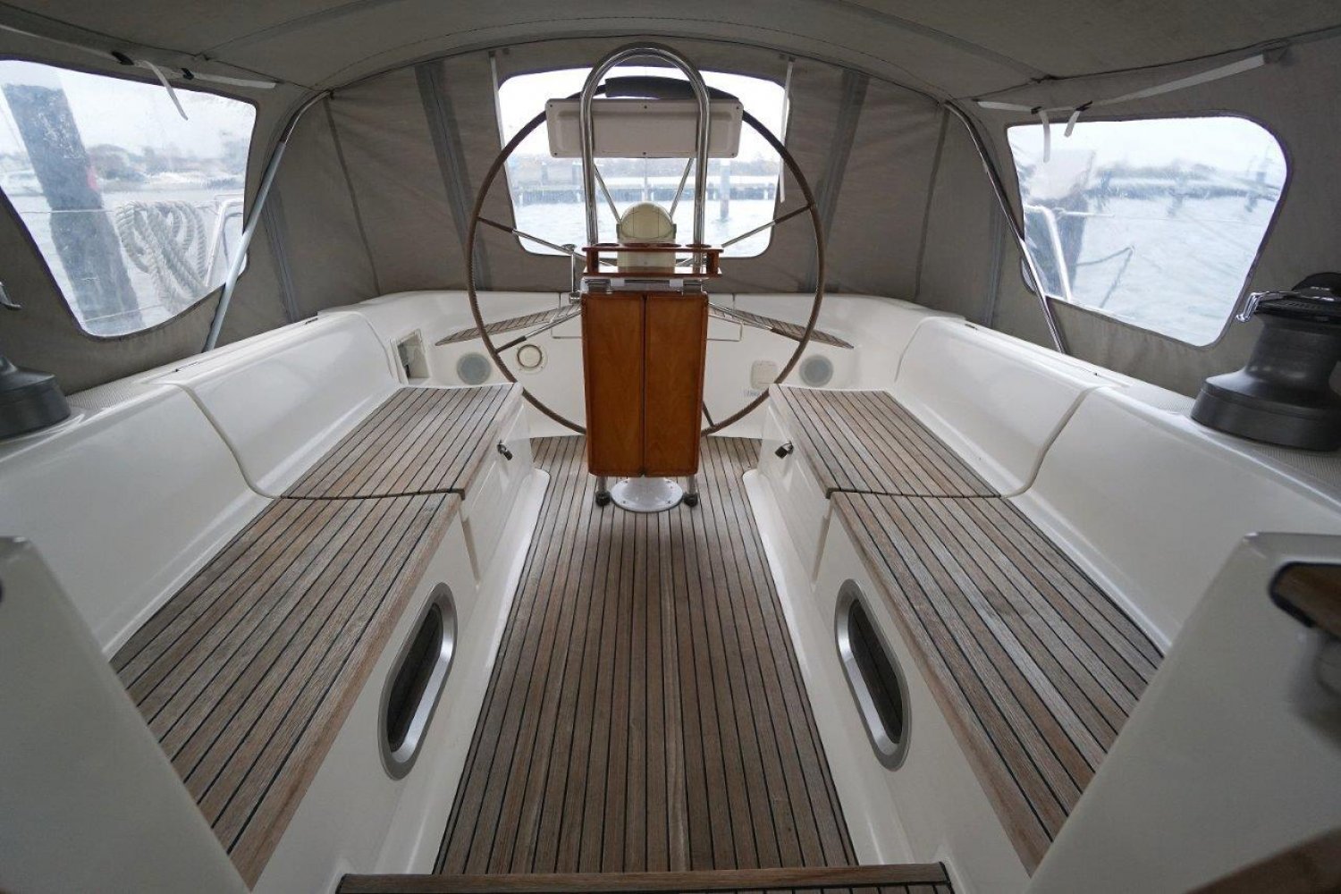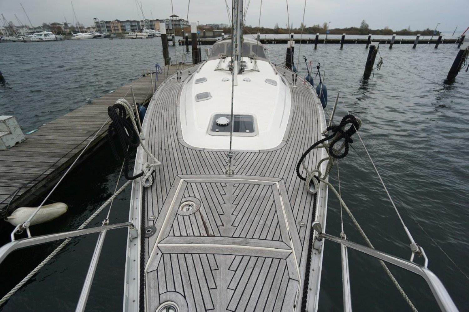 Als u het schip ziet liggen valt meteen op dat dit een serieus schip is met mooie lijnen. Zoals de gehele “Classic” serie van Dufour is dit schip ook hoogwaardig afgewerkt en ziet en zeilt er ook nog echt uit als een zeilschip. Gestrekte slanke lijnen, een lage opbouw, een praktische kuip en een goed begaanbaar dek.