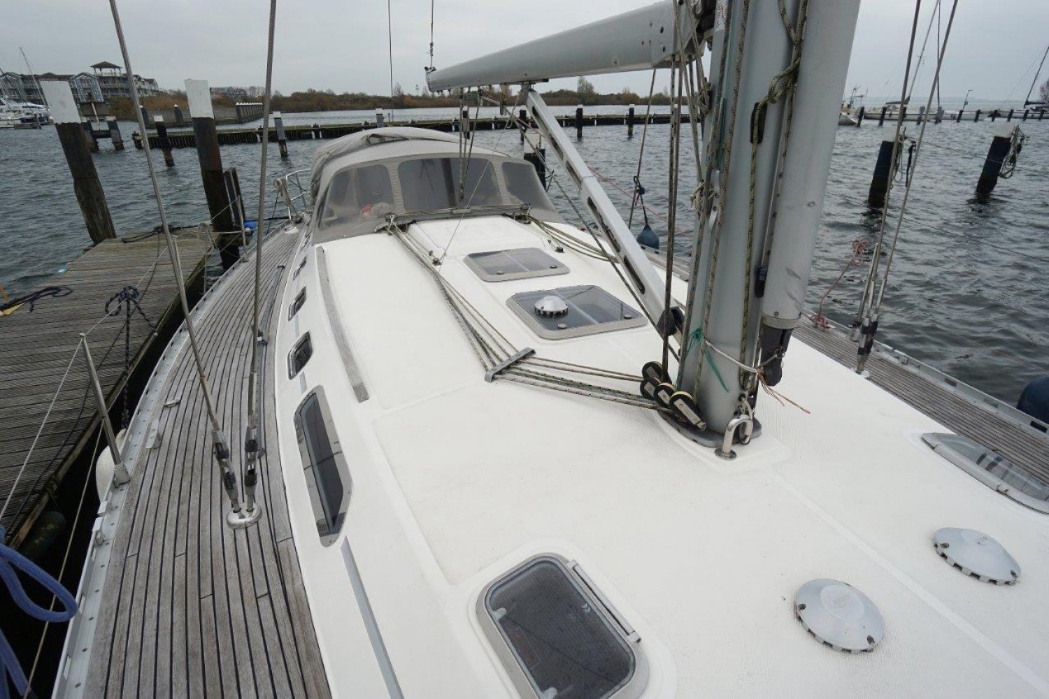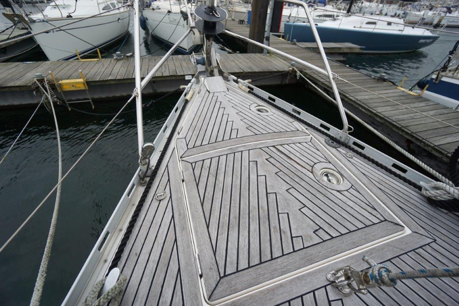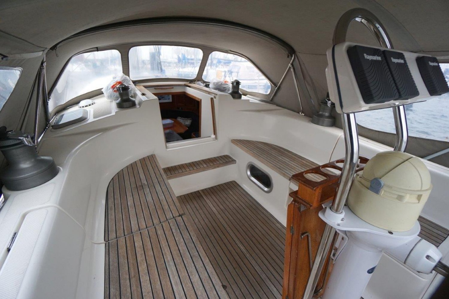 Als u het schip ziet liggen valt meteen op dat dit een serieus schip is met mooie lijnen. Zoals de gehele “Classic” serie van Dufour is dit schip ook hoogwaardig afgewerkt en ziet en zeilt er ook nog echt uit als een zeilschip. Gestrekte slanke lijnen, een lage opbouw, een praktische kuip en een goed begaanbaar dek.