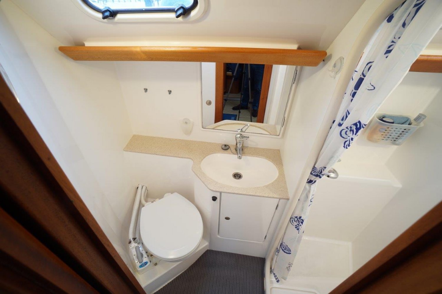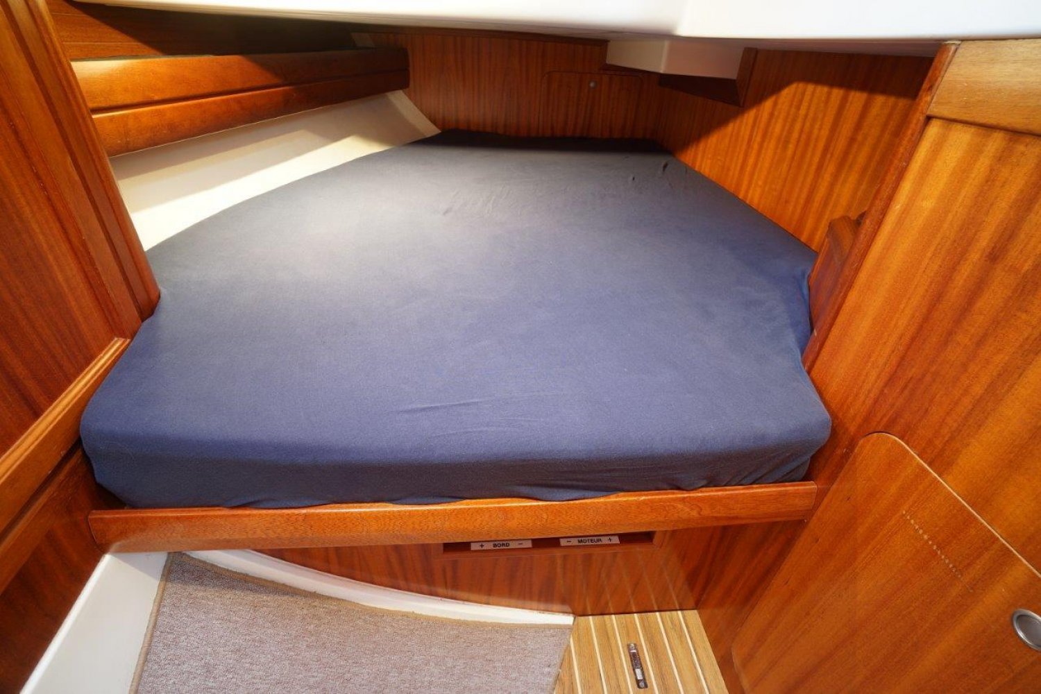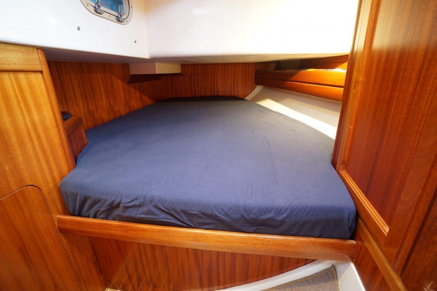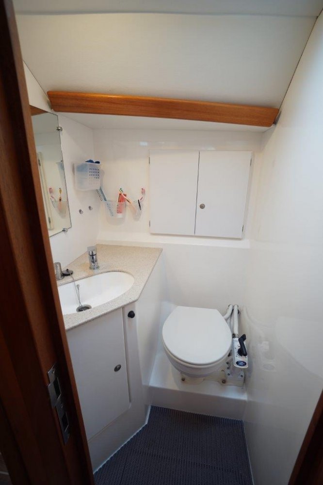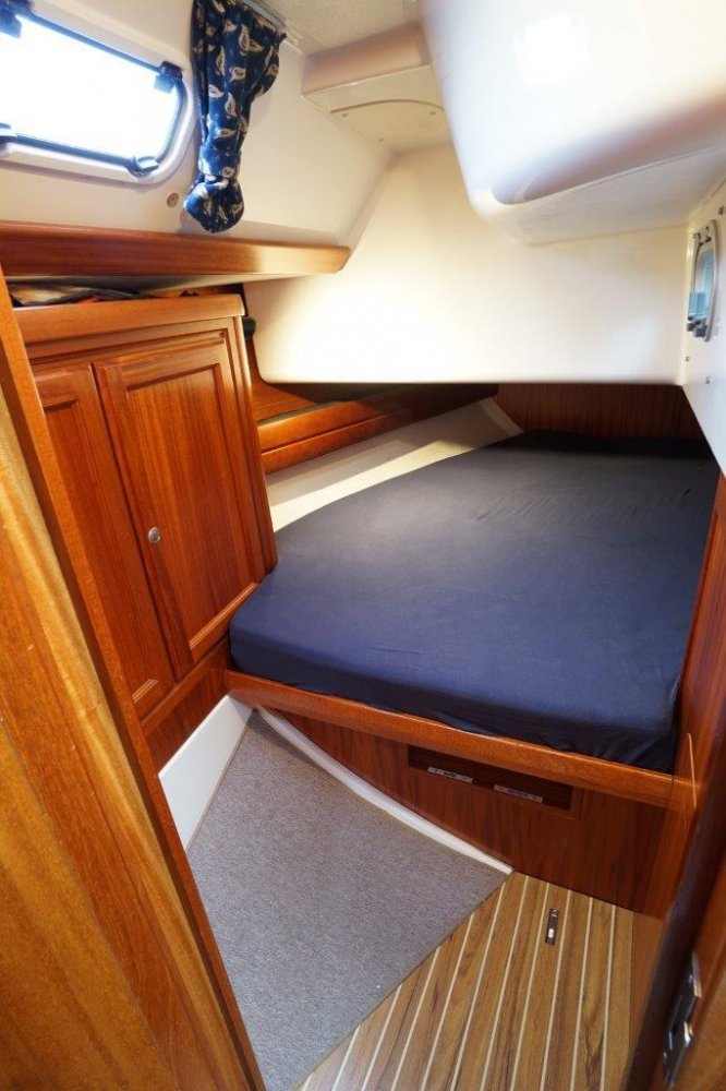 In het achterschip treft u twee ruime hutten aan. Elk voorzien van de nodige bergruimte en twee persoonsbedden. Een stukje naar voren in het schip is aan stuurboord een ruim opgezette kaartentafel. Voorzien van de nodige apparatuur en de bediening van alle boordsystemen. Hier tegenover is aan bakboord de een van de twee natte cellen met onderwatertoilet en een separate douchegelegenheid.