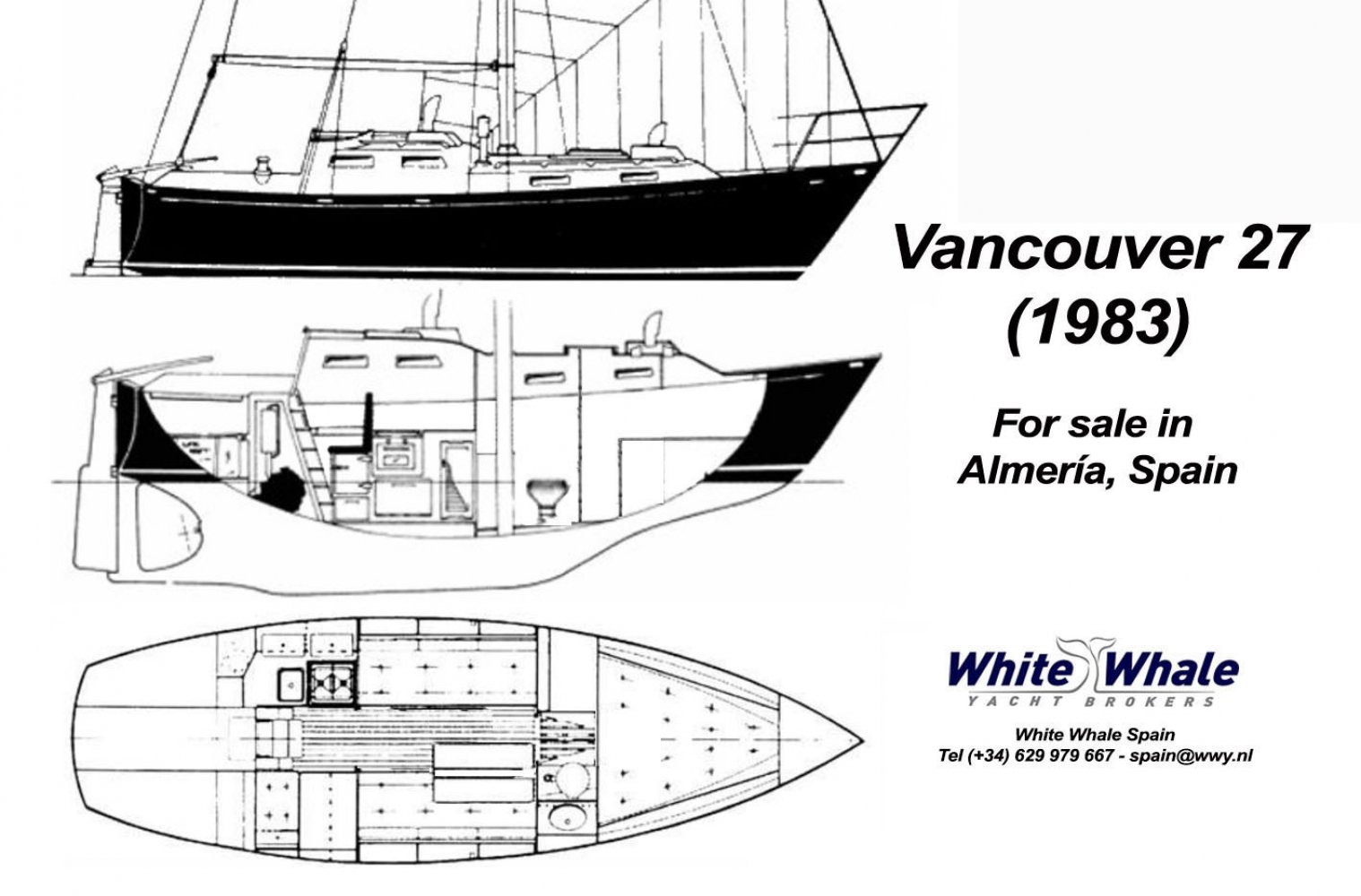 Sailing yacht Vancouver 27 (1983) located in Almería, Spain, equipped for blue water cruising, ready to sail. Extraordinary cruiser, designed by Robert Harris, with excellent contruction quality by Pheon Yachts Ltd in the U.K. The surprising spacious interior with 2 beds of nearly 2M long makes this boat suitable for any sailor. Bukh 20Hp diesel engine in excellent state with only 1.400 engine hours. Lots of extras: windpilot, autopilot, AIS receiver, battery charger, spinnaker, etc. Spanish registered with VAT excent. For all info and viewings contact Frans Bennekers of White Whale Spain Yacht Brokers on tel +34 629 979 667, email [email protected].