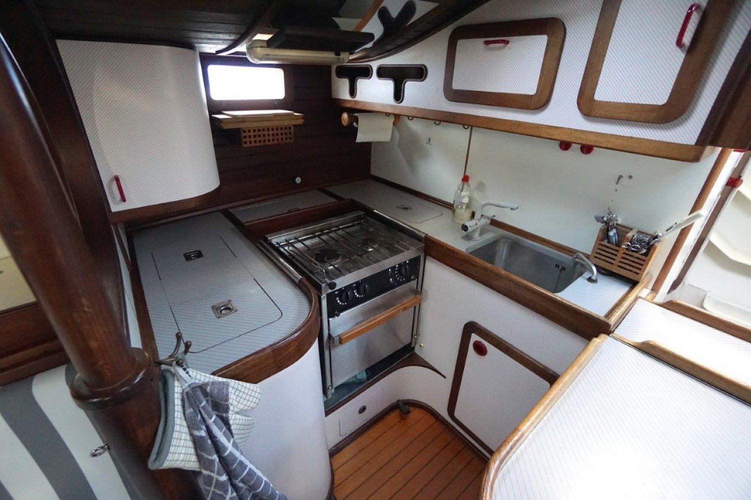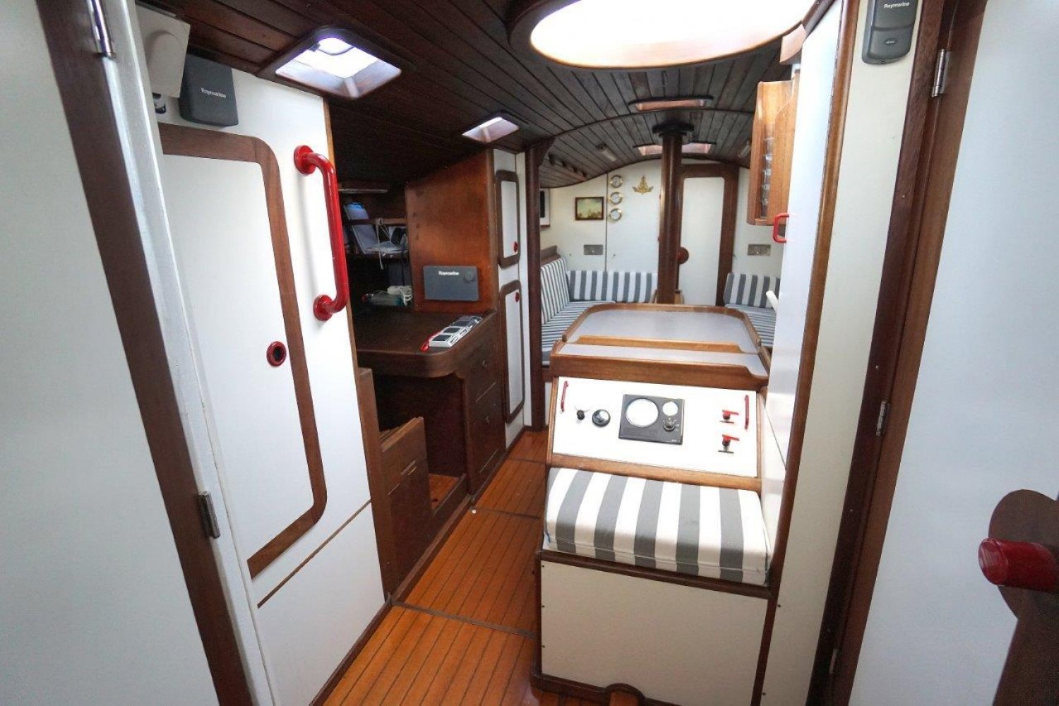 Zodra u aan dek stapt voelt u meteen dat dit een serieus gebouwd schip is. Alles voelt even degelijk en solide aan. Ze heeft een beetje liefde nodig in de vorm van lakwerk maar gezien het feit dat ze volledig van aluminium is gebouwd is dit meer een cosmetisch verhaal dan een technisch probleem. Binnen in het schip voelt ze knus en warm aan. In het achterschip zjin twee tweepersoonshutten te vinden en de natte cel. Verder naar voren in het schip treft u centraal de motorbehuizing aan met aan bakboord een riante kaartentafel. Aan stuurboord is een flink kombuis te vinden met uiteraard warm en koud stromend water, een fornuis, koelkast en de nodige bergruimte. Midscheeps zijn aan weerskanten comfortabele zitbanken met een tafel in het midden. helemaal in het voorschip is de derde tweepersoonshut.
