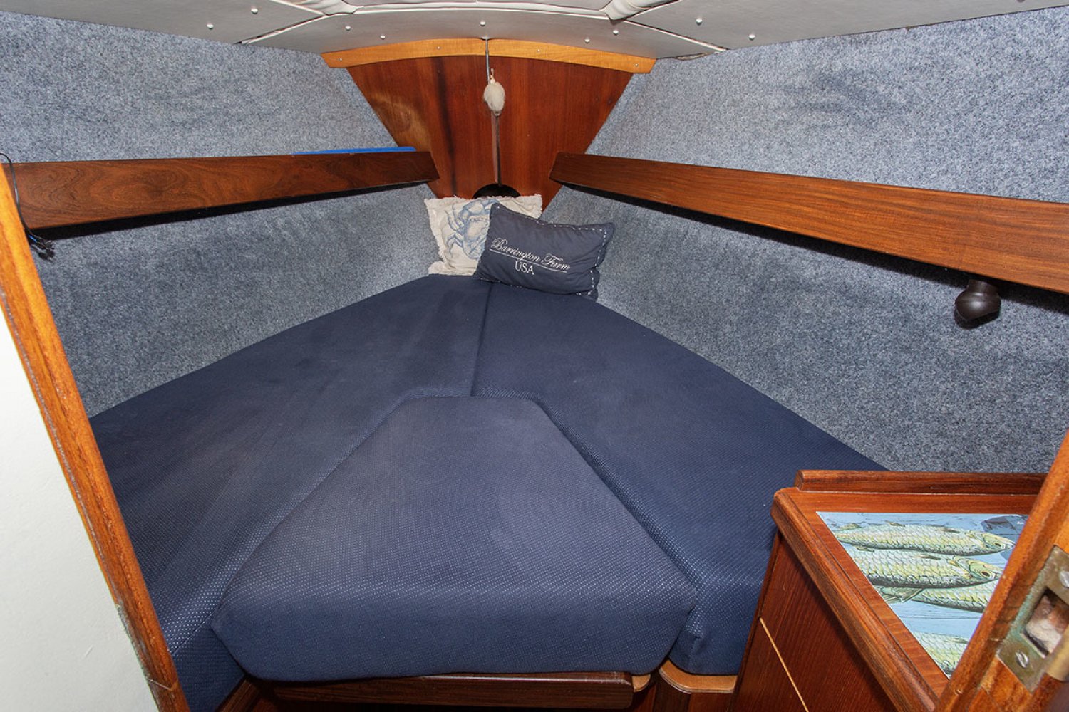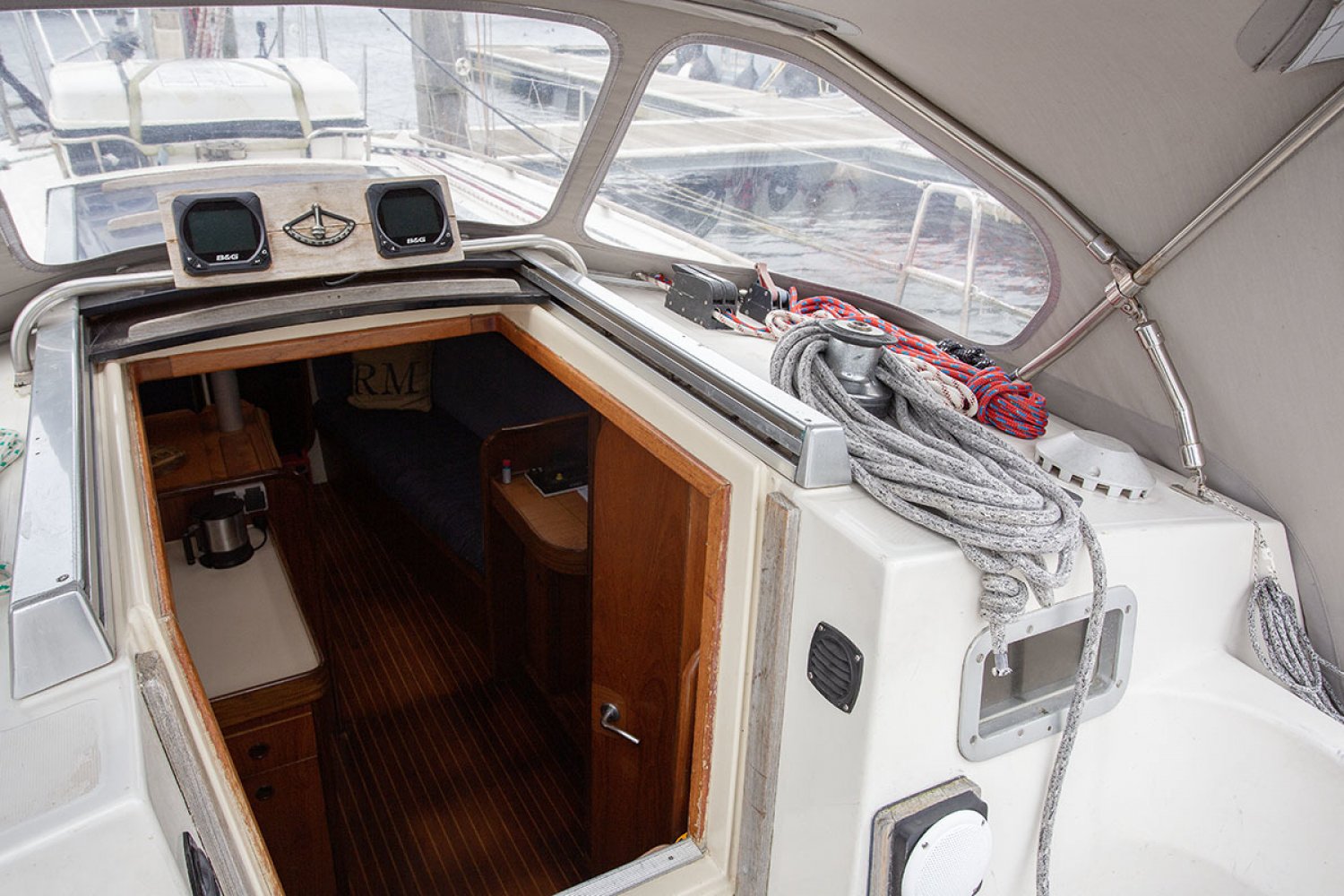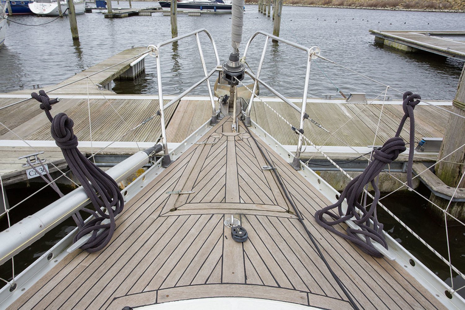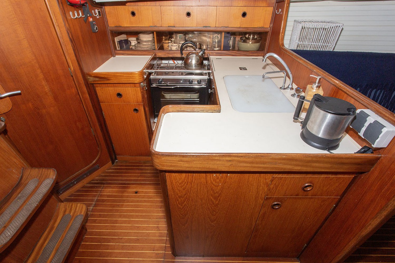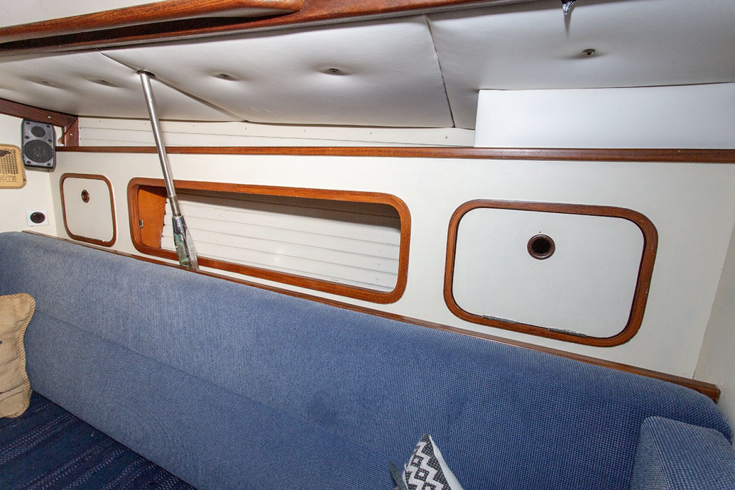 Binnen treft u een praktische en warme salon aan die opvallend ruim aandoet. Aan bakboord is de kombuis en daar tegenover aan stuurboord de kaartentafel. In het voorschip is een twee persoons hut met de nodige opbergruimte. In het achterschip is aan stuurboord een hut met twee loodskooien en aan bakboord een ruime tweepersoons hut. Er is een natte cel met toilet en douche. Kortom, een lekker ruim zeiljacht met overzichtelijke buitenmaten, ideaal voor een fijne vakantie of gewoon een lekker dagje op het water met het hele gezin.