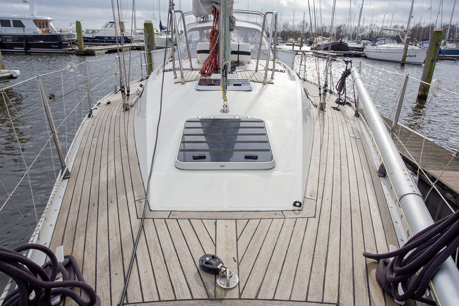 Deze Beneteau First 375 is voorzien van drie hutten en heeft lekker veel leefruimte zowel binnen als buiten. De kuip is ruim en comfortabel met een vaste uitklapbare tafel aan de stuurstand. De gangboorden zijn breed voor een veilige rondgang aan dek. Zowel grootzeil als het voorzeil kunnen vanuit de kuip worden bediend. De boot is bewezen zeewaardig en heeft al eens de oceaan overgestoken. In de afgelopen jaren is flink geïnvesteerd in de boot door de vorige eigenaren Zo is de romp geschilderd met twee componenten verf, is het onderwaterschip van een epoxylaag voorzien en aan de kiel zijn vleugels gelast voor betere prestaties. Verder is er moderne navigatie apparatuur en zijn er prima zeilen.