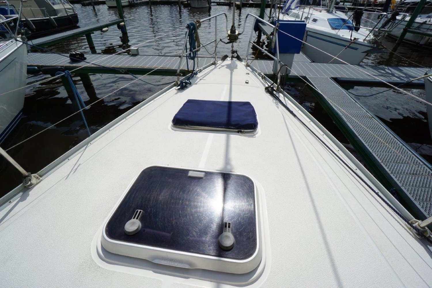 Deze Moody 31S is overigens daarbij ook nog eens de meest recente versie van de 31S en daarmee dus voorzien van de dubbele zalingen op de mast zonder de babystag welke altijd een beetje in de weg stond voor de genua. Daarbij is dit de enkele vin-kiel uitvoering (deze schepen zijn ook gebouwd met kimkielen).