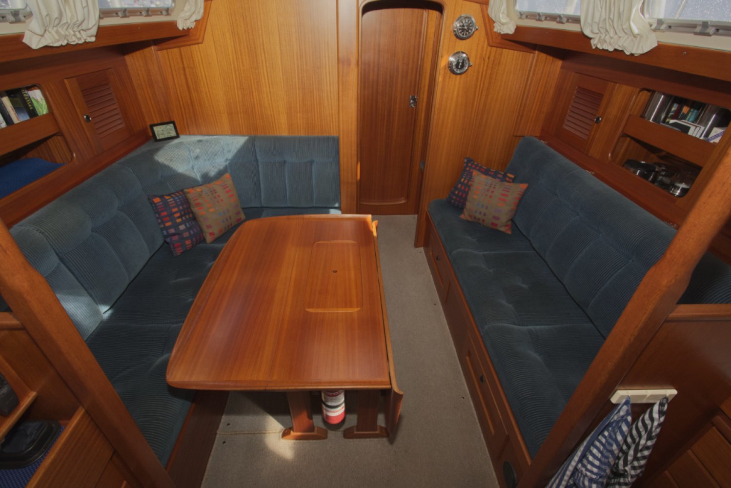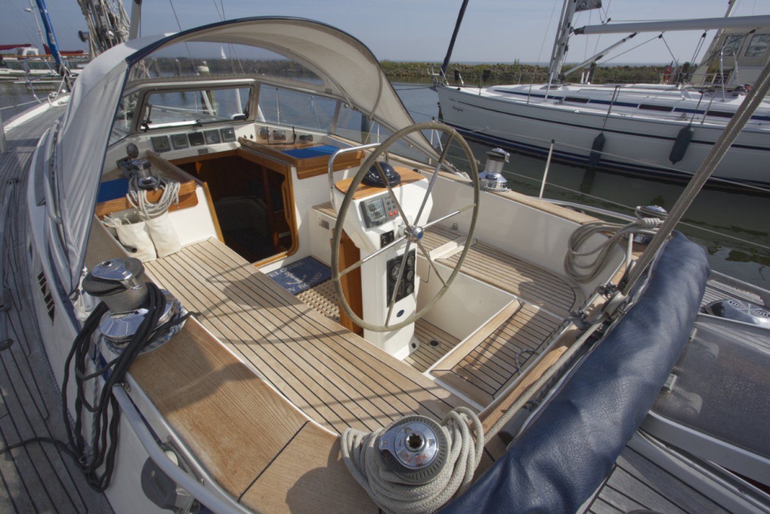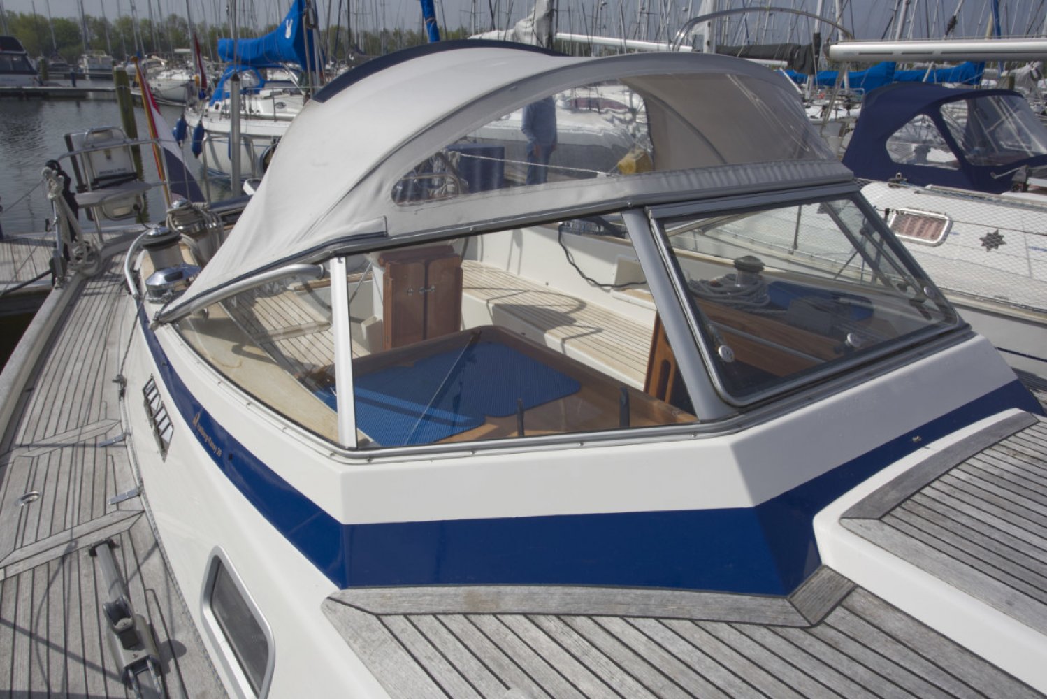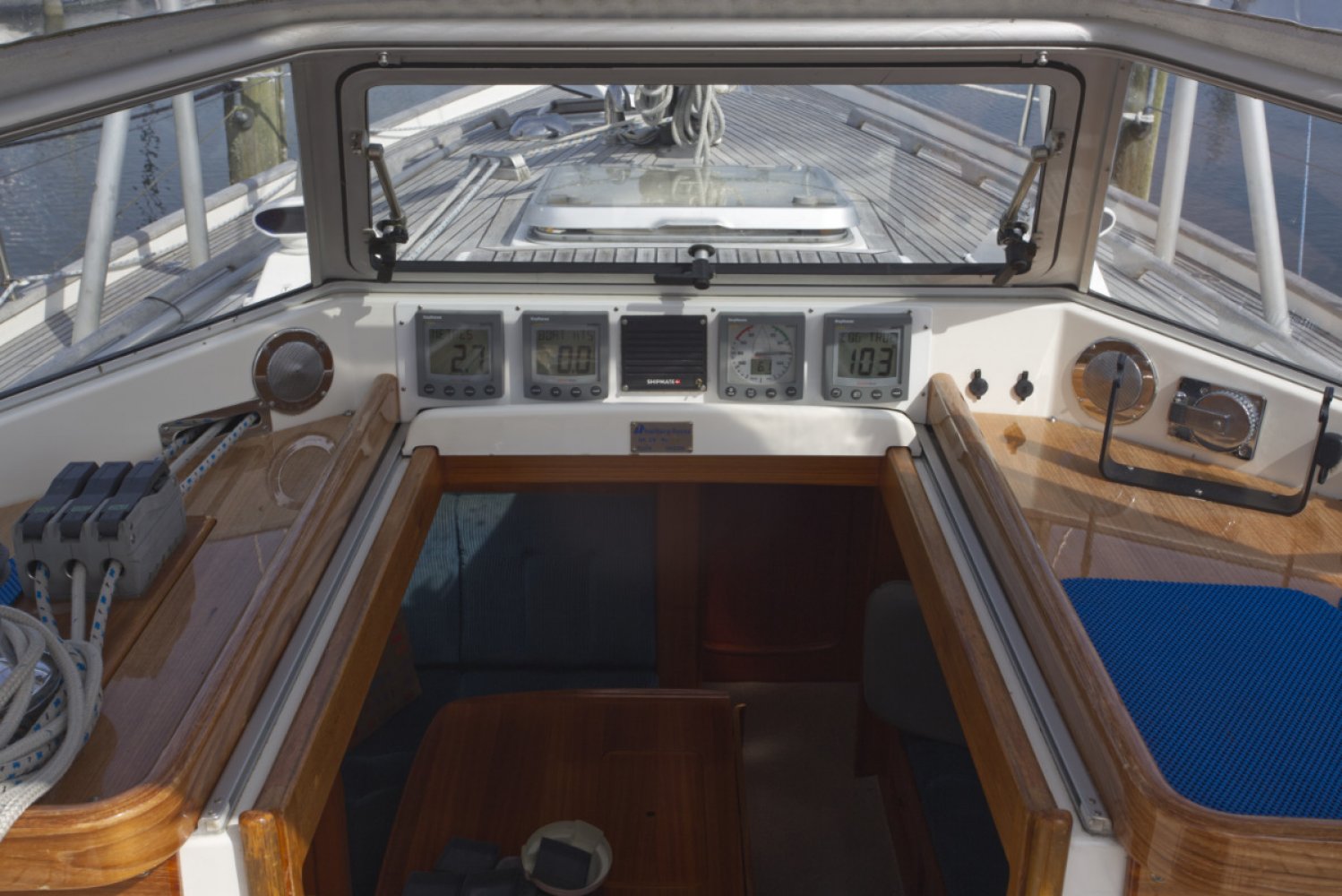 Hallberg-Rassy behoeft zeker geen introductie bij ervaren zeilers, deze jachten zijn van hoge kwaliteit en gebouwd als zeegaand jacht voor de veeleisende zeiler. Deze Hallberg-Rassy 39 die wij namens de eerste eigenaar aanbieden heeft prettige vaareigenschappen en is goed hanteerbaar, ook voor een kleine bemanning. De centre cockpit is diep, overzichtelijk en men zit er goed beschermd achter de deels vaste sprayhood.  Het teakdek ziet er nog goed uit omdat de boot steeds 's winters in een hal is gestald. De dek-layout is goed uitgekiend. De zeilen zijn al een keer vervangen, en deze gaan zeker nog een aantal seizoenen mee. Binnen bevindt zich aan bakboordzijde de navigatietafel en gang naar de eigenaarshut met een royaal 2-persoonsbed en veel bergruimte.  Aan stuurboord vindt u de kombuis met dubbele spoelbak, gasfornuis, oven en koelkast. De salon heeft 2 langsbanken is erg ruim van opzet. In de boeg zit aan bakboordzijde een toilet met douche en een twee persoons V-bed. De Hallberg-Rassy 39 die wij mogen aanbieden is zeer compleet en geheel vaarklaar. Bekijk de volledige advertentie voor uitgebreide informatie. Wilt u meer weten of wilt u een afspraak maken? Neem dan contact op met kantoor White Whale Yachtbrokers Enkhuizen via enkhuizen@wwy.nl of +31(0)228 855 380 voor meer informatie. Bezichtigingen zijn mogelijk van maandag t/m zaterdag, alleen op afspraak.