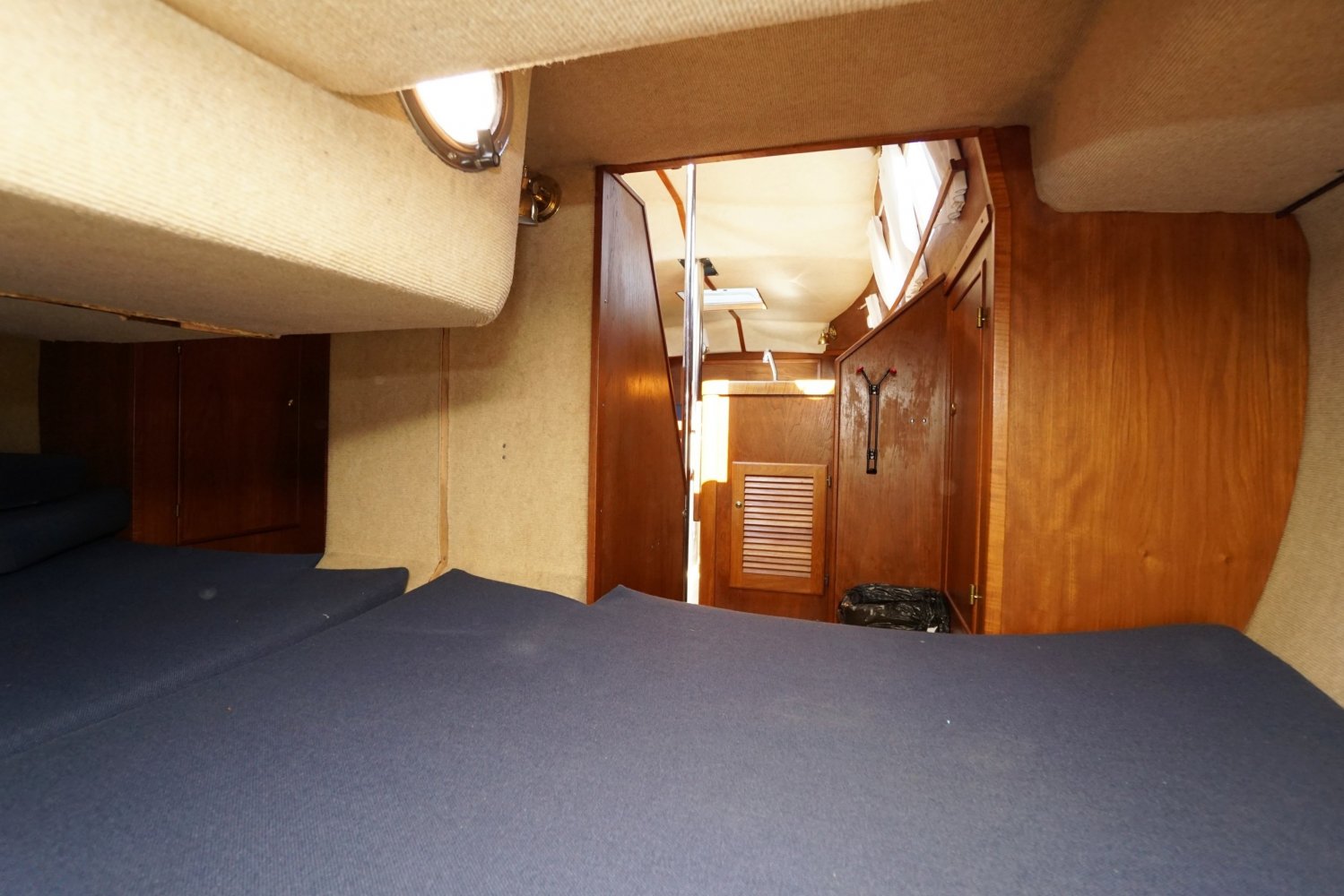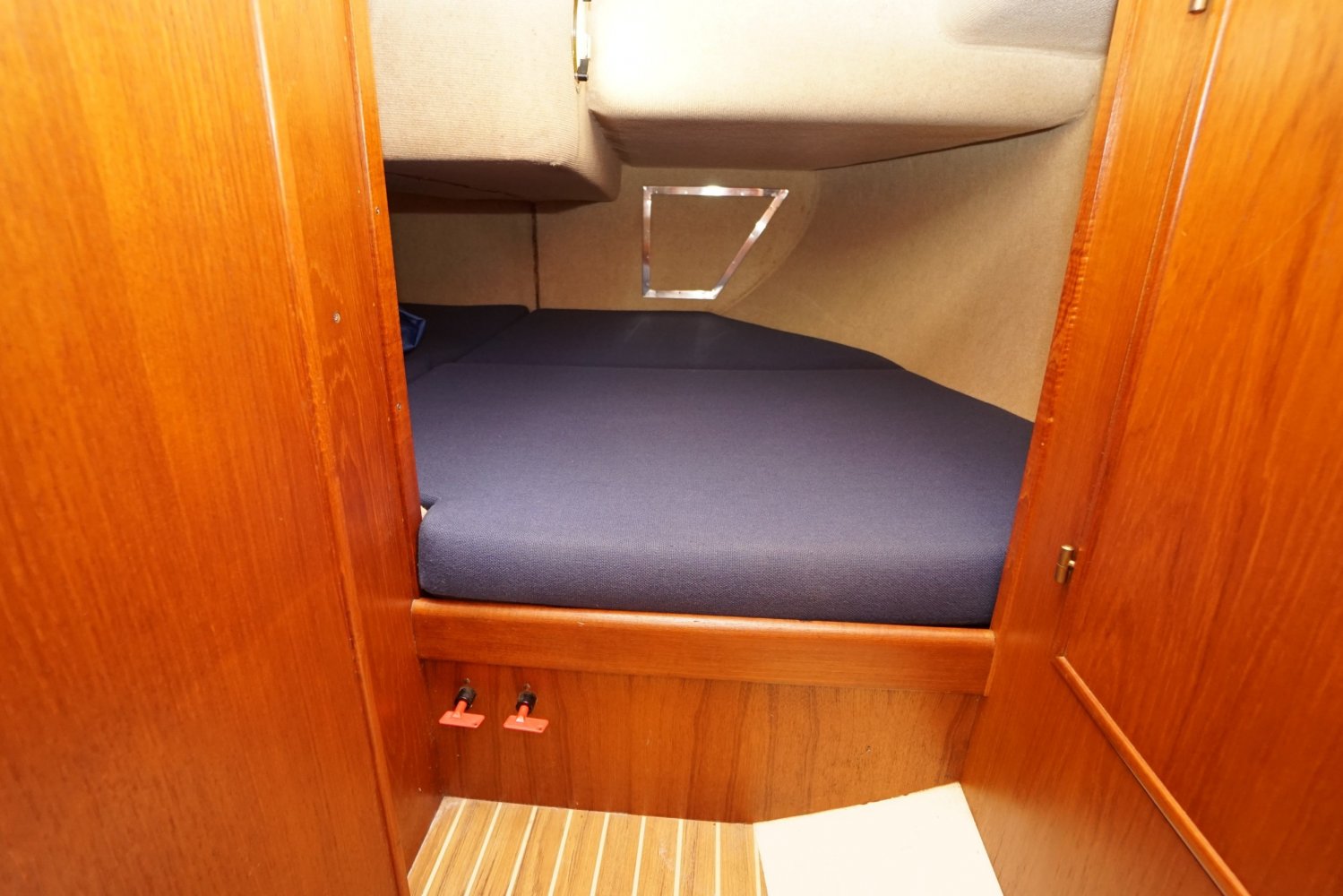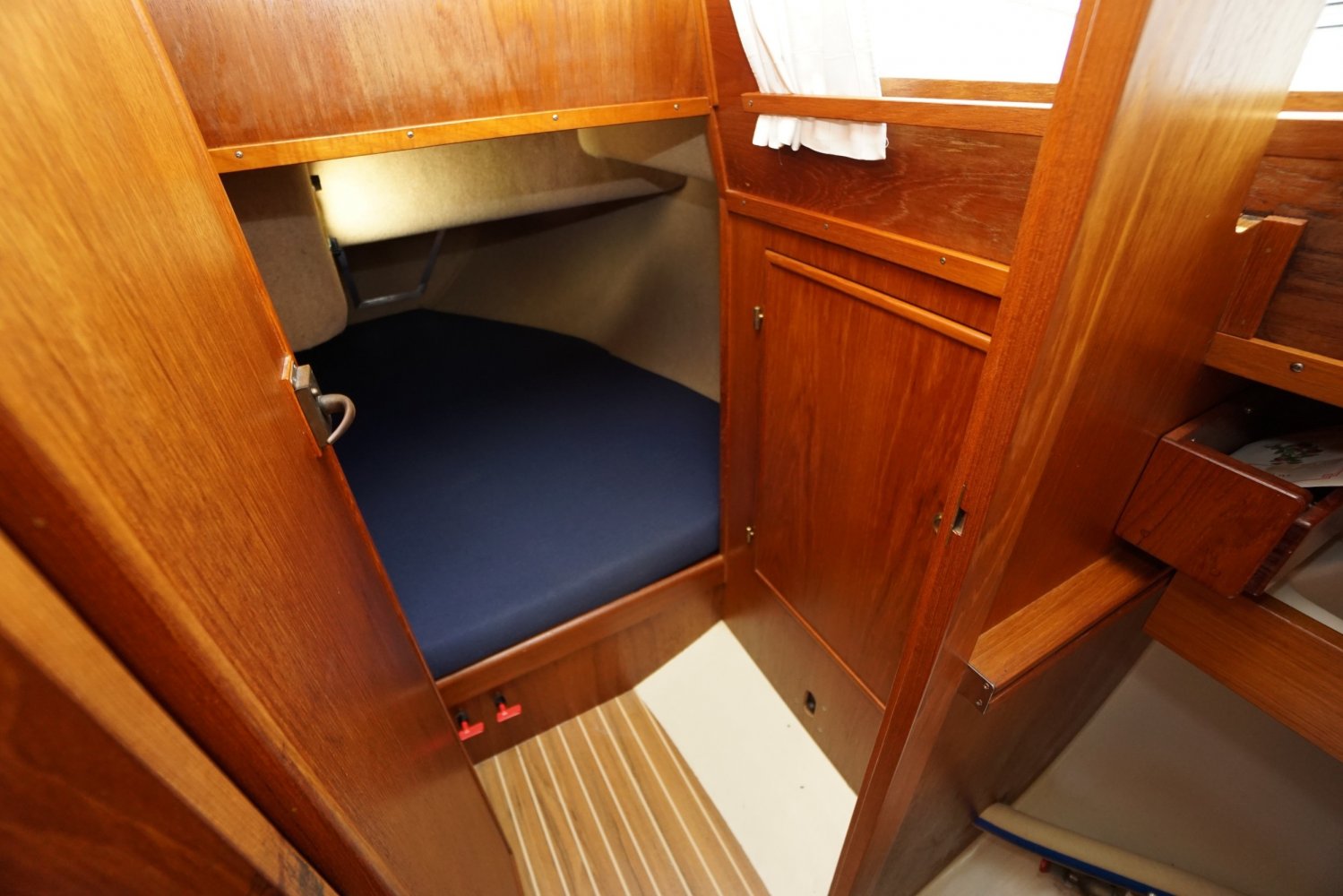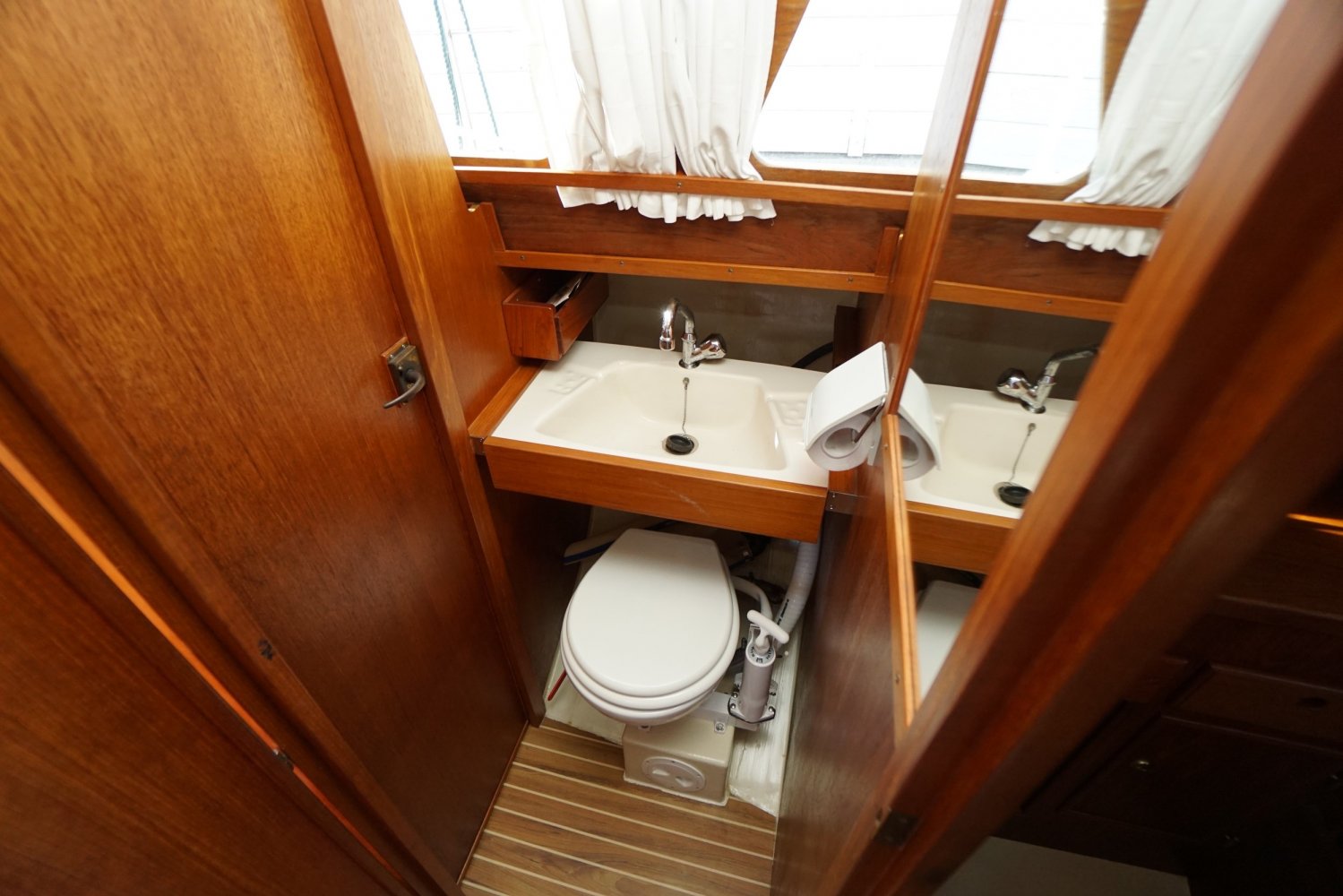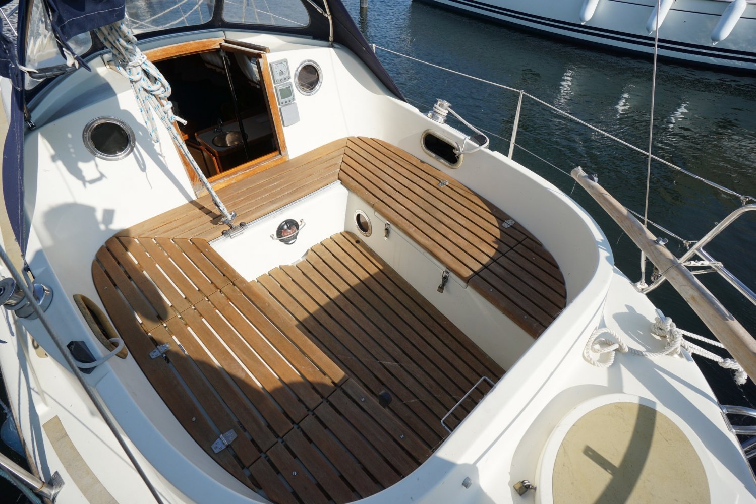 Een gemoedelijke zeiler (S-spant) met geringe diepgang. De kuip en het interieur zijn voor haar lengte verassend ruim, het schip zit vol slimme oplossingen. Zo is de zitting van de kaartentafel wegklapbaar, is de wasbak in de toilet ruimte weg te schuiven en vindt u zowel een doorgang naar de achterhut via de toilet ruimte als via de salon. De ruimte in het achterschip is eventueel weer terug te brengen naar een twee hut variant.