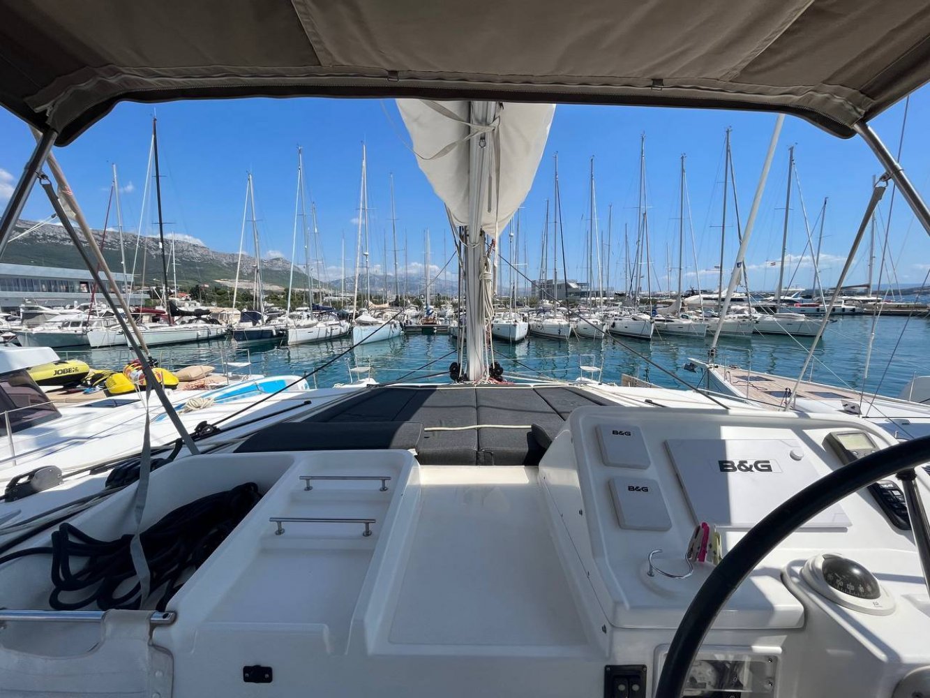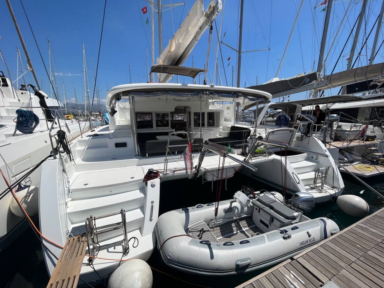 Deze catamaran LAGOON 450F is extreem goed onderhouden van 2016 charterboot. Als je verlangt naar een droomvakantie op een prestigieuze catamaran, dan is er geen betere boot dan deze Lagon 450F! Het is volledig uitgerust met alle extra's zoals generator, airconditioning, magnetron, vaatwasser, 3 koelkasten, NIEUWE tender HIGHFIELD alu 3,6m CC + 20HP en nog veel meer. Het is geschikt voor 8 personen, in alle comfort. Het heeft 4 WC / douches, waardoor u de privacy die u wilt.Ze vaart onder Kroatische vlag. Alle foto's tonen de werkelijke staat.