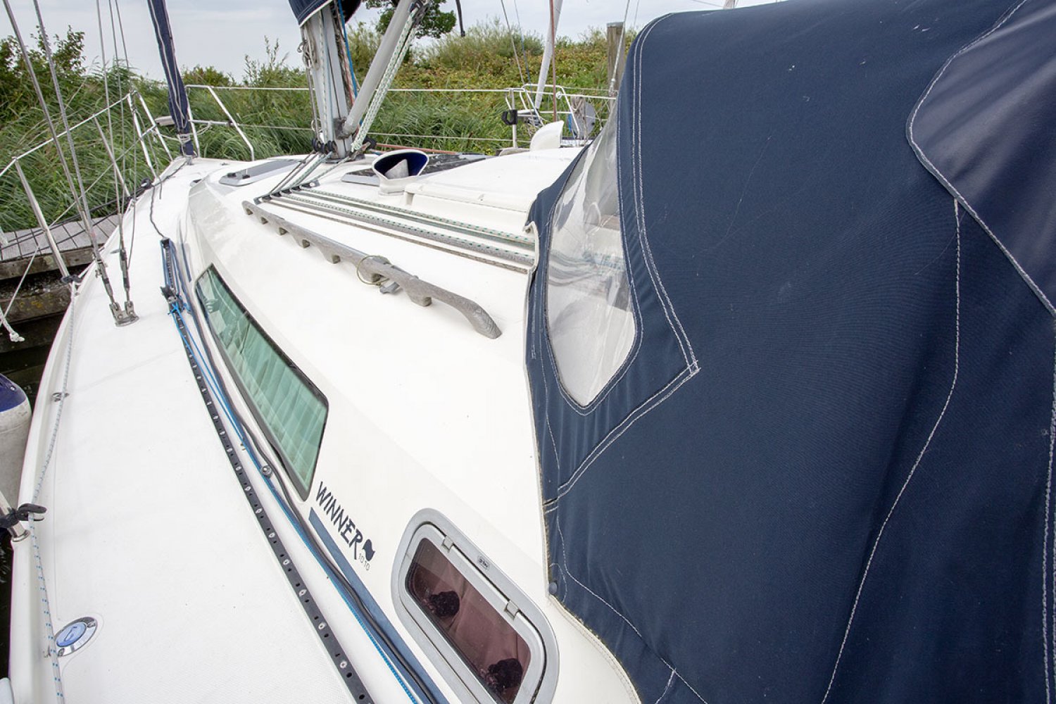 De Nederlandse Winner werf geniet al jaren lang een goede reputatie onder veeleisende zeilers. De vaareigenschappen van hun jachten zijn zeer goed en de Winner 10.10 die wij aanbieden namens de 1e eigenaar is geen uitzondering. Niet alleen vaart de boot snel en voorspelbaar, ook het zeegedrag is prettig. De kuip is lekker ruim doordat de boot is voorzien van een wegklapbare helmstok. Alle dekbeslag is van hoge kwaliteit en uitgekiend geplaatst, zo zijn alle lijnen vanuit de kuip te bedienen. Het interieur van licht eiken is ruim en praktisch. Bij binnenkomst is links de kombuis met spoelbak, kookstel met geïntegreerde oven, koelkast en voldoende bergruimte. Rechts is de navigatie hoek met alle benodigde apparatuur. Midscheeps is de zithoek met twee banken en grote uitklapbare tafel in het midden. Zowel in het voor- als het achterschip is een ruime tweepersoons hut, in de salon kunnen nog 2 extra slaapplaatsen worden gecreëerd. Voor wie een goed varend kwaliteitsjacht zoekt is deze Winner 10.10 een absolute aanrader. Wij nodigen u van harte uit voor een bezichtiging in Lelystad. Bekijk de volledige advertentie voor uitgebreide informatie. Wilt u meer weten of wilt u een afspraak maken? Neem dan contact op met kantoor White Whale Yachtbrokers Enkhuizen via [email protected] of +31(0)228 855 380 voor meer informatie. Bezichtigingen zijn mogelijk van maandag t/m zaterdag, alleen op afspraak.