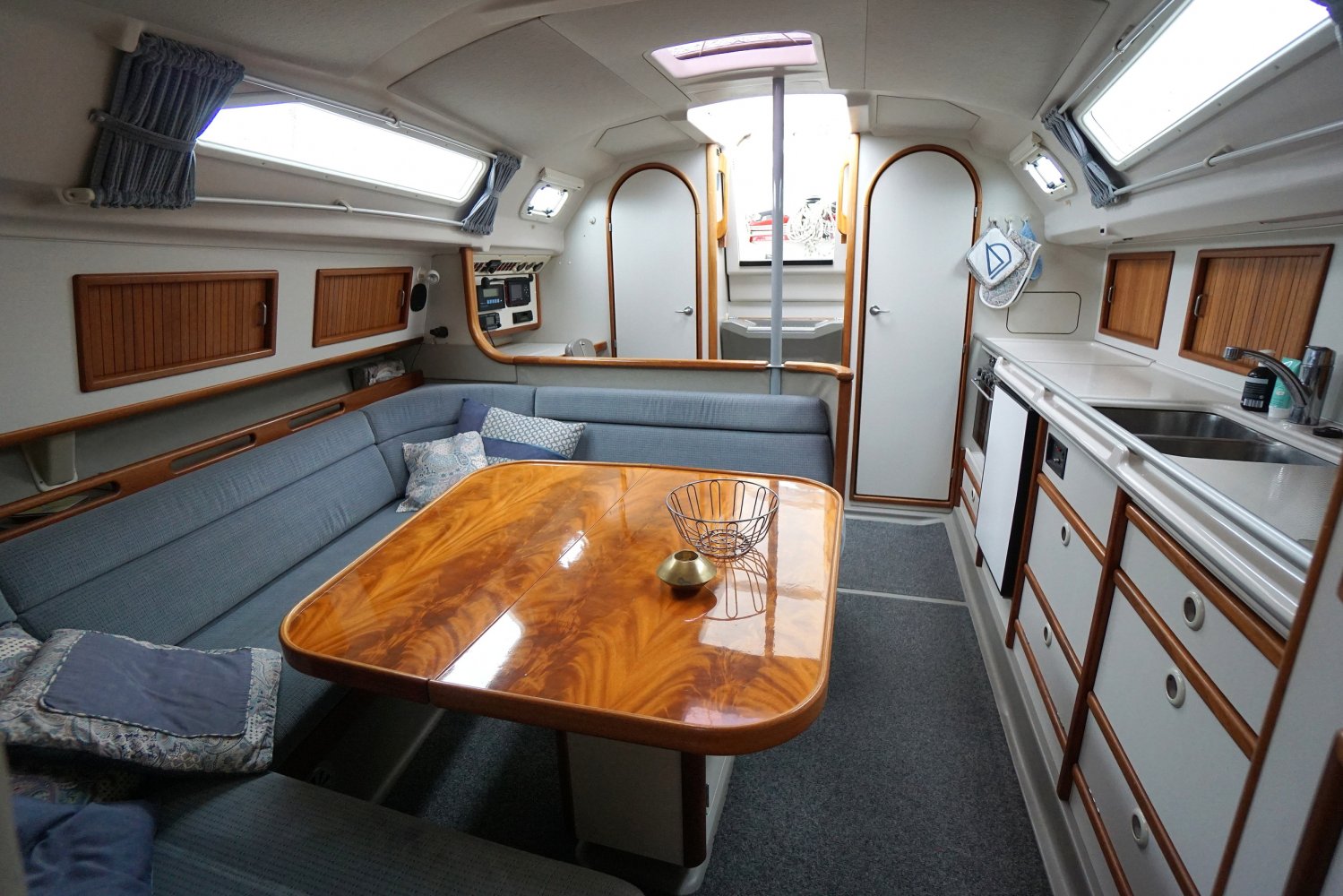 Binnen in het schip wordt u ontvangen in een ruim en licht interieur waar warmte en comfort samenkomen. De slimme lay-out biedt voldoende ruimte om te ontspannen en te socializen, terwijl de praktische voorzieningen zorgen voor een comfortabel verblijf aan boord.