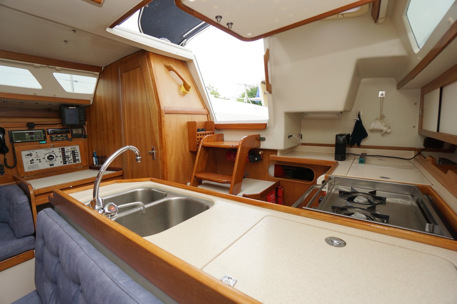 De kuip is ruim en biedt meer dan genoeg ruimte aan alle opvarenden. De gangboorden zijn breed en door de plaatsing van de verstaging makkelijk te belopen. Binnen in het schip treft u bovengemiddeld veel leefruimte aan voor een 36-voeter. De salon is licht, ruim en gezellig. In het achtership treft u de eerste dubbele hut aan,  er is een enorm bed in de breedte van het schip geplaatst. Tevens zijn er voldoende ventilatie mogelijkheden. In de piek van het schip treft u de tweede dubbele hut aan met aangrenzend de natte cel. Deze natte cel is vanaf twee zijden te bereiken, handig om wat privacy te bewaren.
