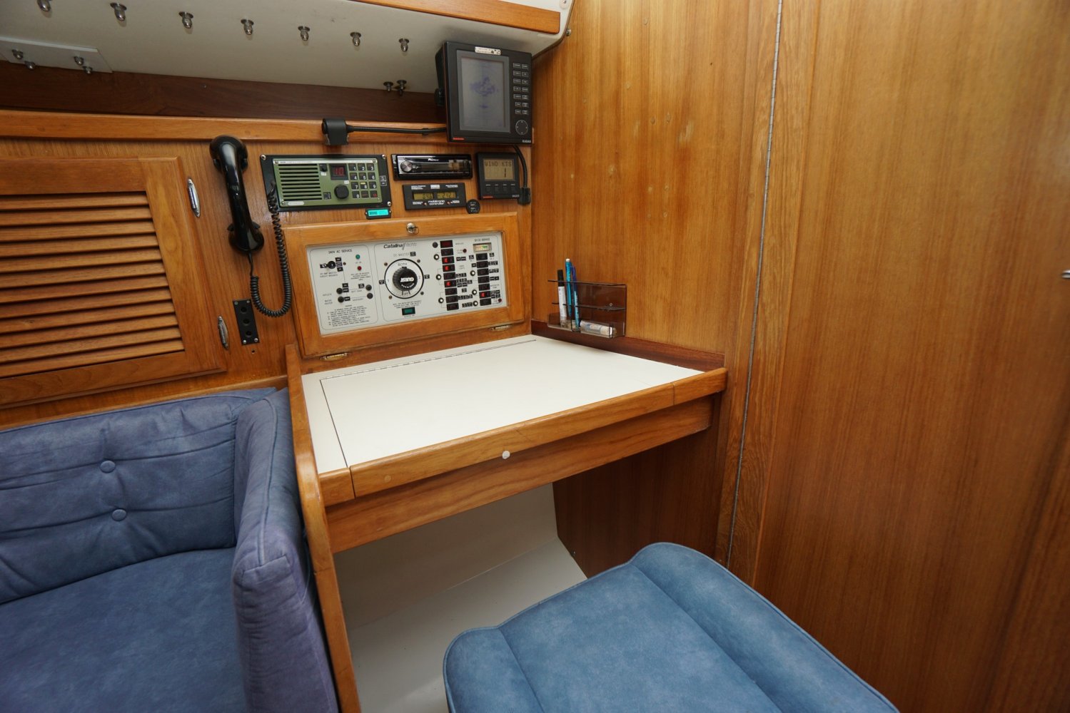De Catalina 36 kenmerkt zich door haar ruime en praktische indeling. Deze 36 is voorzien van een vleugelkiel, de diepgang is gering. Verder is ze voorzien van een autopilot, boegschroef, elektrische ankerlier, boiler, verwarming en ga zo maar door!