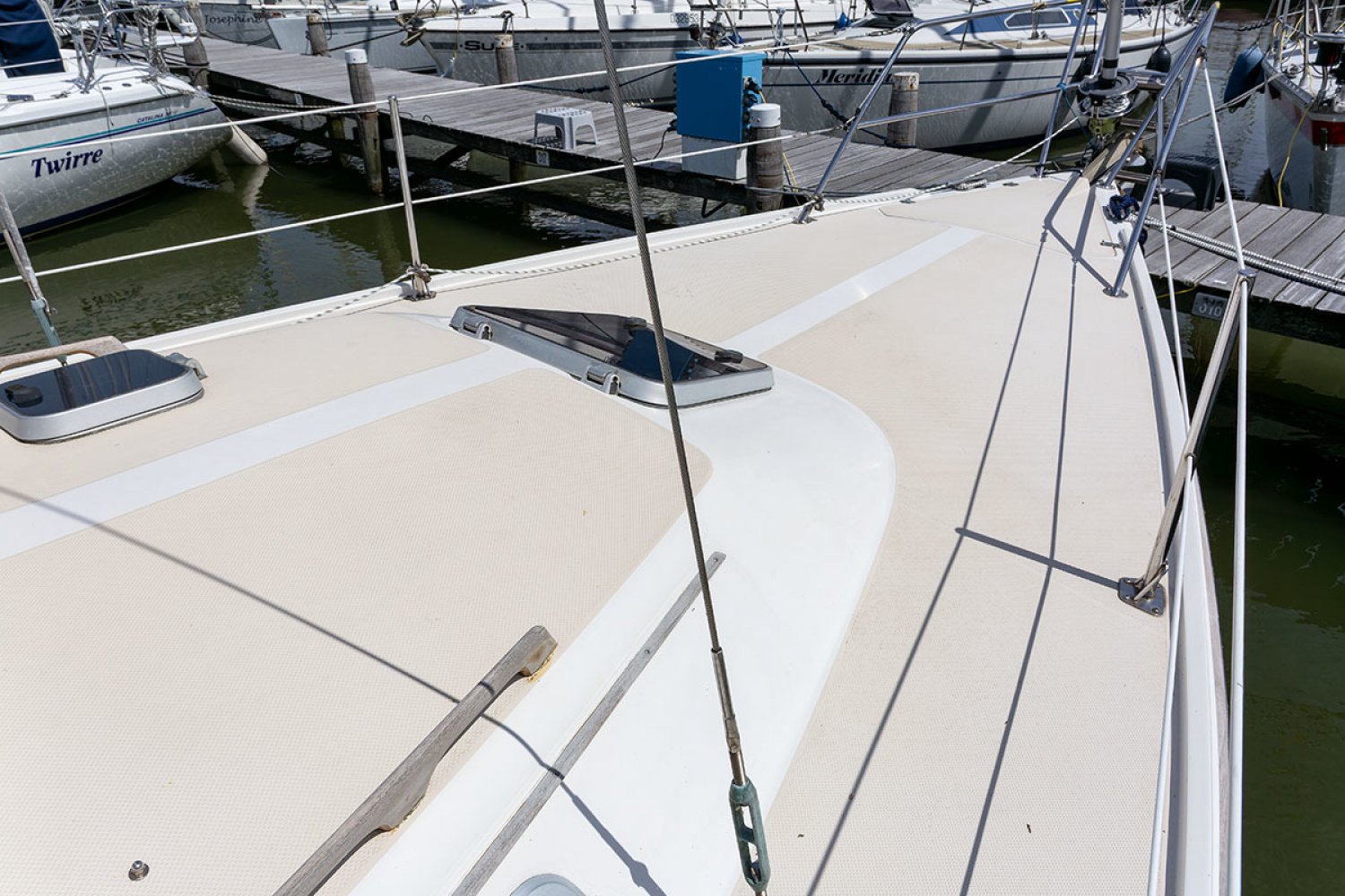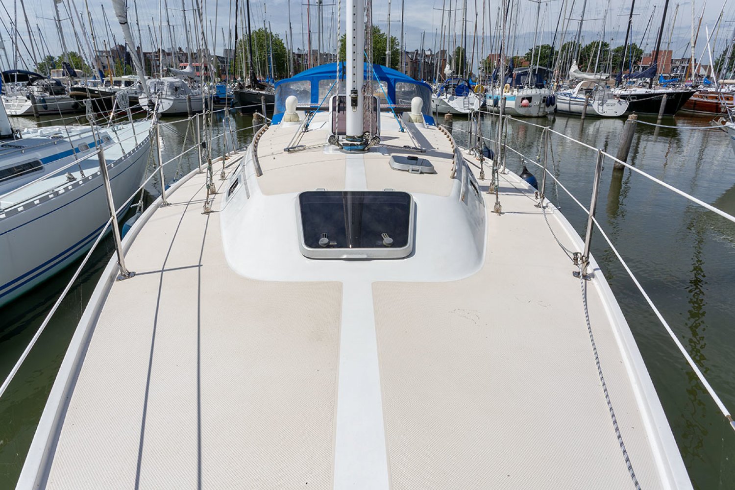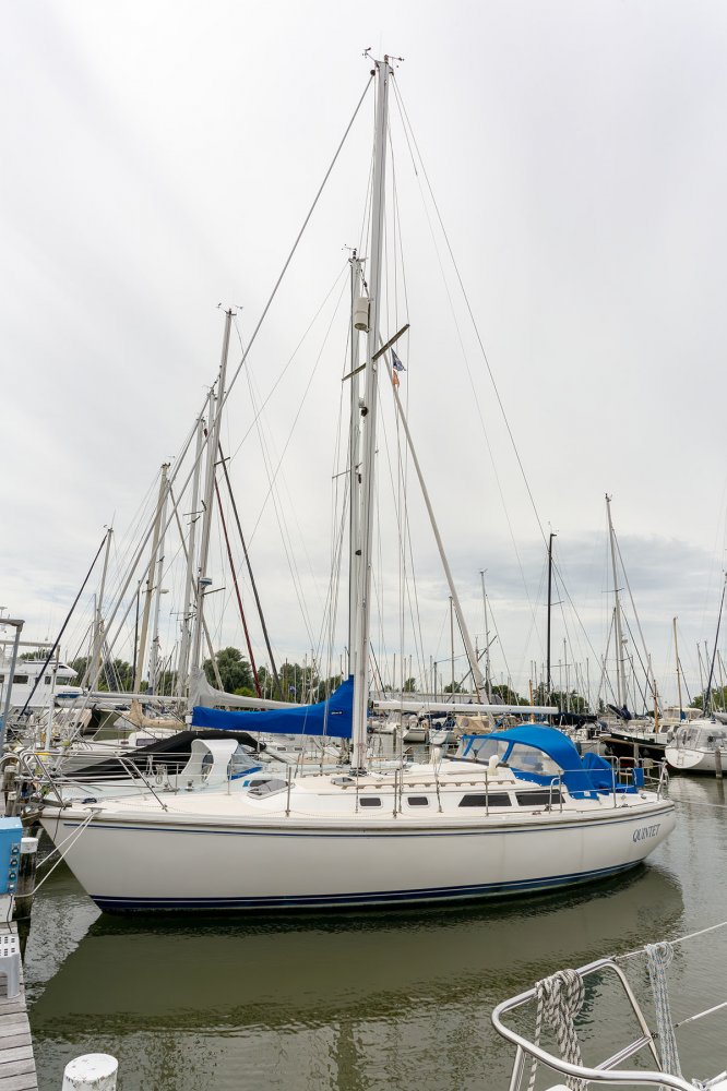 De Catalina 36 die wij u aanbieden namens de 3e particuliere eigenaar is netjes onderhouden en in vaarklare staat. In de afgelopen jaren zijn een paar investeringen gedaan, onder andere een nieuwe rolinstallatie en voorstag, en uitgebreid motoronderhoud. Aan de maatvoering kan men duidelijk zien dat de Amerikaanse norm is gehanteerd en de boot is bijzonder solide gebouwd. Deze Catalina 36 is uitgerust met een vleugelkiel zodat de diepgang beperkt is tot slechts 1,35 en een groot vaargebied toegankelijk. Dek en kuip zijn erg ruim en geheel van kunststof zodat de boot zeer eenvoudig is in onderhoud. Alle lijnen zijn naar achteren geleid zodat de boot eenvoudig is te varen. Voor de kuip zijn skai kussens en in de haven kan men prettig nagenieten aan de fraaie kuiptafel.