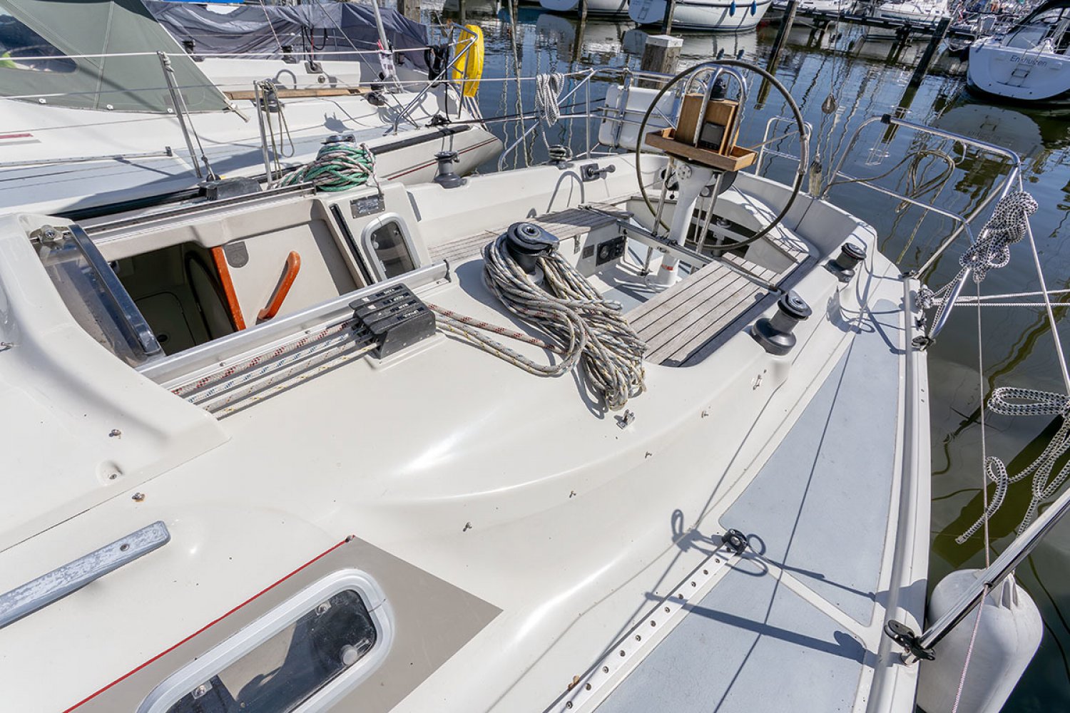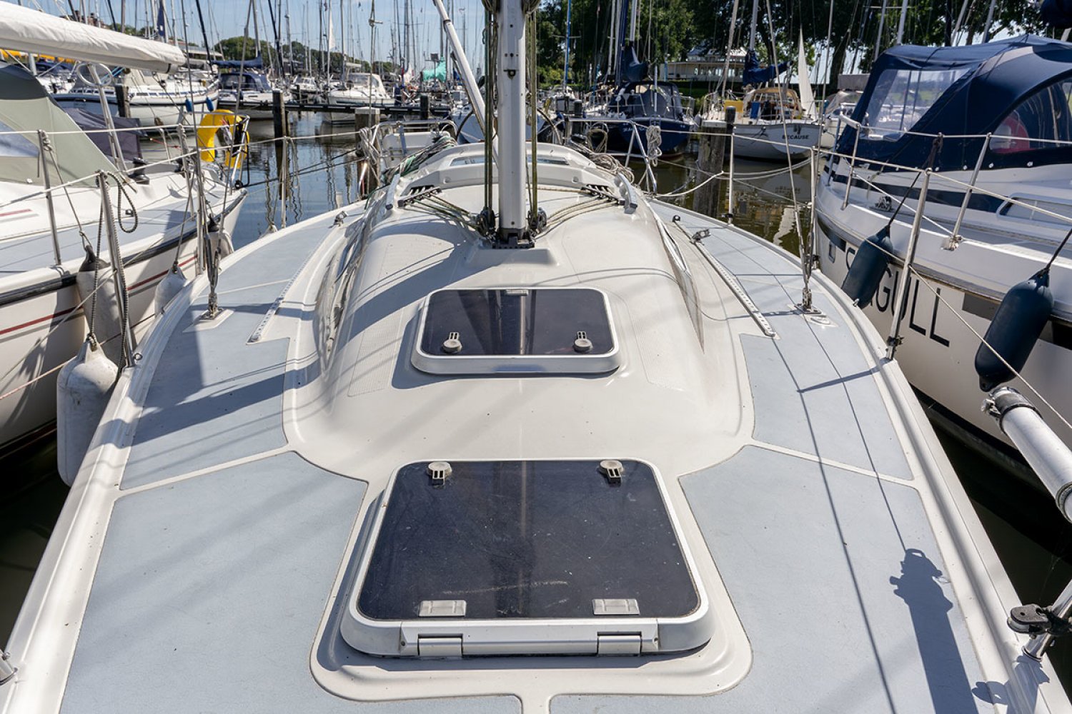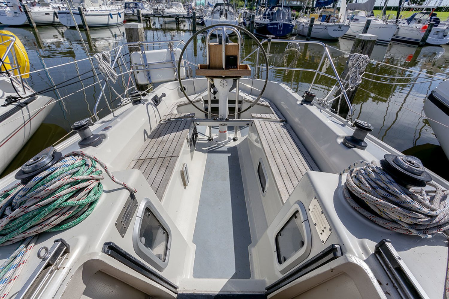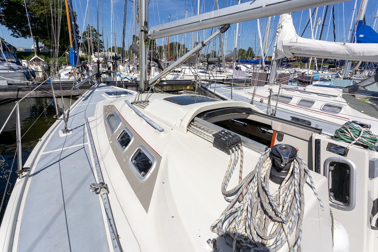 Deze Dehler 34 Top die wij u aanbieden namens de 4e eigenaar is een door Van de Stadt ontworpen degelijk gebouwd jacht. Ondanks haar leeftijd is de boot nog steeds een sportieve zeiler, er is tevens een behoorlijk complete uitrusting. Zij biedt ook veel comfort met een ruime salon en twee dubbele hutten. Dit jacht is in een goede staat van onderhoud. In de kuip komen alle lijnen samen; de zeilgarderobe bestaat uit 5 zeilen. In 2016 werd de mast en de verstaging vervangen en werden 2 Pontoslieren geplaatst.